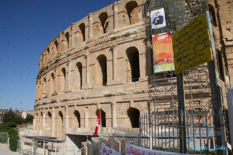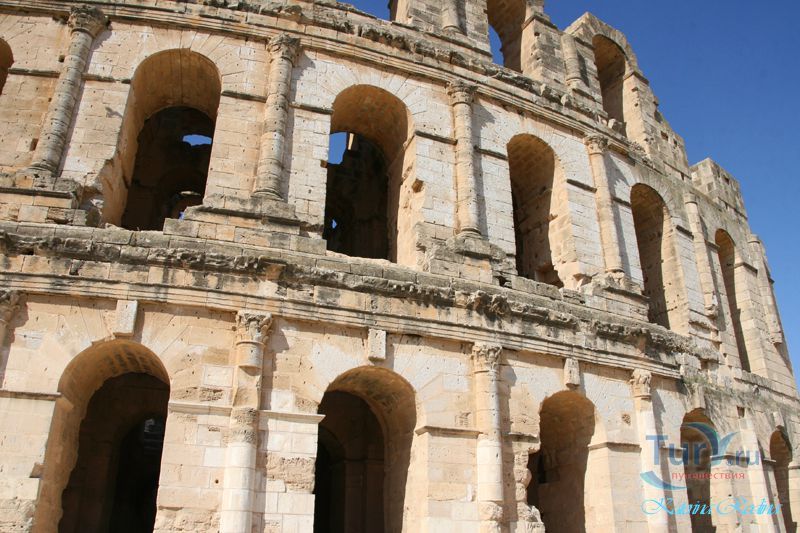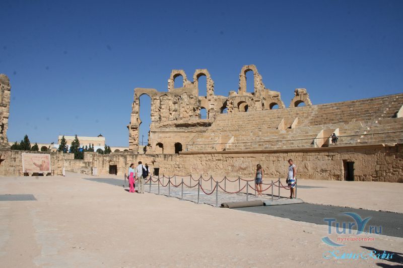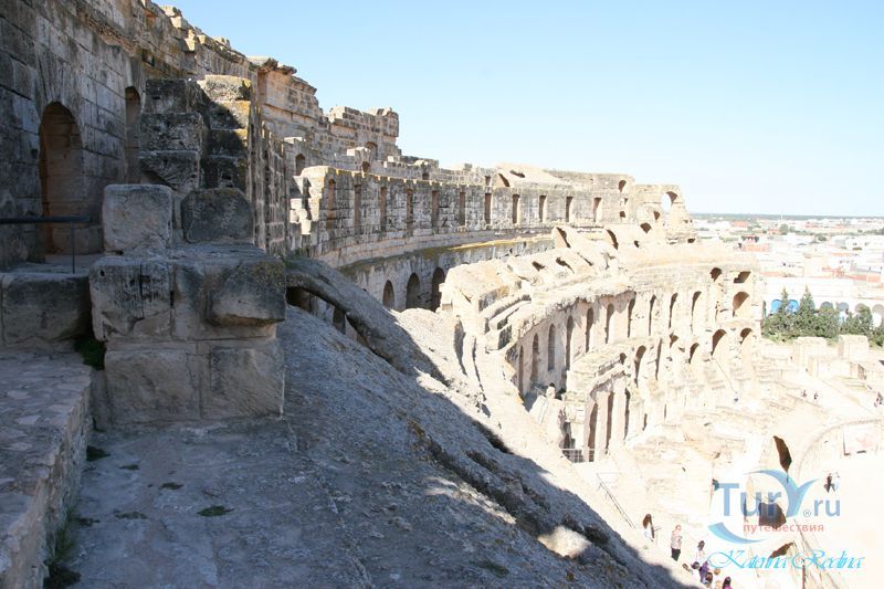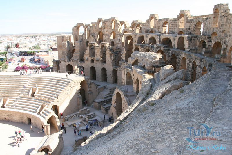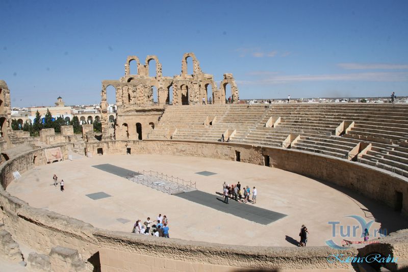 Внушительные руины крупнейшего в Северной Африке амфитеатра, который мог вмещать до 35 тыс. зрителей, обнаружены в небольшом поселении Эль-Джем. Этот памятник III в. иллюстрирует великолепие Римской империи и масштабы ее влияния.