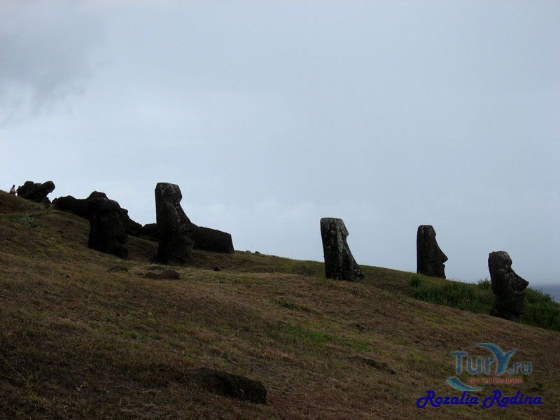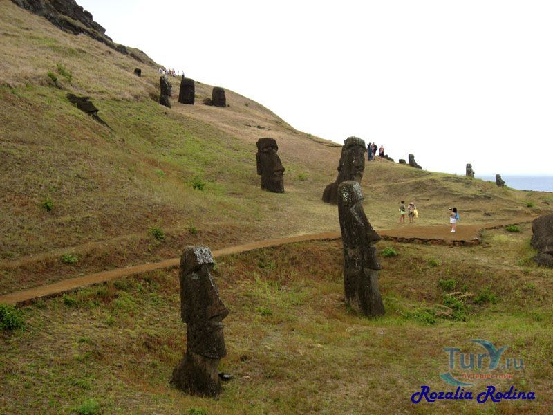 На экскурсии к вулкану Рано-Рараку Вы увидите как рождались знаменитые Моаи острова Пасхи и какими примитивными инструментами высекали этих исполинов. Увидите множество недоделанных истуканов и тех, кто уже родился, научился ходить, но так и не дошел до цели, как будто по мановению волшебной палочки кто-то навсегда здесь остановил время.