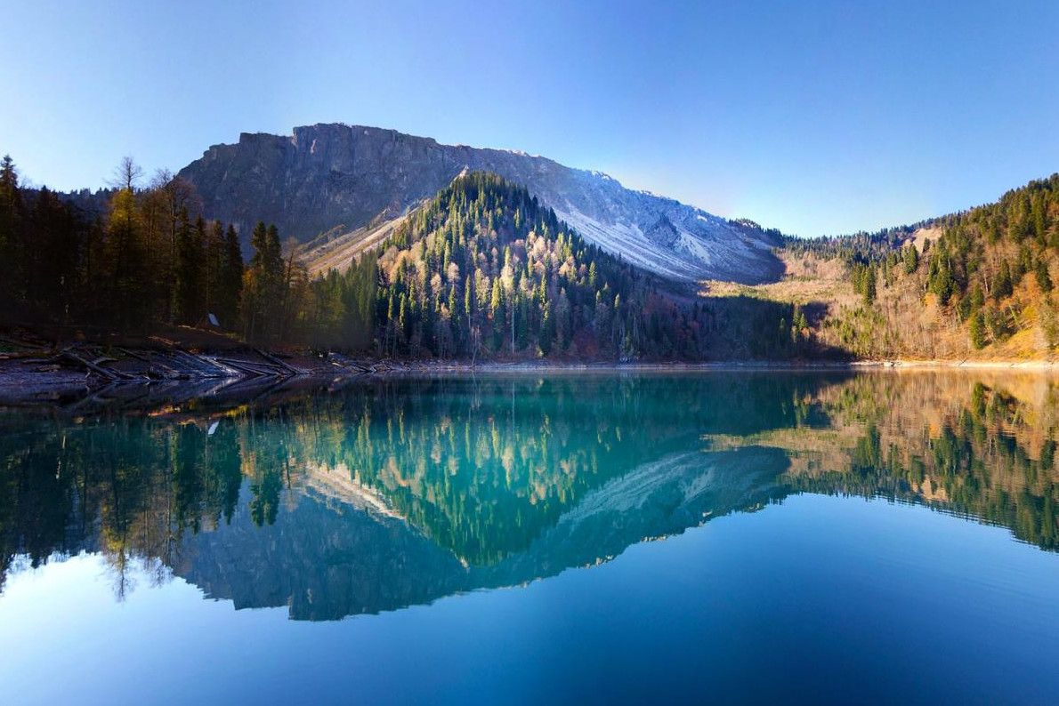 Озеро Малая Рица - одно из самых красивых озер Абхазии, оно расположено в бассейне реки Гега, в 5 км от знаменитой Большой Рицы, на высоте 1235 метров над уровнем моря. Длина озера - 234 метра, ширина - 130 метров, глубина - 80 метров. Вода в озере очень чистая и прозрачная, просматривается до 18 метров в глубину, так как в озеро не впадает ни одна речка (его питают подземные источники). Цвет воды в озере сине-зелёный, иногда - ярко-бирюзовый. В озере водится единственный его обитатель - гребенчатый тритон, занесенный в международную Красную книгу. Озеро Малая Рица поражает своей фантастической красотой, словно переливающийся драгоценный камень, оно находится в оправе снежных горных вершин. Этим завораживающим пейзажем можно любоваться бесконечно.