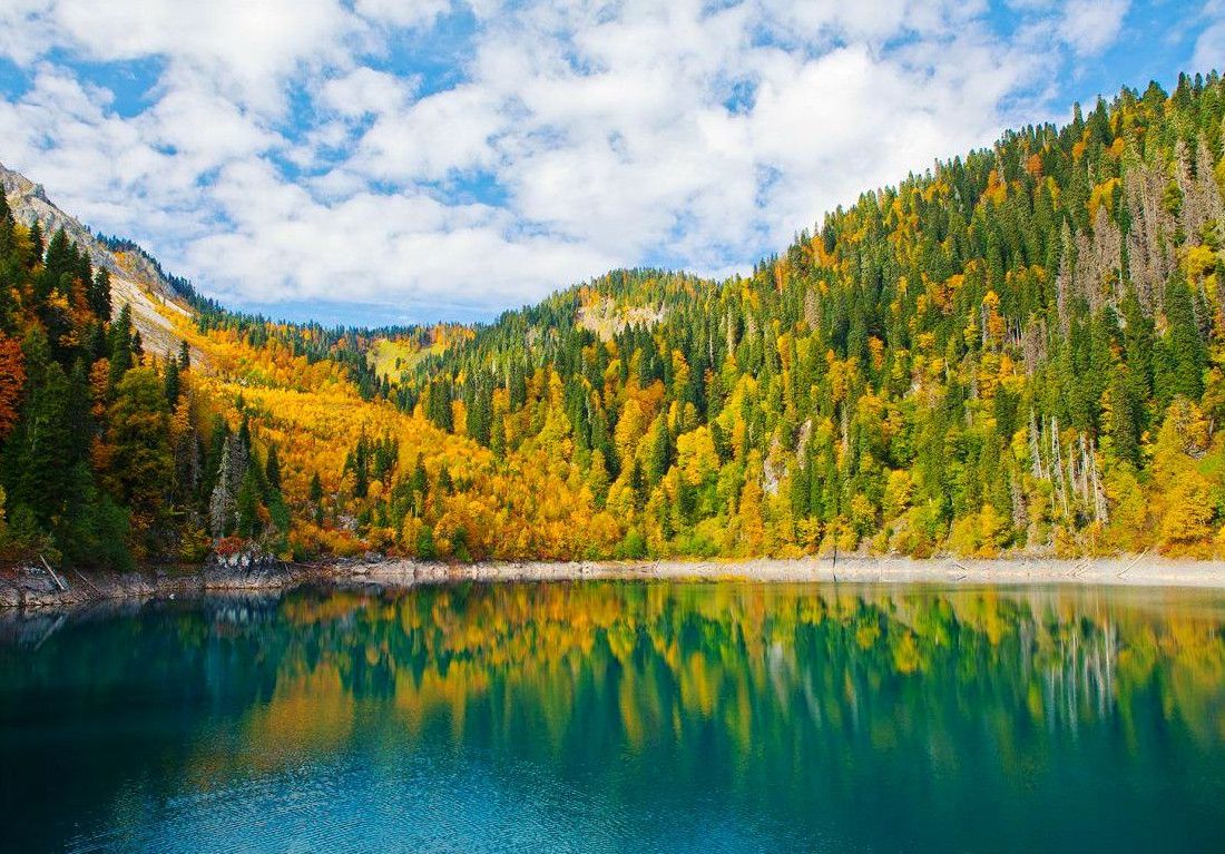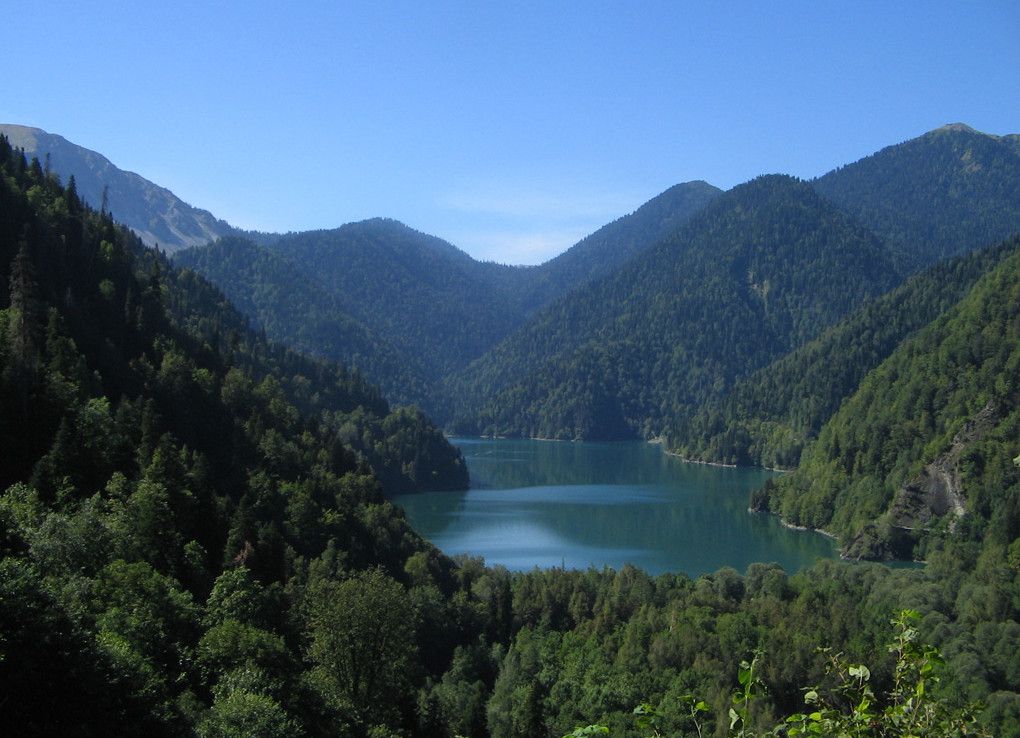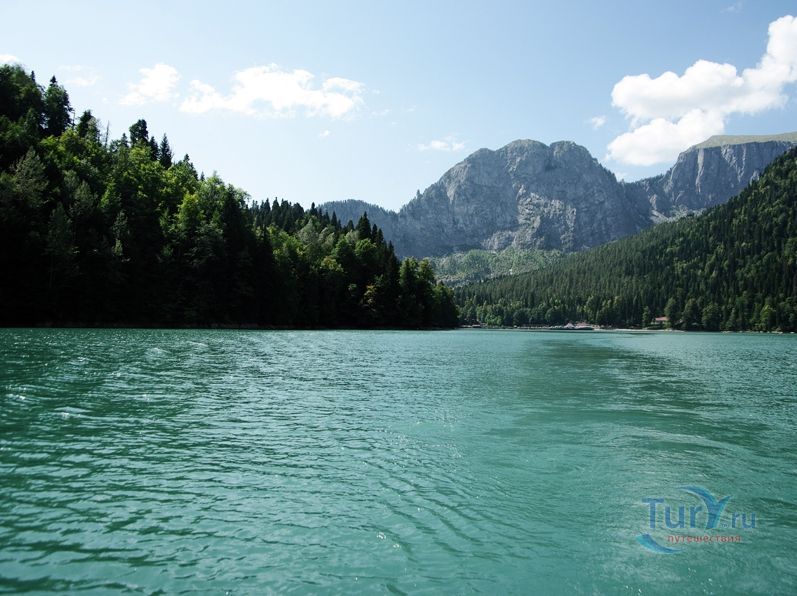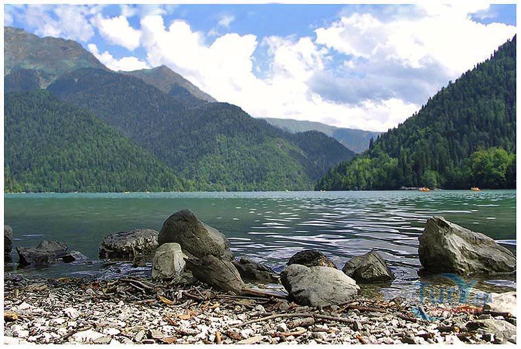 Озеро Рица называют "жемчужиной" и главной природной достопримечательностью Абхазии. Оно расположено на высоте 960 метров над уровнем моря, в бассейне реки Бзыбь, и занимает часть долины реки Лашипсе. Образовалось озеро в результате тектонического опускания долины реки на стыке двух геологических структур - известняков и порфиритов. Протяженность озера - более 2000 метров, ширина - от 270 до 870 метров, наибольшая глубина - 150 метров. Вода в озере практически никогда не замерзает (за исключением очень суровых зим), имеет насыщенный зеленовато-голубой цвет, а прозрачность воды в нём достигает 8-10 метров. Со всех сторон озеро окружено горами, поросшими густым лесом, - на юго-западе над озером возвышается гора Пшегишха (2222 метра над уровнем моря), на востоке - гора Арихуа (2700 метров над уровнем моря), на севере - скалистый массив Ацетук с вершиной Агапста (3261 метр над уровнем моря). Местные жители давно знали о существовании озера, но на карту оно было нанесено лишь в 1865 году. А после того, как в 1930 году описание озера Рица появилось в путеводителе "Абхазские Альпы", озеро стало популярным туристическим объектом. Сегодня Рицу посещают тысячи туристов, чтобы увидеть его "волшебную" красоту и полюбоваться на живописные окрестности озера.