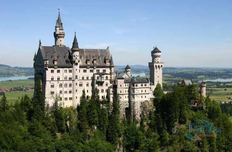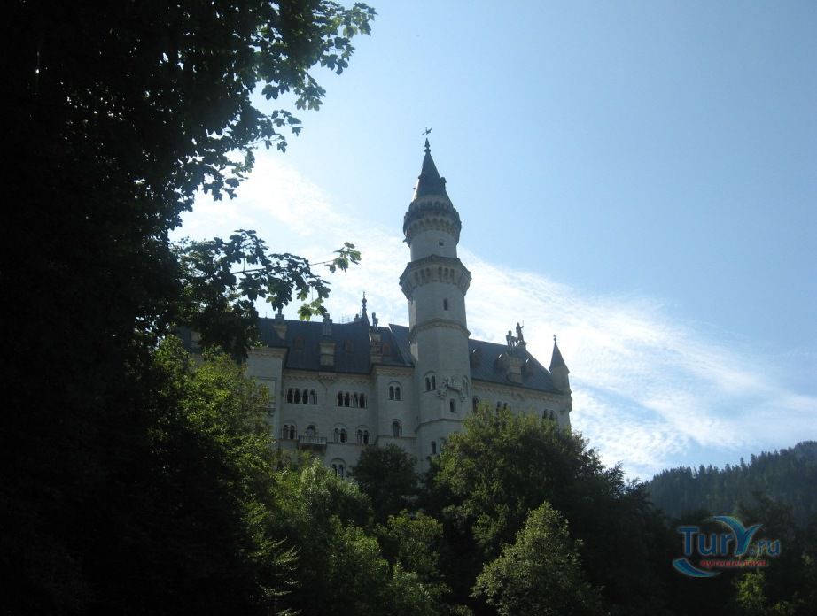 В нескольких километрах от Цугшпице расположен сказочный замок Нойшванштайн (Neuschwanstein). Его в полной мере можно назвать сказочным сразу по двум причинам. Во-первых, именно он служил «образцом» для сказочного замка в Диснейленде. Во-вторых, его построил «сказочный» король. Нойшванштайн - это сбывшаяся наяву фантазия, замок-сказка, вознесший свои будто игрушечные башенки и галереи над лесистыми холмами в Баварских Альпах под городом Фюссеном близ австрийской границы. Он производит впечатление театральной декорации, а отчасти и является ею, поскольку создавался под деятельным руководством мюнхенского театрального художника Кристиана Янка. При этом у замка весьма внушительные размеры, да и строился он в течение семнадцати лет. Возводя этот замок, король Баварии Людвиг II стремился воплотить в его архитектуре свои представления о романтике. Замок Нойшванштайн строился вовсе не для реальной жизни. Он был возведен, так сказать, во славу искусству. Этой иллюзии, воплощенной в жизнь, будто изначально суждено было стать музеем. Спальня со столь тонкой и хрупкой деревянной резьбой, что до нее страшно дотронуться: 14 резчиков почти пять лет трудились, чтобы создать это чудо. Зимний сад, воссоздающий атмосферу грота. Величественный тронный зал в стиле роскошной византийской церкви. Везде настенные росписи с сюжетами из «Нибелунгов», «Тристана и Изольды», «Лоэнгрина», «Тангейзера»…