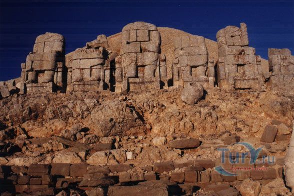 Немрут – гора высотой в 2150 м юго – западной Анатолии. Здесь находится уникальный погребальный комплекс «Могильник Антиоха I », построенный в I в. н. э. На вершине горы находится могильный холм, сформированный из груды камней, а на западном и восточном склонах его охранябт два льва, два орла и девятиметровые статуи. Статуи на восточной стороне террасы сохранились лучше, они вырублены не из одного цельного камня, а составлены из отдельных каменных пластов.На восточной стороне могильного холма находится алтарь. Это дает основание предполагать, что обе террасы соединяла обнесенная стенами дорога и подойти к ней можно было через проложенную ниже горную тропу. По всей вероятности, эта территория регулярно использовалась для религиозных церемоний.