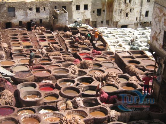 Точное время рождения Феса не известно. Медина в Фесе (Фесэль-Бали) развивалась в IX веке. Здесь узкие, извилистые улочки, фонтаны в элегантных внутренних дворах, шум и сутолока базара соединяются в картину, которая будто открывает окно в другой мир. Тут продается множество товаров современного производства, некоторые из них вообще предназначены только для туристов, но атмосфера старого города, как и прежде, очень живая. Фесэль-Бали разделялся на бесчисленные районы. Каждый из них представлял собой замкнутую структуру, имел собственную мечеть, собственное водоснабжение, хамам (турецкую баню) и хлебопекарню. В городе находится один из старейших университетов мира, а в средние века город был духовным центром ислама. В Фесе 800 мечетей (к которым пристраивали, как правило, школы), многие тысячи магазинов и дома, где могут найти кров 125 000 человек. В XIII веке он был один из самых значительных городов мира. Главная мечеть (Карауин) была построена в IX веке и расширена в XIII веке. В ней могут разместиться 22 000 человек, это самая большая мечеть в Северной Африке. К ней относятся также университет и роскошная библиотека. Как это часто бывало в архитектуре ислама, ее внешнему виду не придавали большого значения, а лабиринт окружающих ее домов еще больше затеняет ее облик. В самой мечети поражают избыток тщательно выработанных надписей и орнаменты плиток. Помимо университета, в Фесе есть целый ряд мусульманских школ (медресе). Как правило, они состоят из трех помещений: школа, молельный зал и библиотека, объединенных центральным двором. В центре находится фонтан. Особенно впечатляет роскошно отделанное медресе Бу-Инания. Сходства с испанско-мавританской архитектурой нельзя не заметить. Странное сочетание окон, деревянных блоков и медных чаш, должно быть, являют со бой водяные часы XIII века, но до сегодняшнего дня никто не догадался, как они функционируют. Чаши были сформованы, вероятно, предками тех мужчин, которые еще и сегодня стоят на площади Сеффарине и на глазах прохожих обрабатывают разные металлические изделия. Красильщики и кожевники — вот две другие профессии, которые в Фесе не исчезали во все времена. На Красильной соук (рыночной площади) на реке до сих пор работает водяная мельница, перемалывающая семена, из сока которых производят натуральные краски. Далее вниз по реке можно найти кожевников, занятых тяжким трудом. Посмотрите на них, если сможете вынести запах. В медине Феса живы многие традиционные ремесла. Вот ковроткацкая мастерская – те же движения рук, те же шерстяные нити, цвета и узоры, что и тысячу лет назад. Вот гончарный круг и синие краски для росписи по глазури… После переезда короля в Рабат Фес стал обычным провинциальным городом. Столица государства ушла отсюда. Столица ремесла - осталась.