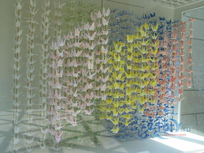Рядом с музеем находится Международный мемориальный зал Мира. Сюда приходят почтить память и вознести молитву по жертвам атомной бомбардировки.