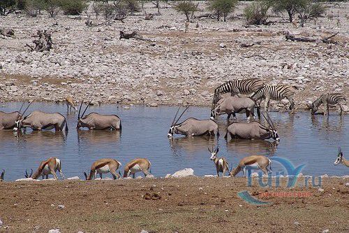 Национальный парк Ватерберг Плато расположен на территории одноименного скального массива восточнее Очиваронго. Ватерберг меньше парка Этоша, но климат здесь более влажный и преобладает субтропическая растительность. В естественной среде можно наблюдать 25 видов млекопитающих, в том числе занесенных в Красную книгу белых и черных носорогов, множество антилоп, буйволов, куду, газелей-гемсбок, жирафов, леопардов. В парке гнездятся птицы 200 видов. По территории заповедника проложено множество пеших и треккинговых маршрутов.