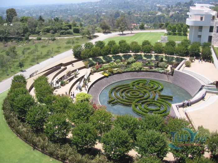 Пять основных зданий Центра Гетти выстроены в строго определенном порядке. Все они связаны между собой проходами на всех этажах.