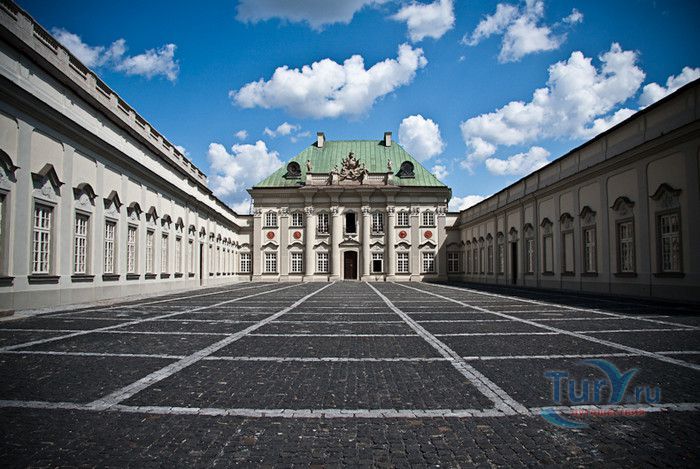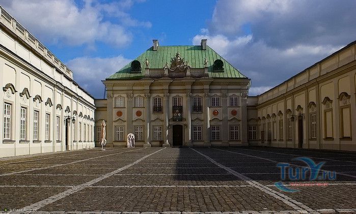 Дворец под Бляхой или Дворец с медной крышей - особняк в стиле позднего барокко, построенный в 1720-1730 годах архитектором Якубом Фонтана рядом с Королевским дворцом в Варшаве. В 1651-1655 годах на его месте стоял одноэтажный дом, принадлежавший королевскому кузнецу и оружейнику Лоуренсу Руффусу. Здание сильно пострадало во время шведского вторжения в Речь Посполитую в 1655-1660 годах, его реконструкция продолжалась до конца XVIII века. В 1720 году дворец приобрёл камергер Ежи Доминик Любомирский. При нём здание получило новый архитектурный облик, четырёхскатная крыша была покрыта медной жестью, из-за чего дом стали называть Дворцом с медной крышей. В 1720-1730 годах было пристроено северное крыло и спроектирован новый главный фасад, перестройкой руководил архитектор Якуб Фонтана. В 1777 году владельцем дворца стал польский король Станислав Август Понятовский, особняк становится частью королевской резиденции. Архитектору Доминику Мерлини было поручено обновление дворцовых интерьеров. После смерти короля во дворце жил его племянник, герцог Юзеф Понятовский. При нём во дворце устраивались пышные приёмы, балы и театральные постановки, на вечера к герцогу съезжалась вся богема Варшавы. Во дворце вместе с Юзефом Понятовским жили его сестра Мария Тереза и графиня Генриетта де Вобан, с которой герцог познакомился в Брюсселе в 1793 году, часто гостили польские и французские аристократы. В 1806 году, с вступлением наполеоновских войск в Варшаву, дворец получил статус правительственного здания, а Юзеф Понятовский в октябре 1807 года становится военным министром герцогства Варшавского. Дворец под Бляхой посетил сам Наполеон, в течение нескольких месяцев в нём жил французский маршал Жоаким Мюрат. В это же время во дворце гостила племянница герцога Анетка Тышкевич-Потоцкая, красочно описавшая жизнь дворца и его гостей в своих мемуарах. После смерти Юзефа Понятовского его сестра продала дворец в 1820 году российскому императору Александру I, вплоть до 1915 особняк использовался под жилые помещения для царских чиновников. С 1922 года в здании размещалась Центральная военная библиотека, в 1926 году в нём были оборудованы квартиры для офицеров военной канцелярии президента Игнация Мосцицкого. В годы Второй мировой войны в особняке располагалась немецкая жандармерия "Потсдам". Во время Варшавского восстания здание сильно пострадало, после реконструкции 1945-1949 годов в нём размещались Центральный архив исторических документов и другие государственные учреждения. В 1989 году дворец стал частью Королевского замка и начал функционировать как музей. В его южном крыле размещена экспозиция ковров из коллекции Терезы Саакян, в главном здании открыта постоянная экспозиция "Апартаменты герцога Юзефа Понятовского", занимающая шесть комнат, восстановленных в том виде, который они имели при герцоге.