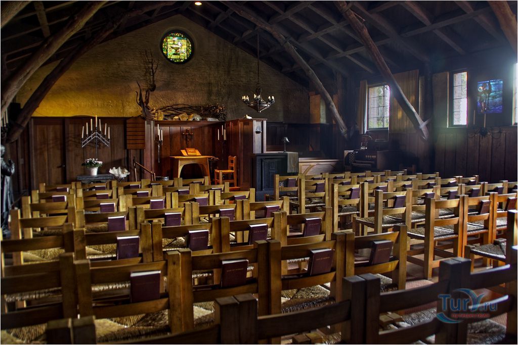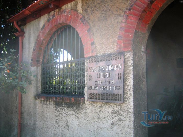 Очень необычны поддерживающие потолок земляничные деревья - идея молодого Майбека. По легенде эти стволы выбирали в лесу Санта-Круз и заворачивали в специальную ткань, чтобы избежать повреждения, а уже потом доставляли поездом.