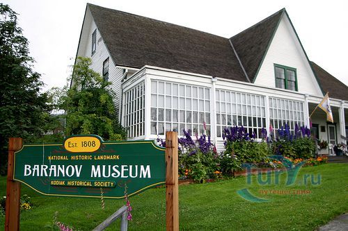 На территории острова находится одноименный город, в котором находится самая крупная в США база береговой охраны. В городе Кадьяк расположено старейшее русское здание в Северной Америке. В этой постройке 1808 года теперь находится Музей Баранова. Среди экспонатов есть коллекция самоваров и фотографии города после цунами "Гуд Фрайди" 1964 года.