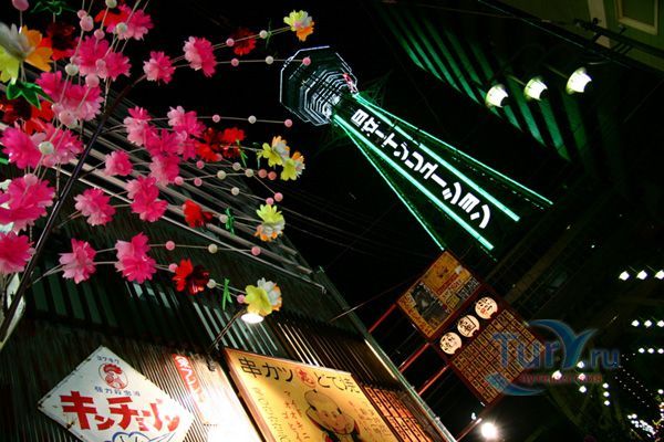Башня Tsutenkaku – новое строение, восстановленное после Второй мировой войны. Оригинал башни был построен в 1912 году, и был настоящим потрясением для людей тех годов. С высотой 64 метра, башня являлась самым высоким строение на всём востоке! Она так же являлась одной из самых больших и важных достопримечательностей района Шинсекай. В итоге башня Тсутенкаку, так напоминающая местным жителям Эйфелеву башню в Париже, стала символом Осаки. После многочисленных потрясений, пожаров (в 1943 году) башня Тсутенкаку была окончательно восстановлена в 1956 году на радость жителей Осаки.