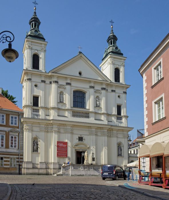 Костёл Святого Духа ордена паулинов существует с 14 века. Изначально костёл был деревянный, построенный в готическом стиле и располагался рядом с городской больницей. Храм выполнял функцию больничной часовни. В 17 веке приехавшие в Польшу паулины основали при больнице монастырь. Во время нашествия шведов в 1655 году, здание костёла сгорело. Городские жители не могли восстановить здание своими силами. И тогда польский король Ян Казимир передал здание отцам-паулинам из Ченстоховы. Они были знамениты обороной своего монастыря в Ясной Гуре. Монахи-паулины возвели оборонительную стену вокруг монастыря и костёла собственными средствами. Здание современного Костёла Святого Духа было спроектировано архитектором Юзефом Пелы, а строилось под руководством Юзефа Шимона Беллотти и К. Черони. Внутренняя отделка костёла была закончена к 1725 году. В начале 19 века к зданию со стороны улицы Длуга пристроили небольшое здание в стиле классицизма. Это здание имеет площадь всего в несколько квадратных метров. Во время Второй мировой войны, во время Варшавского восстания в 1944 году, здание костёла было разрушено немцами. После окончания войны в 1956 году были восстановлены монастырь, костёл, реконструирован барочный фронтон с фигурами святых, барочный амвон и большой алтарь. С 1711 года и по настоящее время костёл является началом паломничества к Храму Богородицы в Ясной Гуре. Вот уже на протяжении почти 300 лет ежегодно в начале августа от костёла отправляется в путь пешее паломничество на Ясну Гуру в Ченстохове (важнейший Санктуарий Девы Марии в Польше и вместе с тем, наиболее известный монастырь отцов паулинов).