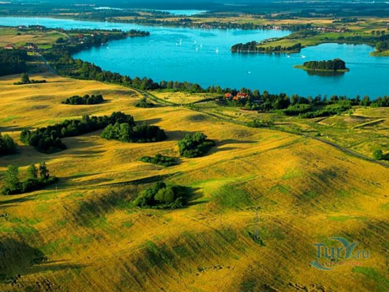Великие Мазурские озера - исторический и этнографический район на севере Польши. Это огромная территория живописной природы, называемая "Страной тысячи озёр", которых в этих местах насчитывается до 4 тысяч. Большинство озёр ледникового происхождения. Озёра с изрезанной береговой линией вписываются в прекрасный пейзаж. Великие Мазурские озёра расположились на территории около 1700 км2 и занимают четвёртую часть водных ресурсов Польши. Это - чудо природы. Озёра расположены на территории крупнейшего в Польше и второго по величине в Европе лесного комплекса Пишская пуща и лесного массива Августовская пуща. Крупнейшими из озёр являются Снярдвы (113 км2), которое ещё называют Мазурским морем, и Мамры (105 км2) в Мазурском поозерье, самое глубокое озеро находится в Сувальском поозерье, а в Илавском поозерье самое длинное озеро - Езёрак (27 км). Озеро Снярдвы соединяется с озером Рось очень длинным Мазурским каналом, называемым Еглинским. На южных Мазурах находится одно из самых длинных озёр с 13 островами, резерватами и деревнями, называемое Нидзское озеро. В самом сердце Мазур, в окружении озёр Негоцин и Кисайно, расположен Поворотный мост на Лучанском канале - единственный объект такого типа в Польше и один из двух в Европе. Большинство озёр соединены каналами, шлюзами или реками, что даёт возможность заниматься парусным спортом и водным туризмом. Настоящей жемчужиной озёрного края является уникальный действующий старинный Острудско-Эльблонгский канал, построенный в 1848-1876 годах. По каналу экскурсионные суда и туристы-водники с помощью четырёх старинных шлюзов и пяти уникальных стапелей по воде и суше преодолевают путь в 82 км, со 100-метровым перепадом высот. Общая протяжённость водной системы составляет 1298 км. Восточнее расположен Августовский канал, дивное озеро Вигры, самое глубокое в Польше озеро Ханьча (108 км). Между двумя озёрами Миколайским и Талты находится городок Миколайки с населением всего 4 тысячи человек. Этот городок называют "жемчужиной Мазур". Городок превращается в активный туристический центр, где проходят фестивали, экскурсии и на пристани длиной в 1,5 км находится множество парусников. Между озёрами Негоцин и Мамры расположен городок Гижицко, который называют "летней столицей Польши", где устраивают народные гулянья, концерты и дискотеки. В 30 км от от Гижицко находятся озёра Даргин и Кирсайты и Штинортское озеро с живописным посёлком Штинорт на полуострове. Это место называют "Меккой яхтсменов". Некоторые озёра входят в "зону тишины", где запрещено движение моторных лодок, скутеров, катеров и экскурсионных теплоходов. В районе Великих Мазурских озёр прекрасная туристическая инфраструктура с оборудованными водными базами и пристанями для байдарочников и яхтсменов, много кемпингов и отелей разной категории. Туристам предлагаются многочисленные велосипедные, пешие и байдарочные маршруты, школа парусного спорта и серфинга, яхтные посты, водные пристани, конюшни для верховой езды, исторические достопримечательности и развлечения. Это места летних слётов туристического и парусного братства, спортивных мероприятий, фольклорных и музыкальных фестивалей.