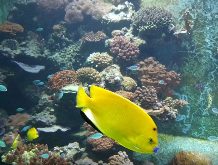 Аквариум Реюньон расположен на западном побережье острова Реюньон, на искусственном острове в центре гавани морского курорта Сен-Жиль-ле-Бен, в двух шагах от песчаного пляжа де Рош Нуар (Plage Des Roches Noires). Аквариум Реюньон был открыт в 2000 году и сразу стал одной из самых популярных достопримечательностей Сен-Жиля - на сегодня его уже посетили более миллиона туристов со всего мира. В огромных бассейнах, способных вместить 600 000 литров воды, представлены обитатели всех морских экосистем Индийского океана, омывающего остров со всех сторон. Тематически пространство аквариума разделено на пять областей - Вулканические скалы, Коралловые сады, Глубокие рифы, Открытое море и Морское биоразнообразие. В них представлено более 700 видов морских животных - обитателей прибрежных вод, морских глубин и коралловых рифов. Только рифовых рыб в аквариуме насчитывается 500 видов - акулы, барракуды, мурены, электрические скаты, ментициррусы, рыбы-крылатки, рыбы-клоуны, спинороги, рыбы-иглы, помацентровые рыбы, морской чёрт, кузовок-кубик, рыба-ангел, зебрасом, рыба-хирург и многие другие. Также в Аквариуме Реюньон можно увидеть омаров, крабов, осьминогов, морских коньков, иглокожих (морских звёзд и ежей) и большое разнообразие кораллов. Для посетителей в аквариуме оборудованы мультимедийные дисплеи и интерактивные модули, в кинозале на 70 мест демонстрируются документальные фильмы об исследовании морских глубин Индийского океана, проводятся увлекательные экскурсии и презентации, для детей разработаны анимационные образовательные программы. В Аквариуме Риньон есть сувенирный магазин, рядом расположены кафе и ресторанчики.