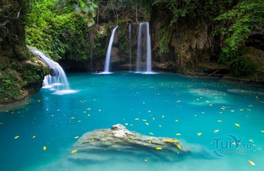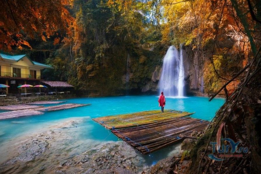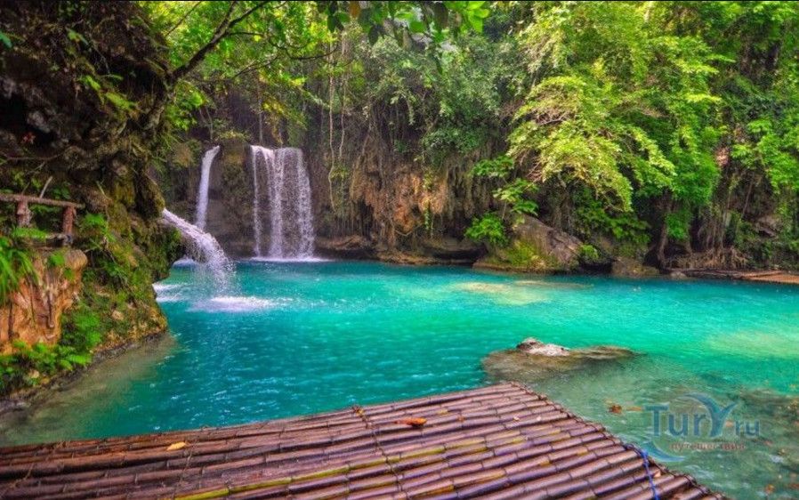 Водопад Кавасан - один из красивейших водопадов на Филиппинах, расположен на юго-западном побережье острова Себу, в горах Барангай Матутинао, в муниципалитете Бадиан. Трёхуровневый каскадный водопад с кристально чистой бирюзовой водой расположен посреди тропических джунглей, в окружении пышной зелени и каменных сводов речных каньонов. Струи воды мощным потоком обрушиваются в природные бассейны, в которых можно искупаться. Вода здесь прохладная даже в самую сильную жару, поэтому водопад очень популярен среди местных жителей и туристов - освежиться и полюбоваться красотами дикой природы приезжают много людей, особенно в выходные дни. Наиболее многолюдно у первого (нижнего), самого большого каскада, для отдыхающих здесь созданы комфортные условия - есть кафе, душевые и туалеты, можно арендовать стол для пикника и открытый коттедж, взять в аренду бамбуковый плот, чтобы покататься на нём по бассейну у подножия водопада и, даже, заплыть под струи воды, испытав на себе освежающее действие "холодного душа". Чтобы попасть ко второму каскаду, необходимо подняться по тропе со ступенями (подъём занимает около 15 минут). На втором уровне водопада туристов намного меньше, но все равно здесь достаточно многолюдно. Любители тишины и уединения должны подняться ещё выше - на третий уровень водопада Кавасан. К нему ведёт крутая горная тропа, подниматься по которой довольно трудно (желательно иметь удобную обувь с ребристой подошвой) - на некоторых участках приходится буквально карабкаться вверх и продираться через густые заросли. Зато красота первозданной природы, отсутствие шумных отдыхающих и чистейшая аквамариновая вода родникового источника Кабукалан, бьющего рядом с третьим каскадом водопада, полностью окупают затраченные на подъём усилия. Любители спокойного отдыха могут полюбоваться красивыми видами, сделать отличные фотографии (для этого лучше приезжать к водопаду Кавасан рано утром или на закате) или поплавать в природном бассейне, а любители экстрима имеют возможность заняться каньонингом - преодолеть крутые речные пороги и многочисленные каньоны, а также совершить головокружительный прыжок со скалы в глубокий природный бассейн.