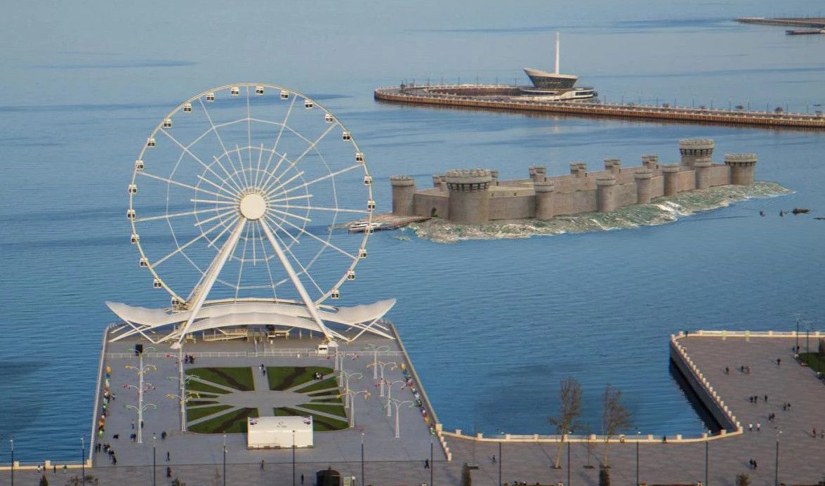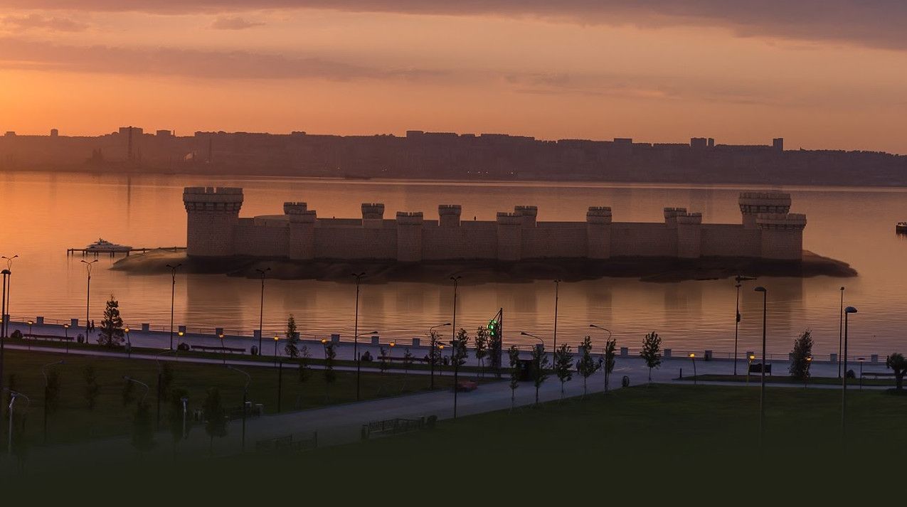 Это почти мифически затонувший город, окруженный ореолом тайн, легенд и загадок. Этот памятник – своеобразная «Бакинская Атлантида», ушедшая под воду в результате людского несовершенства… Окутанный легендами замок, выдающийся памятник азербайджанского зодчества, в которых действующими лицами были Александр Македонский, Аристотель и другие, в настоящее время полностью находится под водой на расстоянии от берега около 350 м . Замок был построен по проекту зодчего Зейнаддина ибн Абу Рашида Ширвани. По всей верхней части крепости проходит полоса надписи на арабском и фарси, а также изображения человеческих лиц и фантастических животных. Общая длина художественной надписи около 400 метров . Среди прочитанных обрывков надписей обнаружены три фрагмента с датой сооружения - 632 г .х. (1234-1235 гг.), именем зодчего. Эти надписи не имеют аналогов на всем Ближнем Востоке, впервые на мусульманском памятнике были найдены изображения людей и животных. К сожалению, верх крепости сегодня полностью разрушен, сохранилась только нижняя часть стен и башен.