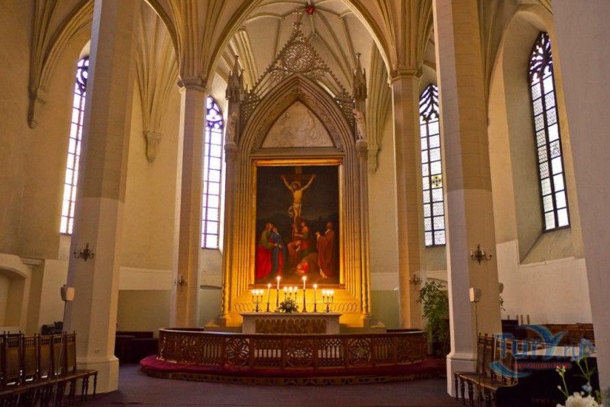 Церковь Святого Олафа (Церковь Олевисте) - одна из главных достопримечательностей города Таллинн, расположена в историческом центре Старый город, внесенном в 1997 году в список Всемирного наследия ЮНЕСКО. Церковная башня Олевисте в 1549-1625 годах считалась самым высоким зданием во всей Европе, тогда её высота (вместе со шпилем) равнялась 159 метрам. После нескольких пожаров, возникавших от удара молнии, и последующих реставраций высота колокольни уменьшилась до 124 метров, но и сейчас её шпиль виден даже с окраин Таллинна. Точная дата строительства церкви Святого Олафа неизвестна, первые письменные упоминания о ней, как о действующем храме, датируются 1267 годом. Известно также, что готическая церковь в то время находилась под опекой женского цистерцианского монастыря Святого Михаила, содержалась на средства скандинавских купцов, поселившихся в городе ещё в средние века, и являлась их приходской церковью. Существует старинная легенда, согласно которой жители Таллинна решили возвести в городе церковь настолько высокую, что шпиль её колокольни должен был быть виден с моря за несколько километров от берега и служить своеобразным маяком торговым судам. Но горожане долго не могли найти зодчего, согласившегося бы построить такое здание. И вот, однажды, в город пришёл никому неизвестный мастер, пообещавший построить церковь, но за работу он потребовал десять бочонков золота. Для горожан эта цена была непомерно высокой, и тогда незнакомец выдвинул необычное условие - если до окончания строительства жители узнают его имя, то он не возьмёт за работу никакой платы, в противном же случае сумма вознаграждения останется неизменной. Строительство церкви уже подходило к концу, но имя зодчего так и оставалось тайной. Узнав, где живёт таинственный мастер, горожане подослали к его жене лазутчика, которому удалось подслушать разговор женщины со своим малолетним сыном: "Спи, мой малыш, засыпай. Завтра папа Олев вернётся домой с десятью бочонками полными злата". Так имя строителя стало известно жителям Таллинна. Когда мастер уже устанавливал крест на верхушку шпиля, кто-то из горожан окликнули его: "Эй, Олев! А крест-то у тебя накренился!". От неожиданности зодчий свалился со строительных лесов и разбился насмерть, при этом изо рта мужчины выпрыгнула лягушка и выползла змея. Жители Таллинна посчитали, что в возведении храма мастеру помогал сам дьявол, так как простому человеку построить такое грандиозное здание в одиночку было просто не под силу. Горожане всё же решили отблагодарить мастера и назвать церковь в его честь - Олевисте. Но это только красивая легенда, на самом деле храм был освящён в честь норвежского короля Олафа II Святого, принесшего в страну христианство, за что в 1031 году был канонизирован. В 1420 году храм был значительно расширен и перестроен - продольную часть здания превратили в базилику, соорудили новые хоры, возвели звёздчатые своды в центральном нефе и крестообразные - в боковых нефах. В 1513-1523 годах к церкви была пристроена капелла Девы Марии в стиле поздней готики. Под её внешней стеной находится символическая могила (кенотаф) инициатора строительства часовни Ханса Павелса с восемью рельефами, изображающими Страсти Христовы. Интерьер церкви выполнен в готическом стиле - монументальные колонны, островерхие арки, узкие проходы, дерев