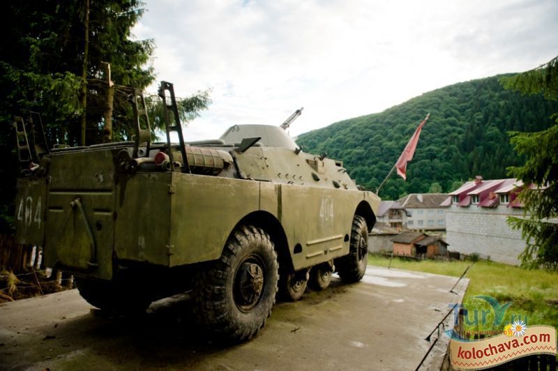 Вход в музей преграждают тяжелые железные двери, внутри - как в настоящем бункере - множество различных орудий войны: автоматы калашникова, ручной пулемет, перископ, бинокль, несколько противотанковых мин, огнемет, полевой телефон, солдатские алюминевые кружки, фляги, солдатские кирзовые сапоги, медицинские инструменты и много других военных вещей. На стенах развешаны фотографии колочавцев - интернационалистов. Под потолком натянут купол парашюта.