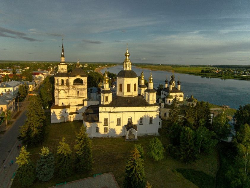 Это главное сооружение Великого Устюга. Он возвышается на древнейшей площади Великого Устюга, Соборной. Архитектурная история этого старейшего памятника города насчитывает более 7 столетий, однако он дошел до нас уже в переделанном виде.