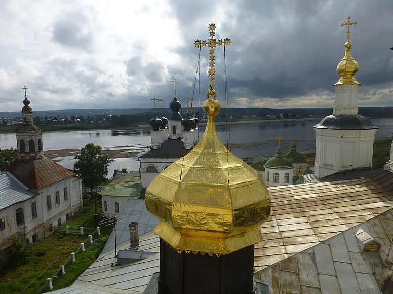 Центральный великоустюжский соборный комплекс, более известный как Соборное дворище, с древнейших времен определяет собой архитектурный облик города. Соборный комплекс на Сухоне является древнейшим устюжским ансамблем, возникновение которого было неразрывно связано с основанием самого Устюга и может быть отнесено к середине XII века. В 1619 - 1622 годах здесь возводится первый в городе каменный Успенский храм. Во второй половине XVII века появляются каменные соборы Иоанна и Прокопия Устюжских, посвященные местночтимым святым, а затем зимние церкви ансамбля. Одновременно при соборах сооружаются каменные шатровые колокольни, значительно обогатившие общую композицию всего комплекса. По сравнению с другими ансамблями города, Соборное дворище претерпело гораздо больше изменений и дополнений, произведенных в XVIII, XIX и XX веках и значительно изменивших его первоначальный облик. Современный соборный комплекс сложился в результате разновременных наслоений различных эпох.