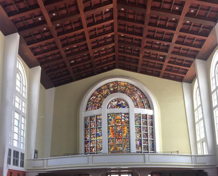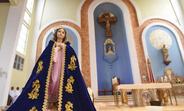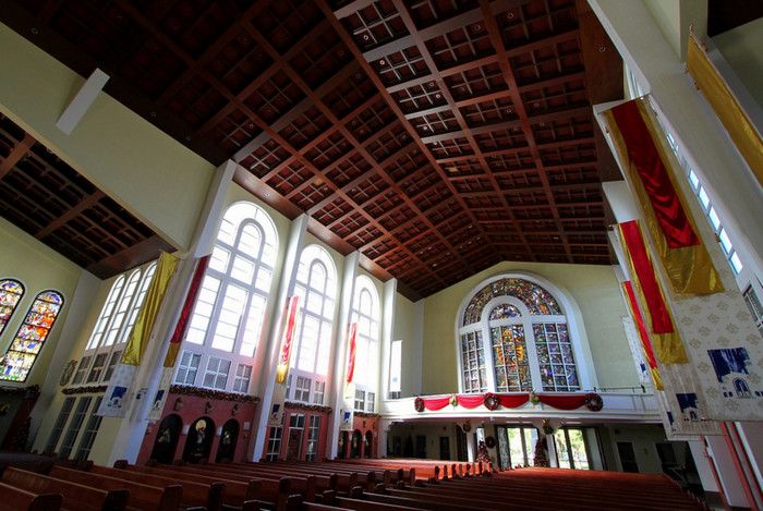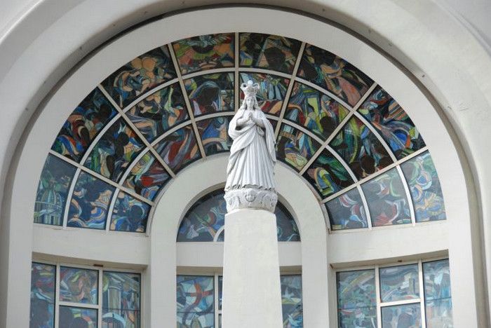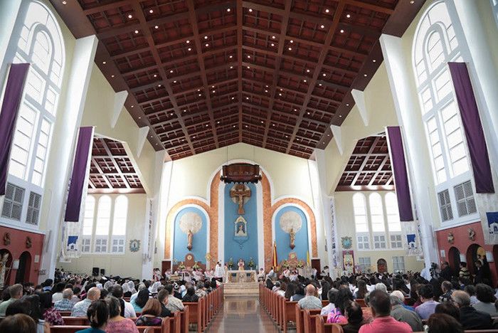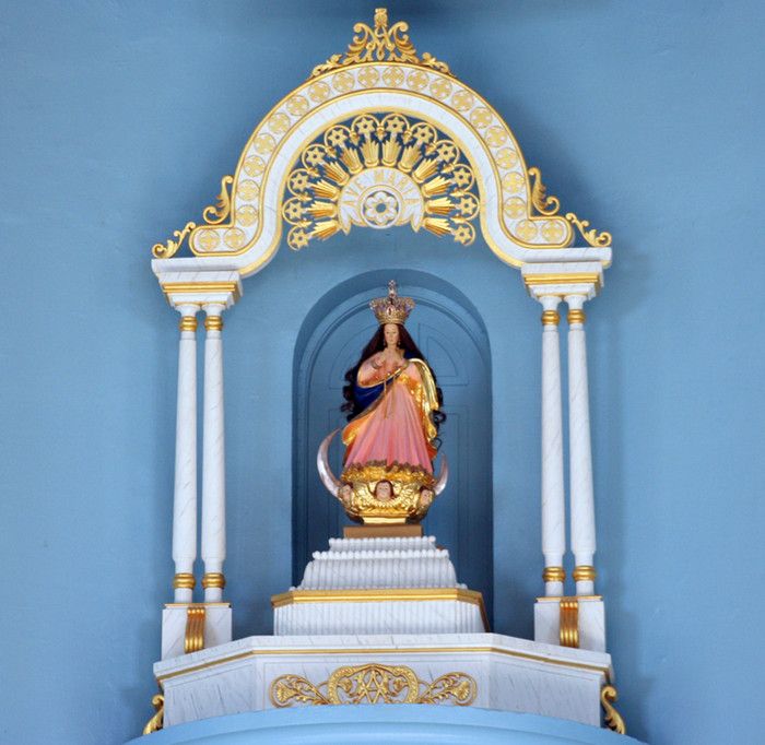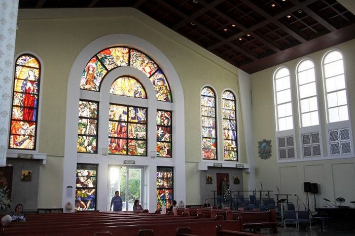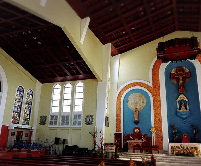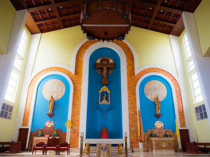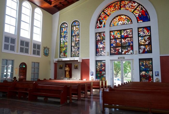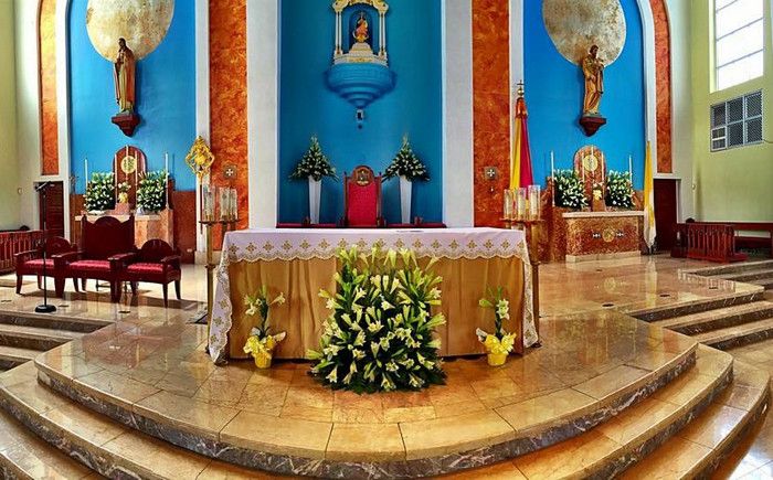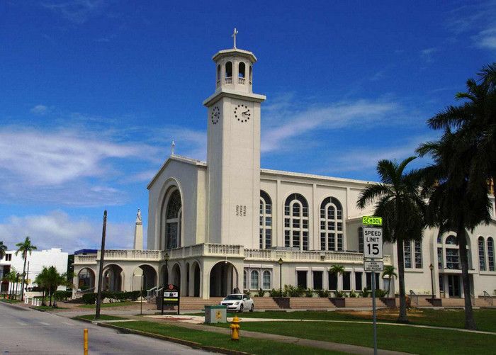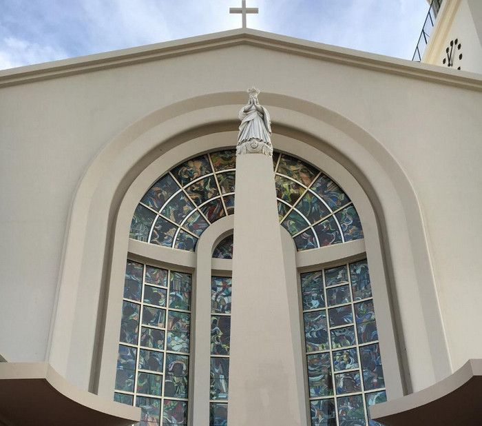 Собор Сладчайшего Имени Марии - кафедральный собор Архиепархии Аганьи, имеющий статус Малой базилики, присвоенный ему в 1965 году Папой Римским Павлом VI. Собор расположен в историческом центре города Хагатна, на восточной стороне площади Испании. Нынешнее здание Собора Сладчайшего Имени Марии стоит на месте первой католической церкви на Гуаме, построенной в 1669 году испанским священником Диего Луисом де Сан-Виторесом при содействии коренных жителей острова - индейцев племени чаморро, которых испанские колонисты массово обращали в христианство. Королева Испании Мария Анна Пфальц-Нейбургская лично пожертвовала на строительство часовни 300 песо, а глава острова Гуам Кепуха (вождь народа чаморро) подарил католическому приходу землю для строительство храма. Освящённая 2 февраля 1669 года церковь представляла собой деревянную часовню, вокруг которой со временем были построены административные здания, в том числе и Губернаторский дворец. В 1670 году часовня была перестроена - снаружи стены здания были выложены плитами из кораллов, внутренние стены церкви, потолок и полы остались деревянными, только теперь они были выполнены из мербау - ценной древесины дерева Ифит (Intsia bijuga), эндемика острова Гуам. На задней стене храма была размещена фреска с изображением Успения Пресвятой Девы Марии. Эта церковь была разрушена во время бомбардировок острова в годы Второй мировой войны. Современный собор на её месте был построен в 1959 году, фасад белоснежного храма с высокой колокольней украшают аркадная галерея с ажурной балюстрадой и большие витражные окна. Перед центральным входом установлена статуя Святой Марии Камален (Пресвятой Богородицы Камарин), которая почитается как покровительница Гуама. Её изображение, выполненное из дерева и слоновой кости, размещено в алтаре собора. Этот образ Пресвятой Богородицы Камарин был привезен испанцами на остров Гуам в 1690 году. На витражах, украшающих окна храма, изображены сцены из Святого писания и лики святых. 2 февраля 1881 года Собор Сладчайшего Имени Марии посетил Римский Папа Иоанн Павел II, в память об этом событии перед храмом установлена его бронзовая статуя. Фигура Иоанна Павла II стоит на вращающемся постаменте, каждые 12 часов она совершает полный оборот вокруг своей оси.