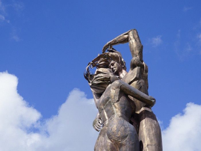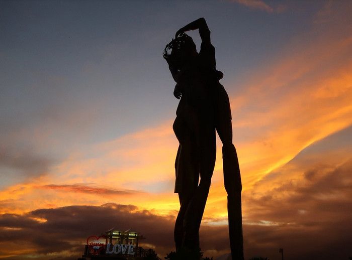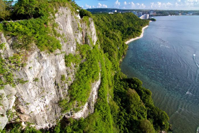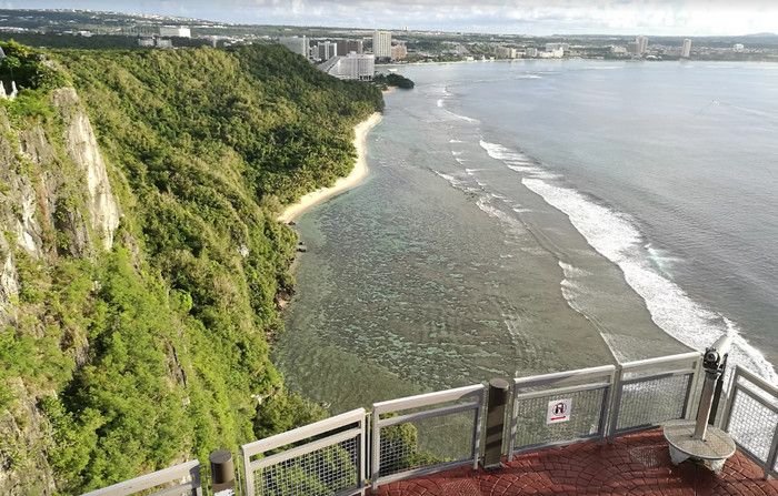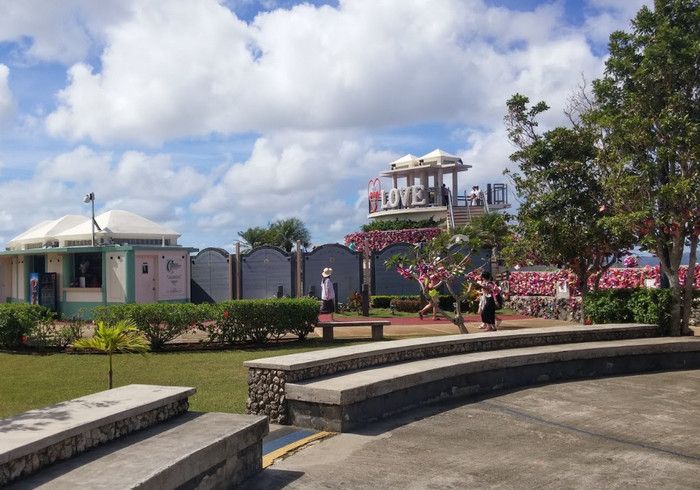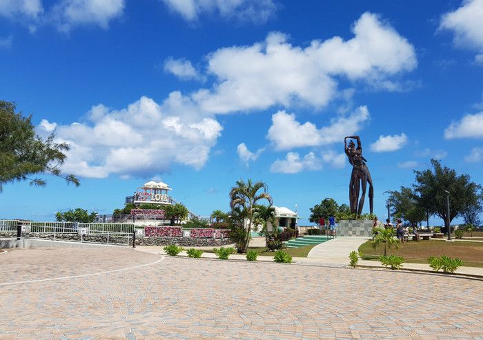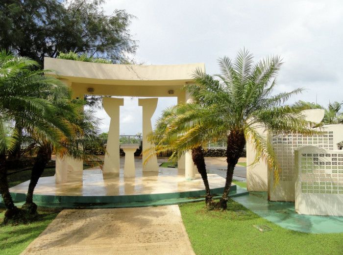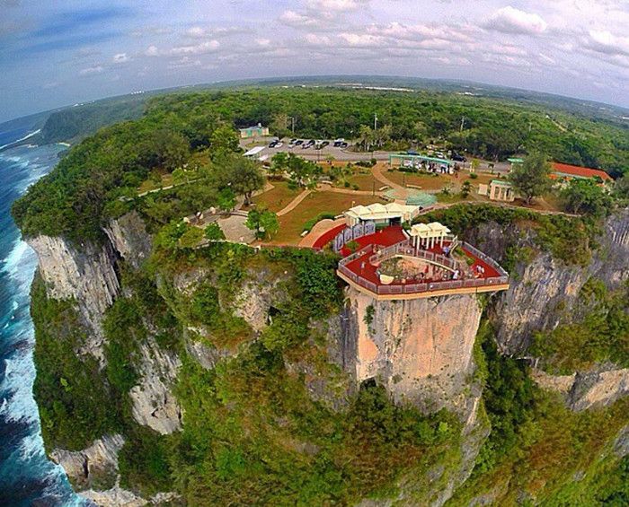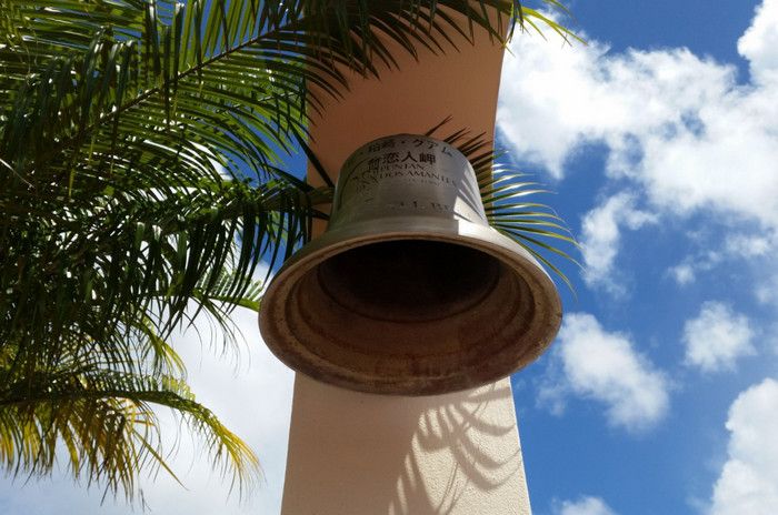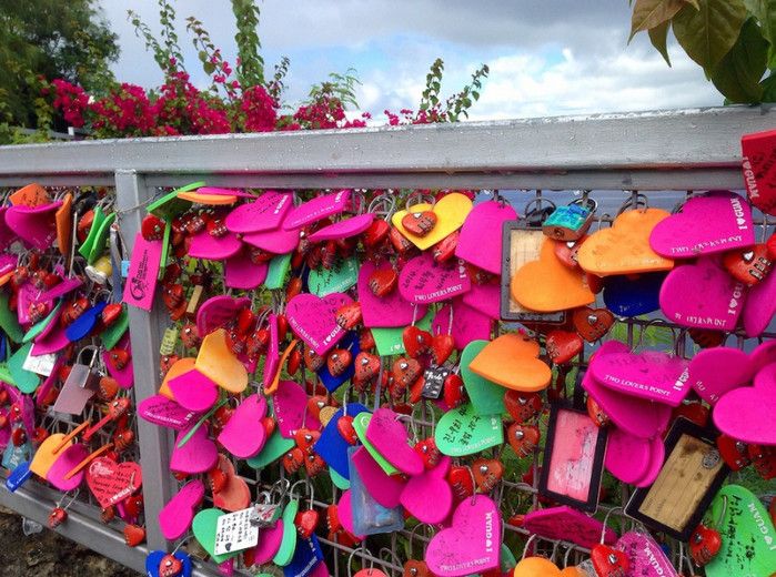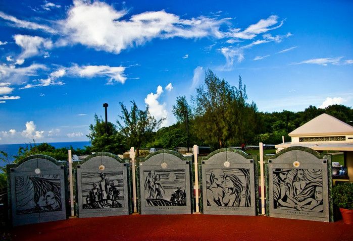 Мыс Двух Влюблённых - одна из самых известных и наиболее посещаемых достопримечательностей Гуама. Скалистый утёс, расположенный в северном конце залива Тумон, возвышается над уровнем моря на высоту 113 метров, с его вершины открываются потрясающие виды на Филиппинское море и остров Гуам, а у подножия отвесной скалы морские волны с грохотом разбиваются об огромные камни. С этой скалой связана, пожалуй, самая романтическая легенда народа чаморро (коренного населения Гуама) о трагической любви дочери богатого испанского аристократа и простого воина из индейского племени чаморро. В те времена, когда остров Гуам находился под властью Испанской короны, в столице острова, городе Аганья (Хагатна), жила богатая аристократическая семья. Глава семьи был знатным испанским дворянином, его жена - дочерью великого вождя Чаморро, а их дочь славилась красотой и благочестием. Однажды отец объявил дочери о своём решении выдать её замуж за испанского капитана, которого девушка никогда в глаза не видела. Отчаявшаяся красавица тайком убежала из дома, покинула город и, в конце концов, оказалась на уединённом берегу залива Тумон, где встретила молодого воина из племени чаморро. Молодые люди полюбили друг друга и поклялись в вечной верности. Узнав об этом, отец девушки решил выдать её замуж за испанца незамедлительно. Непокорная дочь снова сбежала к своему возлюбленному, но теперь молодых влюблённых преследовали испанские солдаты под предводительством отца девушки и несостоявшегося жениха. Погоня завершилась на высокой скале, край которой обрывом нависал над морем. Влюблённые, оказавшись в ловушке между солдатами и бездной, связали в один узел свои волосы (чтобы не расставаться и после смерти) и прыгнули с вершины утёса в море. С тех пор эту скалу стали называть Мысом Двух Влюблённых, а индейцы чаморро сложили красивую легенду о настоящей любви и верности. Сегодня на вершине скалы разбит небольшой парк, а на самом краю обрыва построена двухуровневая смотровая площадка, оборудованная телескопом. В парке установлены статуя Двум влюблённым, Любовный колокол и гранитные стелы, на которых изображены молодые парень и девушка, благодаря которым это место стало символом вечной любви. Мыс Двух Влюблённых посещают не только туристы - на вершину скалы, по традиции, поднимаются тысячи влюблённых, чтобы поклясться друг другу в вечной любви, повесить свой заветный замочек на "стену любви" возле смотровой площадки, а в последствии сыграть здесь свадьбу ( в парке специально для таких случаем построен свадебный павильон).