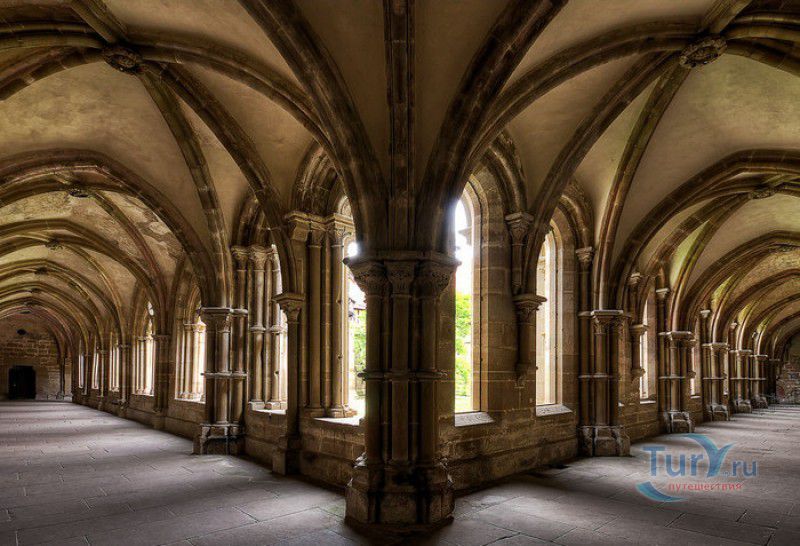 Монастырь Маульбронн - бывший цистерцианский монастырь, наиболее хорошо сохранившийся из всех средневековых обителей на территории, расположенной севернее Альп. Монастырь расположен на юго-западе Германии, в городе Маульбронн, в земле Баден-Вюртемберг, он был основан орденом цистерцианцев в 1147 году под эгидой папы римского Евгения III - первого цистерцианского понтифика. Самые ранние здания монастыря, датируемые концом XII века, построены в романском стиле. В 1178 году была освящена трёхнефная романская церковь в честь Девы Марии. Сооружения, построенные в начале XIII века, возводились уже в стиле ранней готики. К началу XV столетия монастырь Маульбронн представлял собой огромный комплекс с монастырской церковью, часовнями, кельями, Фонтанным домом, крытыми галереями, гостевым домом, трапезными, лазаретом, мельницей, кузницей, бондарными и гончарными мастерскими. На территории монастыря были разбиты большой сад и огород, где монахи занимались разведением редких и лекарственных растений, которые применяли для лечения как самих братьев-цистерцианцев, так и жителей близлежащих окрестностей. Территория аббатства была защищена высокими крепостными стенами с башнями, за которыми располагались виноградники и сельскохозяйственные угодья с системой искусственных прудов и каналов. Монахи выращивали фрукты и овощи, а вина из подвалов монастыря Маульбронн славились далеко за пределами аббатства. Размеренная жизнь монастыря закончилась в 1504 году, когда Маульбронн был захвачен герцогом Ульрихом Вюртембергским. Обитель была разграблена, имущество монастыря роздано герцогом в счёт погашения своих долгов, а в 1534 году монастырь был секуляризован. В 1547 году, при императоре Карле V, монастырь был возвращён цистерцианцам, но не надолго - вскоре он снова перешёл в распоряжение герцогов Вюртембергских. Сын Ульриха, герцог Кристоф фон Вюртембергский основал в Маульбронне протестантскую семинарию, в которой в своё время получали образование выдающийся математик и астроном Иоганн Кеплер, поэт Фридрих Гельдерлин и писатель, лауреат Нобелевской премии Герман Гессе. В 1630 году монастырь был возвращён цистерцианцам, но уже спустя два года, после захвата герцогства Вюртембергского армией шведского короля Густава II Адольфа, принявшего участие в Тридцатилетней войне, аббатство Маульбронн было снова передано протестантам. Окончательно монастырь стал протестантским по условиям заключённого в 1648 году Вестфальского мира. В 1806 году монастырь был секуляризован королём Вюртемберга Фридрихом I, а монастырская протестантская школа была объединёна с семинарией аббатства Бебенхаузен. С 1818 года и по настоящее время в бывшем монастыре Маульбронн действует Евангелическая богословская семинария. До наших дней в первозданном виде дошли многие постройки монастыря, в том числе романская церковь, Фонтанный дом, клуатр (крытая галерея), рефекторий (трапезная) и просторная паперть, датируемая 1220 годом. Сохранилась филигранная каменная резьба, украшавшая монастырские здания, двери главного и южного порталов церкви, изготовленные в 1178 году из еловых досок и обитые кованым железом, статуя Девы Марии, выполненная из древесины грецкого ореха в 1307-1317 годах, великолепные резные готические хоры XV века, три рельефа из "Страстей Христовых", некогда украшавших алтарь XIV