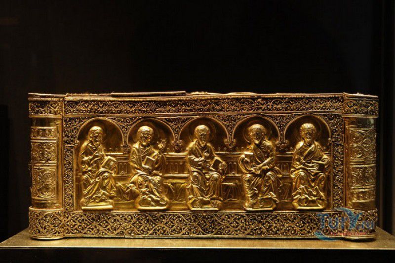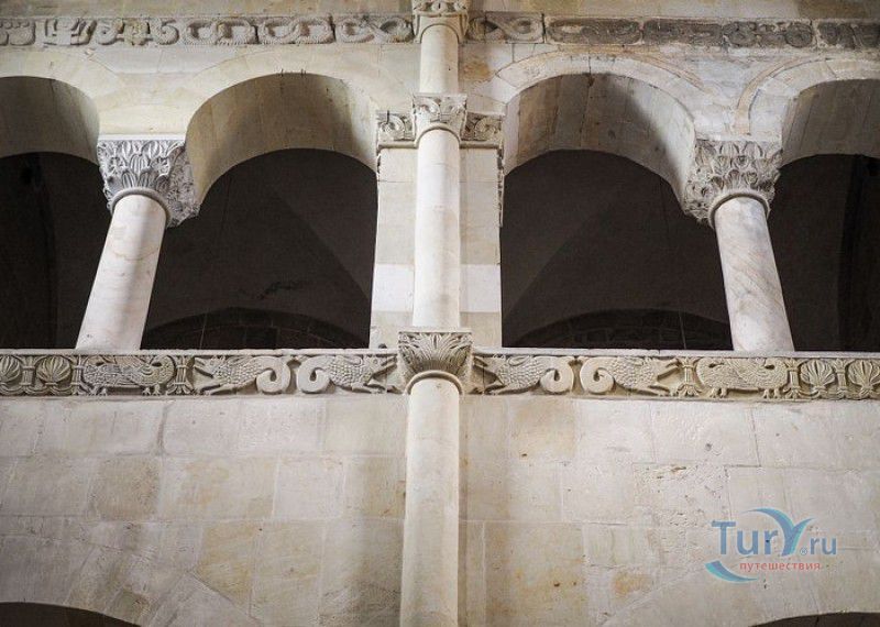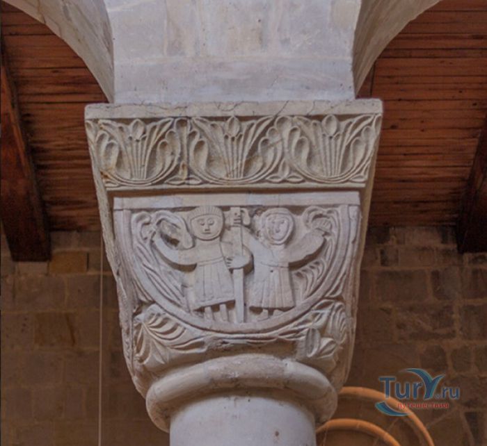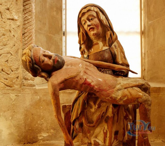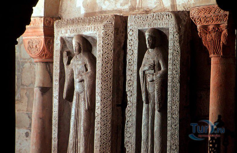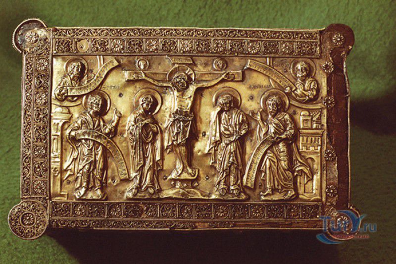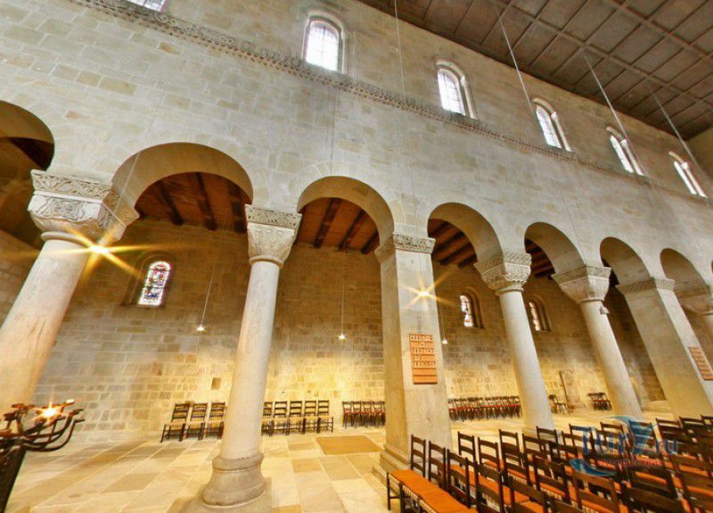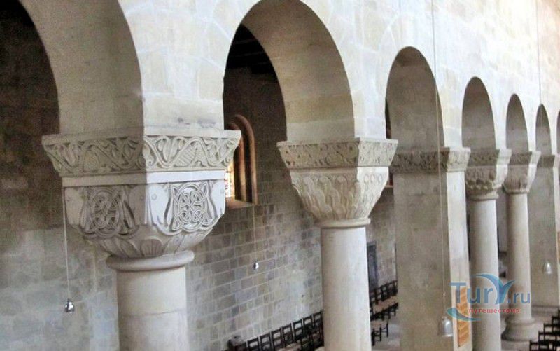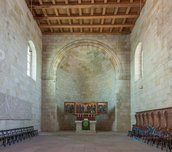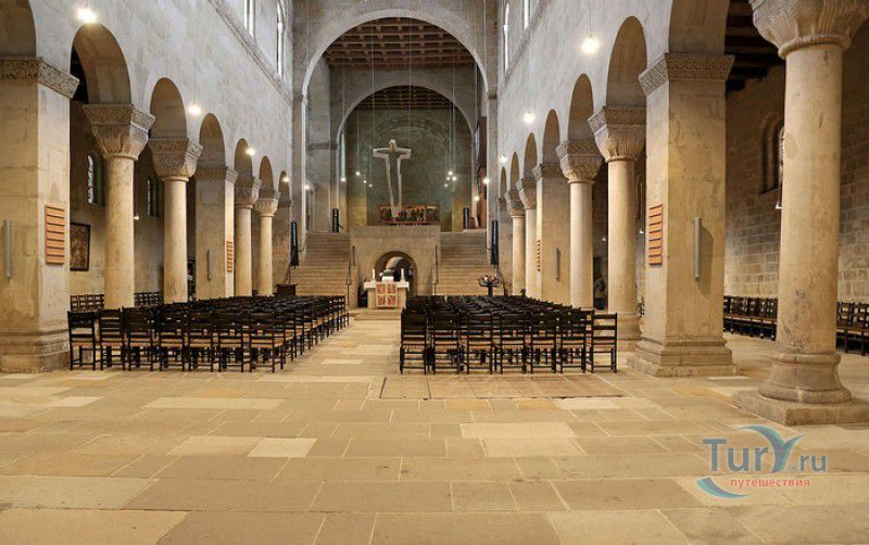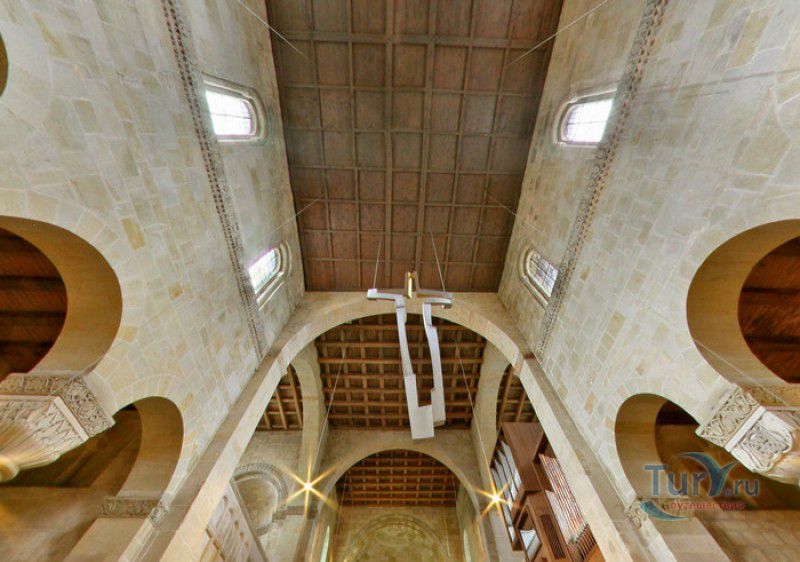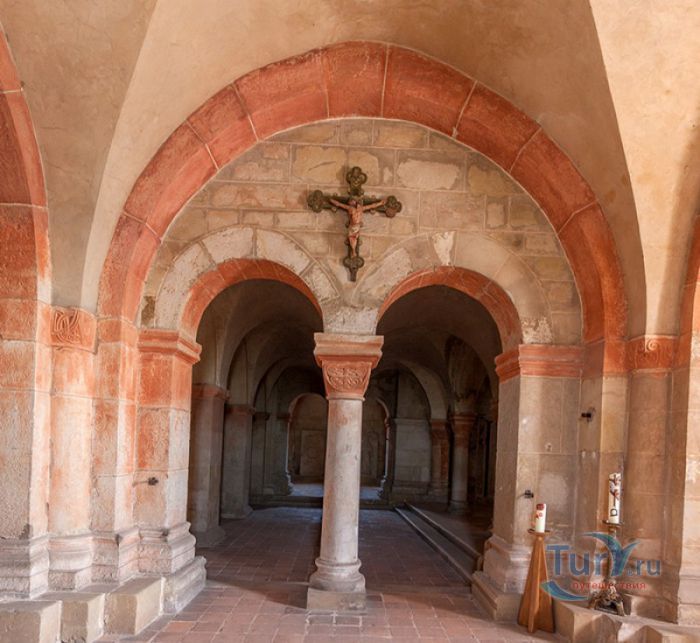 Монастырская Церковь Святого Серватия в Кведлинбурге - романская церковь бывшего Кведлинбургского аббатства, основанного в 936 году Оттоном I Великим по просьбе своей матери, королевы Матильды, второй жены первого германского короля Генриха I Птицелова. Монастырь был построен на территории замка, возведенного Генрихом I на вершине Замковой горы Кведлинбурга. В средние века Кведлинбургское аббатство (Вольное светское Имперское аббатство в Кведлинбурге) считалось одним из самых больших и влиятельных в Священной Римской империи. Монастырём и городом, возникшим у подножия Замковой горы, управляла аббатиса, которой могла стать только одна из дочерей царствующей королевской семьи. Светский статус настоятельницы монастыря приравнивался к статусу княгини Священной Римской империи, по церковной иерархии аббатиса была выведена из подчинения главы своей епархии и подчинялась напрямую римскому папе. На месте небольшой замковой часовни, в которой в были похоронены король Генрих I и королева Матильда, в конце X века было начато строительство большой монастырской церкви, более соответствующей престижу Кведлинбургского аббатства. Возведение церкви (трёхневной базилики в романском стиле) было завершено в 1021 году, 21 сентября 1021 года она была освящена в честь Святых Серватия Маастрихтского и Дионисия Парижского. На церемонии освящения присутствовал император Генрих II. В 1070 году в церкви вспыхнул пожар, практически уничтоживший здание. Реконструкция церкви длилась почти шесть десятилетий, и в 1129 году, в присутствии императора Лотаря III, восстановленная в своем первоначальном виде базилика была вновь освящена. В 1320 году, при аббатисе Ютте фон Кранихфельд, восточный хор был перестроен в готическом стиле (в 1938-1940 годах заменен на неороманский), а в в 1863-1882 годах к нему были пристроены две неороманские башни с острыми шпилями, которые в 1946 году заменили на невысокие шатровые крыши. Здание Коллегиатской церкви впечатляет своими размерами, декоративным оформлением фасадов и богатым внутренним убранством. Неф церкви разделен на проходы аркадами из колонн, второй этаж по периметру опоясывает крытая галерея, фризы, капители и импосты (карнизы над пилястрами) колонн внутри церкви украшены скульптурным декором (в орнаменте преобладают растительные и анималистические мотивы). От романской архитектуры в церкви сохранились главный вход на северной стене фасада и крипта, в которой находятся гробницы короля Генриха I и Святой Матильды, а также романские и готические скульптурные надгробия аббатис монастыря, в том числе Матильды - дочери Оттона I, Адельгейды I - сестры Оттона III и Беатрикс I - дочери Генриха III. Своды нефа и крипты украшает хорошо сохранившаяся до наших дней потолочная роспись, датируемая началом XII века. К алтарной части церкви пристроена монастырская сокровищница, в которой хранятся дары представителей Оттоновской династии Кведлинбургскому аббатству (сокровищница считается богатейшей в Германии). В годы Второй мировой войны сокровища монастыря были спрятаны в глубокой штольне, расположенной на окраине города. Но в 1945 году клад был обнаружен лейтенантом американской армии Джо Томом Мидором - бесценные реликвии были вывезены в США и только в 1987 году возвращены в сокровищницу Кведлинбургского аббатства. Среди раритетов, хранящи