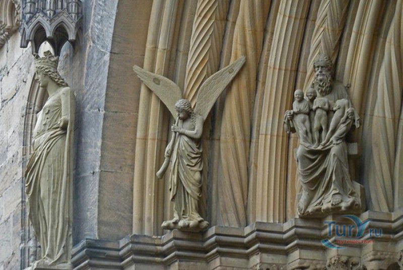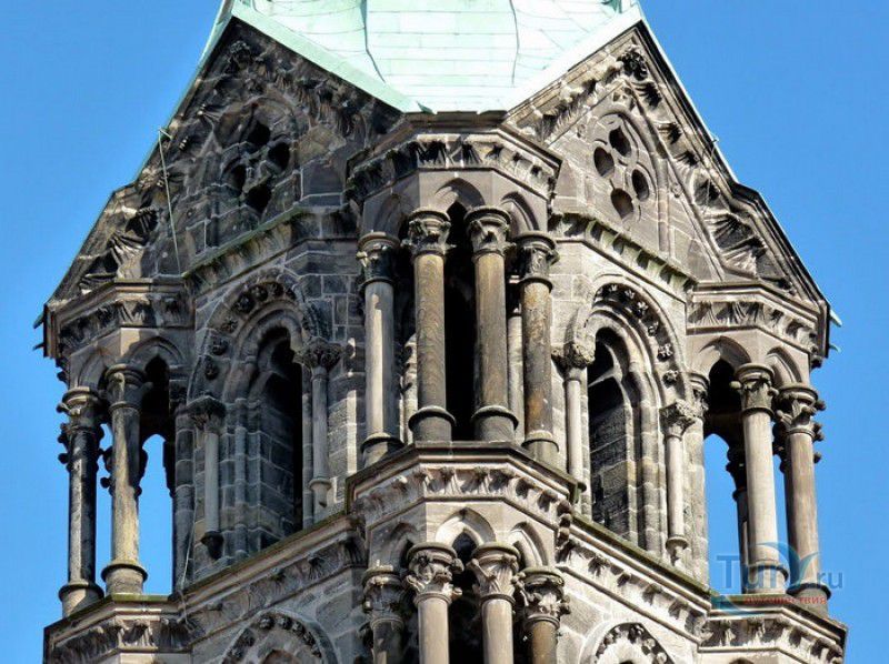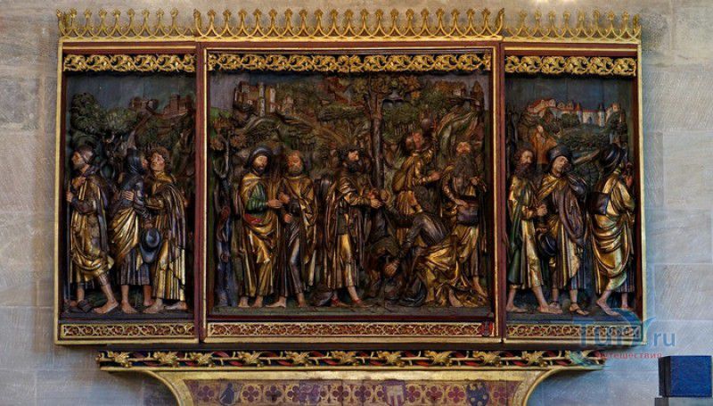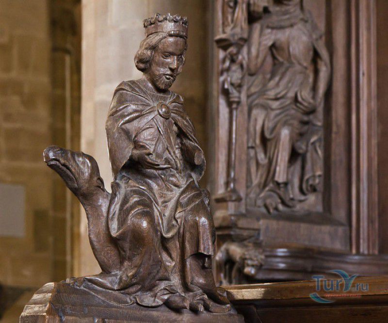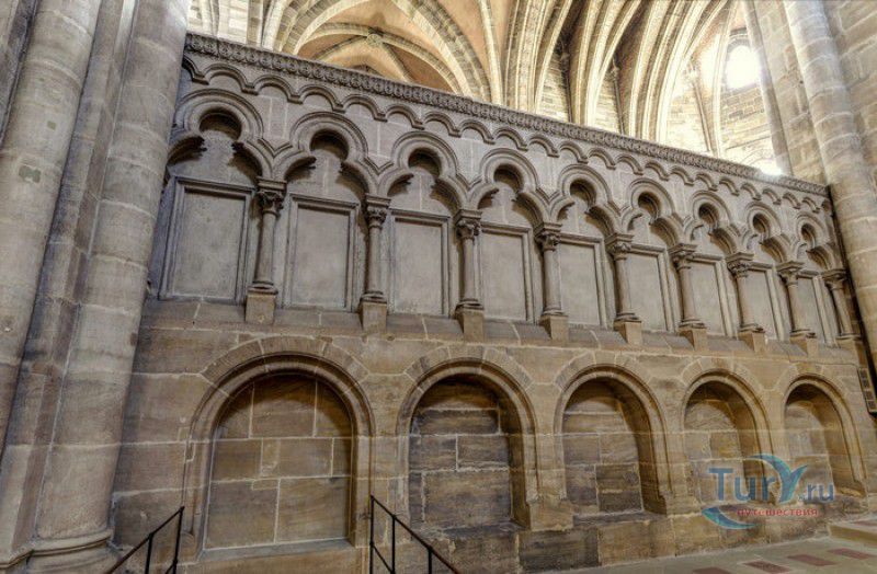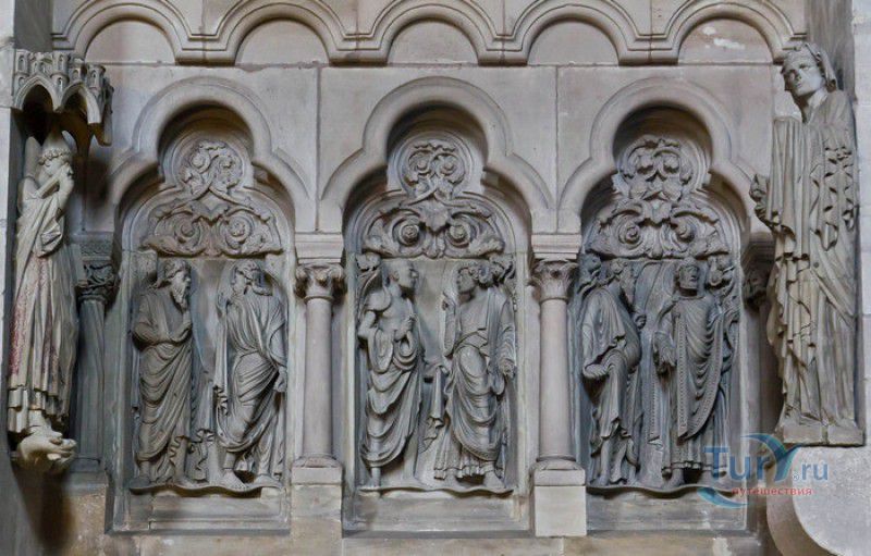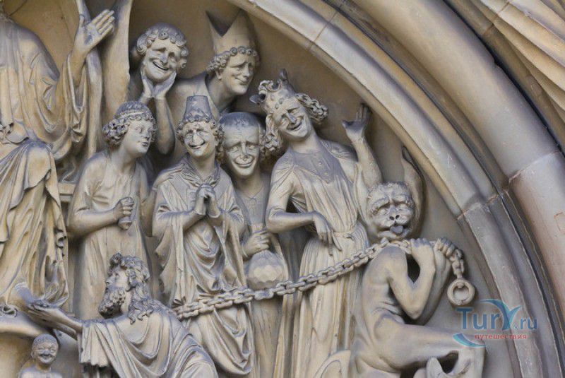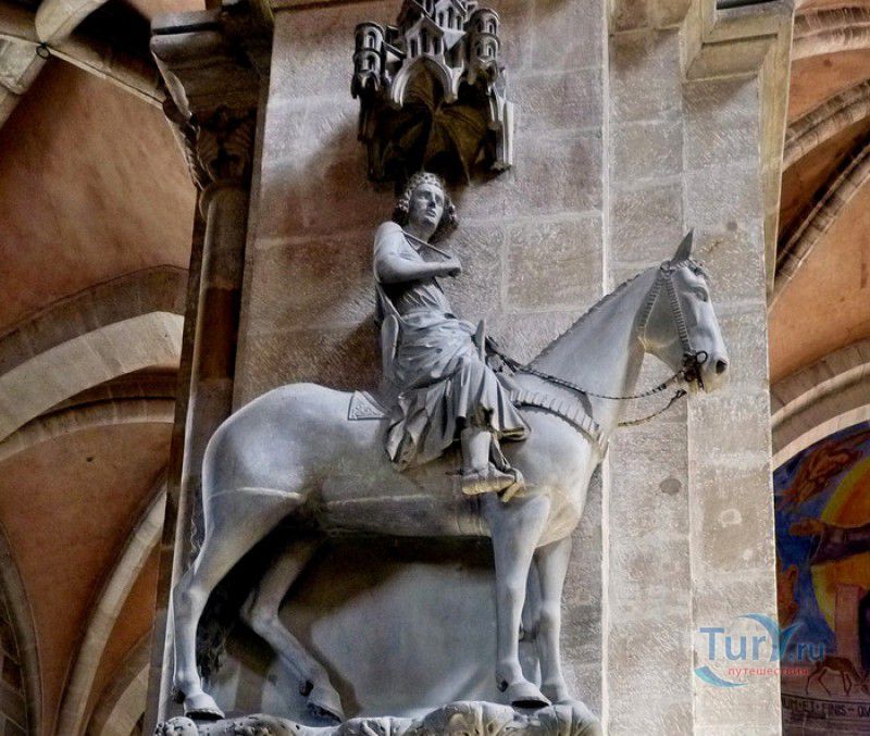 Кафедральный Собор в Бамберге (Кафедральный Собор Святого Петра и Святого Георгия в Бамберге) - один из семи имперских соборов Германии, расположен в историческом центре города Бамберг, в составе которого в 1993 году внесен в список всемирного наследия ЮНЕСКО. Возведение собора было начато в 1004 году по приказу императора Священной Римской империи Генриха II Святого. Работы велись 8 лет и завершились в 1012 году, в этом же году собор был освящён в честь Святых Петра и Григория. На церемонии присутствовали сам император Генрих II, тридцать шесть епископов и толпы простых верующих. Но уже в 1081 году первый собор был полностью уничтожен во время сильного пожара, его отстроили заново, но в 1185 году храм снова сгорел. Собор решили не восстанавливать, а строить на его месте новый. Возведение третьего по счёту собора было начато в 1215 году, а освящён он был 6 мая 1237 года. Архитектурный стиль Кафедрального собора в Бамберге представляет собой смесь позднего романского и раннего готического стилей - при строительстве нового здания использовали уцелевшие фрагменты более раннего храма, построенного в романском стиле. Собор представляет собой трёхнефную базилику с четырьмя башнями - восточными, построенными в романском стиле, и готическими - западными. Высота восточных башен - 76 метров, западных - 74 метра. Собор имеет неф с восточным и западным хорами, северный и южный трансепты, боковые капеллы и два склепа (западный и восточный). Главный вход в собор носит название Королевский портал, он расположен на северной стороне нефа. Тимпан портала украшен барельефом "Страшный суд" и статуями пророков Ветхого Завета и апостолов Нового Завета. С южной стороны находится портал Адама, который служил входом в собор для простых верующих. С правой стороны от входа размещены статуи Евы, Адама и Святого Петра, с левой - Святого Стефана, императора Генриха Святого и императрицы Кунигунды. В северо-восточной башне расположены портал Марии, в северной стене трансепта - портал Файт. Если внешний облик собора с тех времён почти не изменился, то интерьер на протяжении веков подвергался многократным перестройкам. Так, в 1648-1653 годах внутреннее убранство собора было оформлено в стиле барокко и оставалось таковым до середины XIX столетия. В 1826 году, во время своего визита в Бамберг, Людвиг I Баварский посетил собор и "пришёл в ужас" от плачевного состояния величественного храма и уродующей его художественный вид реконструкции, выполненной в стиле барокко. Монарх велел архиепископу Бамберга немедленно приступить к работам по возвращению храму его первоначального средневекового вида. Реставрационные работы велись в 1829-1837 годах под руководством архитектора Фридриха фон Гертнера. Интерьер собора богато украшен рельефами и скульптурами, великолепными алтарями, дубовые резные скамьи хора, выполненные в 1380 году, считаются шедевром готического зодчества. Одна из главных достопримечательностей собора - знаменитая скульптура "Бамбергский всадник", датируемая 1230 годом. Скульптура находится у входа в восточный хор, на северном пирсе. Статуя лошади и всадника, выполненные из песчаника, являются одним из самых известных скульптурных произведений немецкого средневекового искусства. Достоверно неизвестно чьё изображение увековечено в камне, наиболее вероятно, что всадник - это Иштва