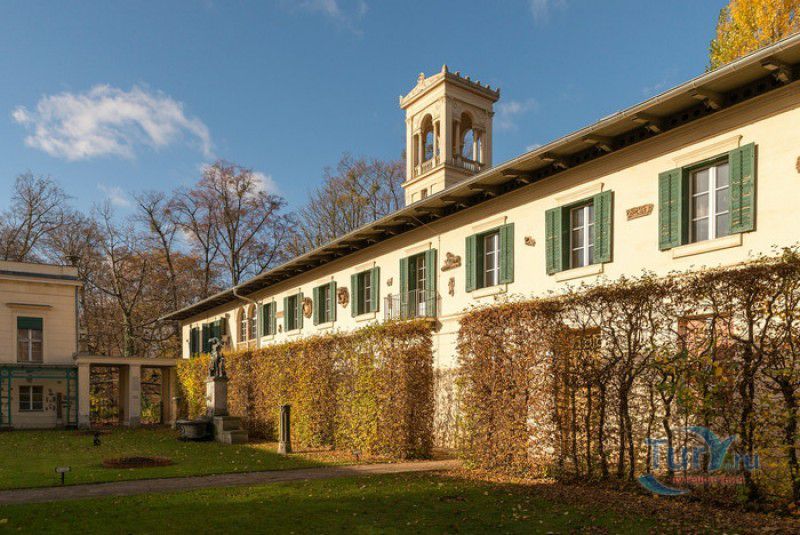 Дворец и Парк Глинике расположены на юго-западной окраине Берлина, на границе с Потсдамом, недалеко от Сан-Суси. После того, как Фридрих II Великий переселился из Берлина в Потсдам, в свой дворец Сан-Суси, прусская знать также стала обзаводиться дворцами и поместьями в окрестностях Потсдама, поближе к королевской резиденции. Поместьем Глинике, расположенным в шести километрах от Сан-Суси, попеременно владели несколько богатых и знатных семейств, в числе которых - граф Линденау и канцлер Пруссии, князь Гарденберг. При последнем в имении был разбит декоративный сад по проекту ландшафтного архитектора Петера Ленне, а от предыдущих хозяев сохранился небольшой замок, напоминающий крепость. После смерти князя Гарденберга в 1822 году поместье было выставлено на продажу, и в 1824 году его купил принц Карл Прусский, третий сын короля Фридриха Вильгельма III, только что вернувшийся из путешествия по Италии и пожелавший создать в Глинике свой собственный "кусочек" Италии. Для перестройки старого замка Карл Прусский пригласил архитектора Карла Фридриха Шинкеля, после смерти которого строительство продолжил его лучший ученик - Людвиг Персий. В результате замок был перестроен в классическом стиле по образцу итальянской виллы. Вход во дворец оформлен в виде портика, фасады украшены скульптурами и барельефами, стилизованными под античные статуи. На первом этаже располагались комнаты прислуги, столовая и служебные помещения, на втором этаже - Красный зал, Зелёный салон, Бирюзовая спальня, Мраморный зал, библиотека, личные апартаменты Карла Прусского и его жены, принцессы Марии Луизы Александрины (внучки российского императора Павла I). Для декора внутренних помещений дворца Шинкель использовал мраморные камины, паркет из ценных пород дерева, античные статуи, картины, хрустальные люстры и элегантную мебель. Каждая комната дворца индивидуальна - начиная от цветовой гаммы, используемой архитектором для оформления того или иного номера, и заканчивая предметами интерьера и дизайном мебели. На территории парка, который при Карле Прусском был значительно расширен, были построены ротонда с колоннами, названная "Большое любопытство", чайный домик "Маленькое любопытство", охотничий домик с псарней и конюшней, а также здание под названием "Казино", на первом этаже которого располагалась элегантная гостиная, а на втором - комнаты для гостей. Павильоны и беседки, построенные в классическом стиле, гармонично вписываются в парковый ландшафт - сооружённые из белого камня они эффектно выделяются на фоне пышной зелени парка. В 1840 году перед главным входом во дворец был установлен Львиный фонтан, созданный по подобию фонтана на вилле Медичи в Риме. При Карле Прусском были продолжены работы по созданию парка - разбиты Сад развлечений, итальянский и английский сады с живописными лужайками, тенистыми рощами и цветниками. Парк Глинике, созданный знаменитым ландшафтным архитектором Петером Ленне, признан выдающимся произведением садово-парковой архитектуры. Во время Первой и Второй мировых войн дворцово-парковый ансамбль Глинике не пострадал, после войны во дворце располагался отель, а в 80-х годах XX века дворец был преобразован в музей. В западном крыле дворца был открыт Hofgärtnermuseum - единственный в Европе музей, посвященный жизни и творчеству прусских ландшафт