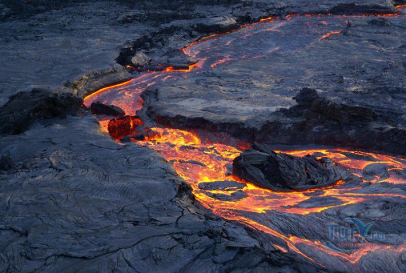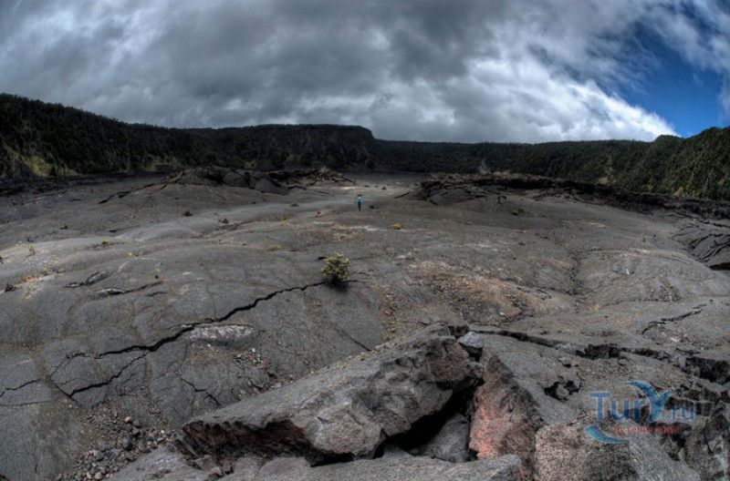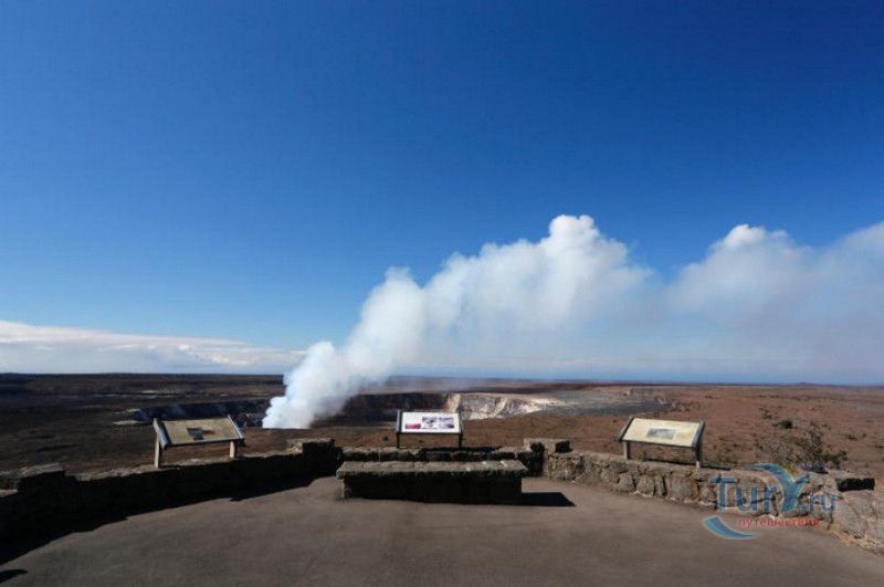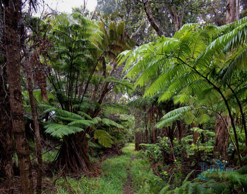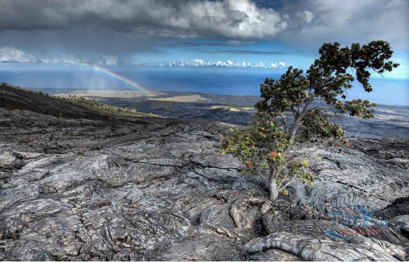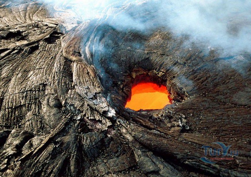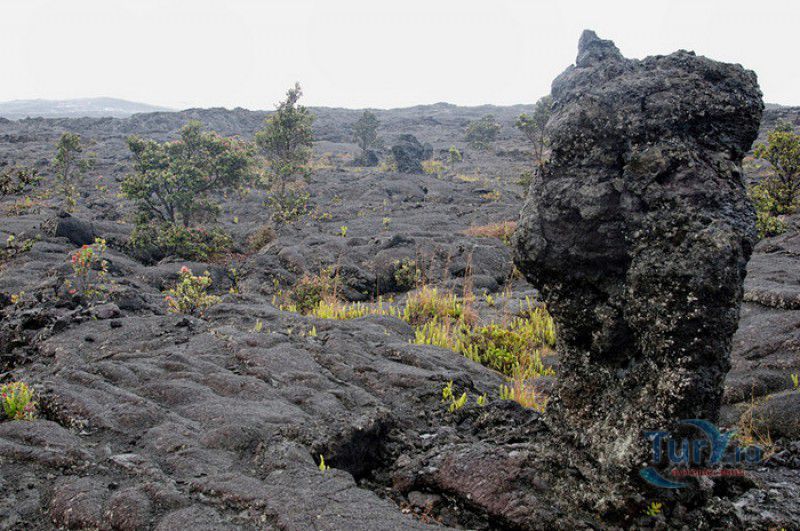 Национальный Парк Гавайские Вулканы расположен на юго-востоке острова Гавайи, в 48 километрах к юго-западу от города Хило. Парк Гавайские Вулканы - одно из немногих мест на планете, где можно вблизи увидеть множество гейзеров, выбрасывающих тонны вулканических газов, наблюдать за потоками раскалённой лавы и бурлящими лавовыми озёрами, а также стать свидетелем одного из самых завораживающих зрелищ - извержения вулканов. Парк Гавайские Вулканы был создан в 1916 году, он занимает территорию площадью 1308 квадратных километров, на которой расположены один из самых больших на Земле действующих вулканов - Мауна-Лоа (его высота над уровнем моря - 4169 метров, а общая высота, с учётом подводной части, - 9170 метров) и один из самых активных вулканов на планете - Килауэа (1247 метров над уровнем моря). Первое извержение Мауна-Лоа произошло около 700 000 лет назад, последнее - в 1984 году, а Килауэа, самый молодой из Гавайских вулканов, активен постоянно с момента своего образования. Последнее его извержение, начавшееся в 1983 году, продолжается и по сей день, в 2008 году оно перешло в фазу интенсивной активности - из кратера Халемаумау, расположенного в центре кальдеры Килауэа, постоянно выделяются вулканические газы, выбрасываются столбы вулканического пепла и непрерывно стекают в океан потоки раскалённой лавы. Следствием постоянной вулканической активности на протяжении тысячелетий стало большое разнообразие ландшафтов и экосистем парка - бесплодные пустыни, покрытые застывшей лавой, шлаковые конусы, пещеры, реки и озёра из расплавленной лавы, участки вечнозелёных влажных тропических лесов и пляжи из чёрного песка на океаническом побережье. В зимний период вершина Мауна-Лоа часто покрыта снегом, при этом на побережье острова температура никогда не опускается ниже + 20° С. Такое разнообразие экосистем и природных зон способствовали появлению на территории парка большого количества видов животных и растений, значительная часть которых являются эндемиками острова. В парке произрастают 36 видов редких или находящихся под угрозой исчезновения видов растений, в числе которых знаменитые Гавайский древовидный папоротник, древовидный "колокольчик" Клермонтия пелеана - растение, почти исчезнувшее в дикой природе, и Метросидерос - кустарник с большими ярко-красными цветами. В парке обитают 23 эндемичных вида птиц, в том числе огненная гавайская цветочница, гавайский гусь, гавайский буревестник и гавайский ястреб. На территории парка водятся плотоядные гусеницы, огромные стрекозы, улыбающийся паук, в прибрежных водах можно встретить находящуюся под угрозой исчезновения черепаху бисса. А вот млекопитающие в парке представлены всего одним видом летучих мышей. Среди исторических и археологических памятников парка Гавайские Вулканы самой известной является долина петроглифов Пуу Лоа, расположенная на южном склоне вулкана Килауэа. Пуу Лоа представляет собой огромное поле, состоящее из 23 000 рисунков (прямых линий, геометрических фигур, концентрических колец, изображений людей и животных), высеченных гавайскими аборигенами в застывшей лаве более 200 000 лет назад. Через поле петроглифов проложен деревянный настил, по которому посетители, желающие увидеть загадочные рисунки, могут отправиться в поход по долине Пуу Лоа. Ещё один интересный объект парка - окаменел