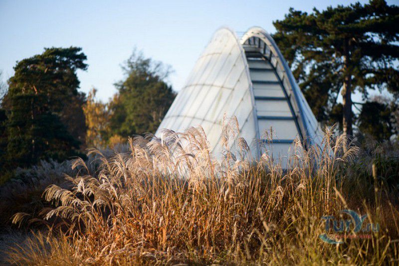 Королевские Ботанические Сады Кью (Сады Кью) расположены в Великобритании, в юго-западном пригороде Лондона, между Ричмондом и Кью, на южном берегу Темзы. Сады Кью занимают территорию площадью 120 гектаров, на которой произрастают более 30 000 видов растений со всего мира. Гербарий, собранный сотрудниками сада, является одним из крупнейших в мире и насчитывает более 7 000 000 образцов растений. Один из самых красивых и больших ботанических садов Англии был основан в 1759 году принцессой Августой, вдовствующей принцессой Уэльской. При ней в поместье Ричмонд-Лодж, унаследованном принцессой после смерти супруга, принца Фредерика, был заложен "экзотический сад" площадью 3,6 гектаров и создан питомник для выращивания деревьев и кустарников. Принцессой Августой был приглашён известный архитектор Уильям Чемберс, под руководством которого в её саду были построены 25 садовых зданий, из которых до наших дней сохранились лишь пять - оранжерея, храм Аретузы, храм Беллоны, разрушенная арка и 49-метровая китайская пагода. После смерти Августы в 1772 году поместье перешло к Георгу III. Королём был приглашён ландшафтный архитектор Ланселот Браун, который провёл полную перепланировку садов и значительно расширил их плошадь. В 1802 году Уайт-хаус (бывший дом принцессы Августы) был снесен, а на его месте возведен дворец Кью, ставший загородной королевской резиденцией. В это же время королевская резиденция в Кью и Ричмонд-Лодж были объединены в одно большое поместье. Коллекция растений Садов Кью стала стремительно пополняться новыми видами после привлечения Георгом III к работе над созданием ботанического сада сэра Джозефа Бэнкса - известного английский натуралиста, ботаника и географа, президента Королевского общества по развитию знаний о природе. В 1779 году для него даже была утверждена должность - Советник короля по Королевским ботаническим садам Кью. Джозефом Бэнксом были организованы экспедиции в Австралию, на Азорские острова и Канарские острова, в Китай, Африку, Индию и на острова Вест-Индии с целью сбора видов экзотических растений для Садов Кью. В 1840 году Сады Кью получили статус Национального ботанического сада, первым официальным директором Королевских ботанических садов Кью в марте 1841 года был назначен сэр Уильям Хукер, профессор ботаники Университета Глазго. При нём территория садов увеличилась до 30 гектаров, а площадь дендрария составила 109 гектаров. В это время в саду был создан научный исследовательский центр, основана библиотека, которая в наши дни насчитывает более 750 тысяч книг по ботанике и около 175 тысяч рисунков растений, а также было начато создание гербария. В 1844-1848 годах была построена Пальмовая оранжерея (Palm House). Оранжерея выполнена из стекла и кованой стали по проекту архитектора Децимуса Бертона при участии инженера-металлурга Ричарда Тернера. Позже в саду были построены оранжерея "Дом умеренного климата", оранжерея "Дом кувшинок", в которой выращивают самую большую в мире водяную лилию - Викторию Амазонскую, и оранжерея принцессы Уэльской, торжественно открытая в 1987 году принцессой Дианой. В этой оранжерее можно увидеть большое количество видов орхидей, суккулентов, кактусов, плотоядных растений и бромилиевых. В ботаническом саду есть также Альпийский домик, Галерея ботанического искусства Ширли Шервуд, Галерея Марианны Норт,