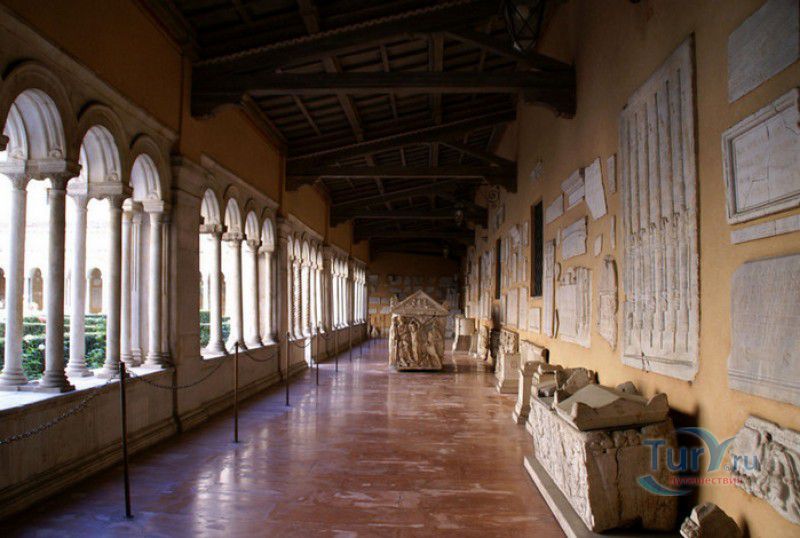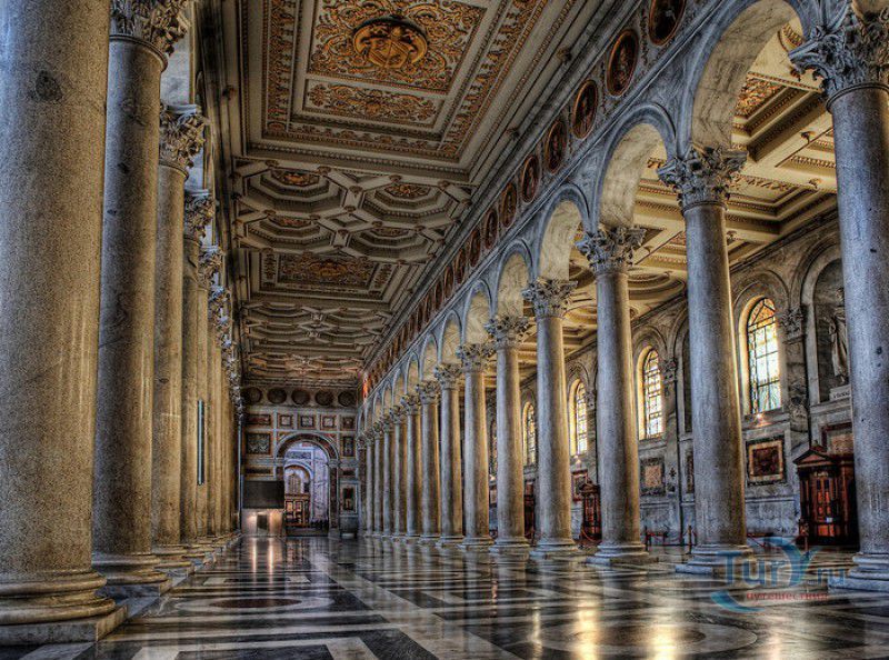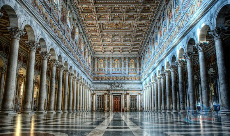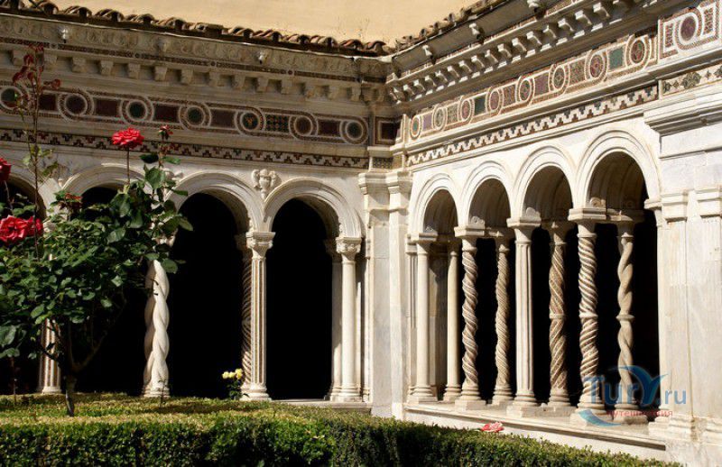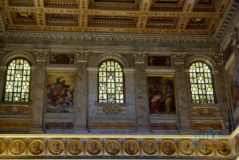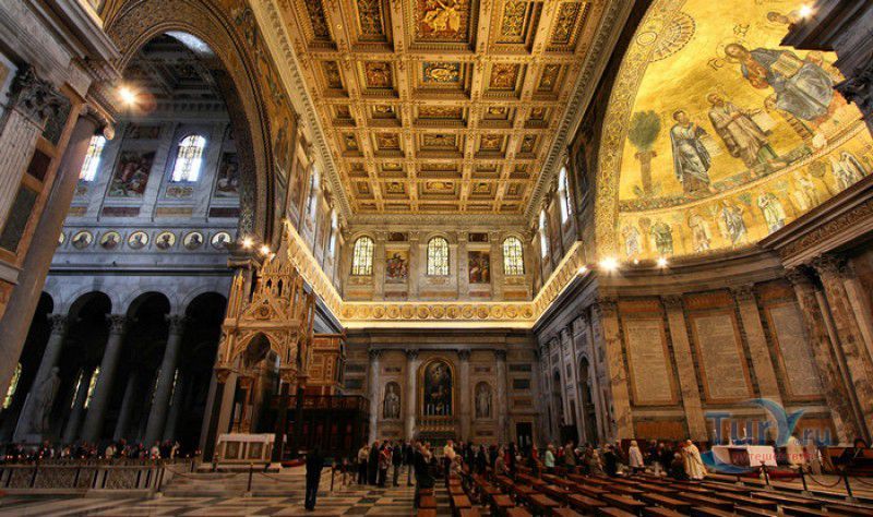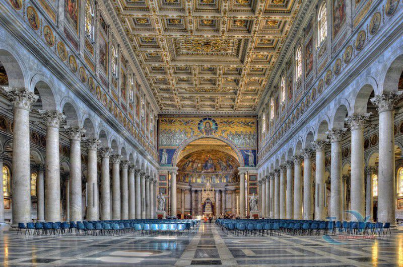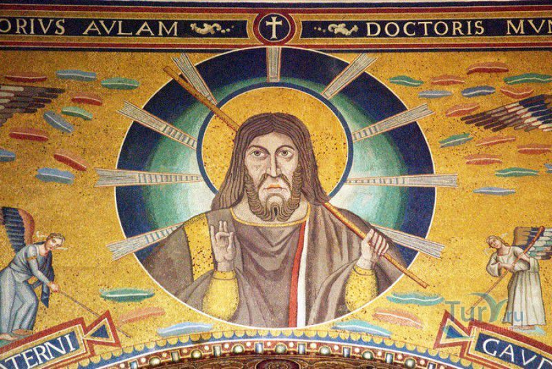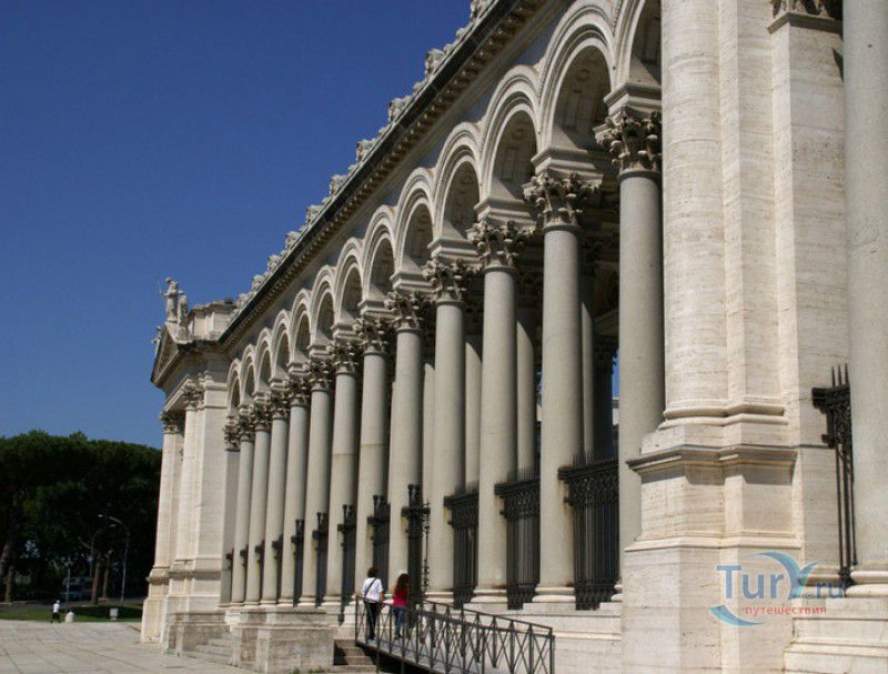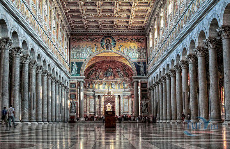 Базилика Сан Паоло Фуори Ле Мура (Базилика Святого Павла За Городскими Стенами) является одной из четырёх великих папских базилик Рима и второй по величине после собора Святого Петра в Ватикане. Она расположена в южной части Рима, за пределами городской стены Аврелиана, возведенной вокруг древнего Рима при императоре Аврелиане в III веке - отсюда и название базилики "за городскими стенами". Первая церковь на месте захоронения Апостола Павла, казнённого в 67 году по приказу императора Нерона, была построена в начале IV века императором Константином I. Вскоре эта церковь уже не могла вместить паломников, желающих поклониться мощам Святого Павла, и в 386 году, при императоре Феодосии I, на её месте начали строить новый храм с пятью нефами и трансептом. Базилика была достроена только в середине V века, при папе Льве I, и на протяжении последующих столетий неоднократно перестраивалась и расширялась - добавлялись новые часовни, её интерьер украшался мозаиками, фресками, картинами и скульптурами, в VI веке, при папе Григории Великом, в базилике был установлен алтарь над могилой Апостола Павла. В это же время рядом с храмом были возведены два монастыря - женский и мужской. В IX веке участились набеги сарацин, и папа Иоанн VIII окружил религиозный комплекс стеной с башнями, создав небольшой укреплённый город Джованниполи (Giovannipoli). Базилика Сан Паоло Фуори Ле Мура, в отличие от других папских базилик, сохраняла свой первоначальный облик на протяжении почти полутора тысячелетий, её архитектура не претерпела существенных изменений ни в эпоху Возрождения, ни во времена барокко. Но 15 июля 1823 года сильный пожар, произошедший по вине рабочих, чинивших крышу, уничтожил базилику почти до основания. Восстановление храма было начато в 1825 году, при папе Льве XII, и продолжалось до 1840 года, работами руководил архитектор Луиджи Полетти. Помощь в восстановлении храма оказывали монархи многих стран - правители Сардинии, Франции, Сицилии, Нидерландов, Египта и Российской империи (император Николай I прислал огромные блоки из малахита и лазурита для новых алтарей). В 1854 году Базилика Сан Паоло Фуори Ле Мура была повторно освящена папой Пием IX. Новая базилика сохранила первоначальную структуру, она по-прежнему состоит из пяти нефов. Длина здания составляет 132 метра, ширина - 65 метров, высота - 30 метров. Фасад храма украшен мозаикой с изображениями Иисуса Христа, апостолов Петра и Павла, пророков Исаии, Даниила, Иеремии и Иезеклииля, Святого Агнца и двенадцати ягнят, символизирующих двенадцать апостолов. В 1928 году по проекту Гульельмо Кальдерини вокруг внешнего двора храма был построен открытый портик из 150 колонн, в его центре установлена статуя Святого Павла с мечом и книгой в руках. Монументальная бронзовая дверь была установлена в 1931 году, при её изготовлении были использованы пластины из древней двери, выполненной в Константинополе в XI веке. Из интерьера базилики сохранились лишь часть апсиды и триумфальная арка, примыкающая к ней. Мозаика апсиды, выполненная в XIII веке Пьетро Каваллини, была почти полностью утрачена при пожаре, её уцелевшие фрагменты были использованы при реконструкции апсиды. Мозаики триумфальной арки, датируемые V веком, полностью сохранились. Большая же часть интерьера была заново воссоздана в XIX веке - 80 гранитных колонн, разделяющих нефы, бога