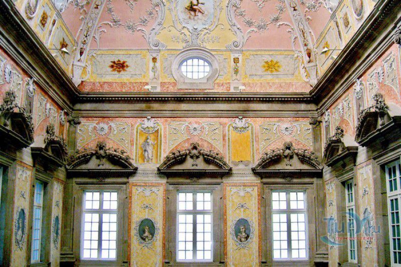 Епископский Дворец расположен в центре города Порту, на вершине холма Pena Ventosa, рядом с Кафедральным собором Порту. Дворец Епископов является одним из старейших архитектурных памятников города, в 1996 году в составе исторического центра Порту внесен в список Всемирного наследия ЮНЕСКО. Оригинальное здание дворца было построено в XII или XIII веке. Известно, что в 1387 году во дворце, после венчания в Кафедральном соборе Порту, праздновали свадьбу португальского короля Жуана I и английской принцессы Филиппы Ланкастерской, в 1560 году в Епископском дворце останавливался глава ордена Иезуитов Франсиско Борджа. В XVI-XVII веках дворец был значительно расширен, на рисунках того времени видно, что он состоял из нескольких зданий с башнями. Нынешний свой вид дворец приобрёл в XVIII столетии. Епископат Порту принял решение о перестройке дворца, проект нового здания в стиле барокко был заказан известному итальянскому архитектору Никколо Назони. Строительные работы были начаты в 1737 году, однако, из-за финансовых затруднений продвигались очень медленно, первоначальный проект дворца были вынуждены значительно сократить. Строительство было завершено лишь к концу XVIII века под руководством епископа Порту Рафаэля де Мендонса, герб которого расположен на балконе главного портала дворца, а также изображён на парадной лестнице внутри здания. Здание имеет прямоугольную форму, в центре дворца расположен внутренний двор. Главный фасад имеет два ряда окон (по 12 в каждом), украшенных овальными бордюрами и ламбрекенами в стиле рококо, окна второго этажа оформлены французскими балконами из кованого железа. На фоне белоснежных стен эффектно выделяется центральный портал, выполненный из тёмного гранита. Интерьер дворца оформлен в стиле барокко и неоклассицизма. На первом этаже расположено большое фойе с монументальной парадной лестницей, делящейся на два лестничных пролёта. Стены и потолок фойе украшены фресками, медальонами и лепниной, лестница - декоративными перилами и статуями. Дневной свет проникает внутрь помещения через большой стеклянный купол на потолке. Во дворце расположены тронный зал, в котором проходили церемонии инаугурации епископов Порту, зал приёмов, зал суда, зеркальный зал, атриум, аудитория на 100 человек и часовня. Епископский Дворец служил резиденцией епископов Порту вплоть до конца XIX века, в 1916-1956 годах во нём размещался муниципалитет Порту, в настоящее время дворец принадлежит государству, здесь проходят официальные мероприятия и приёмы.
