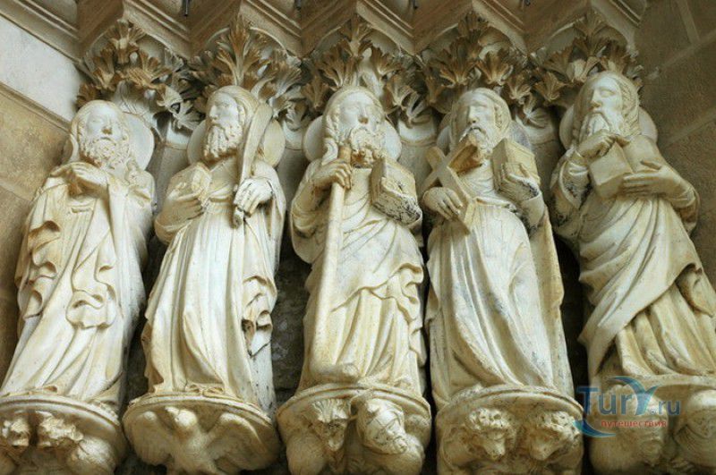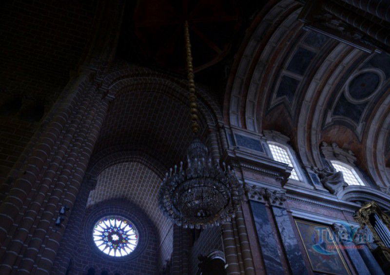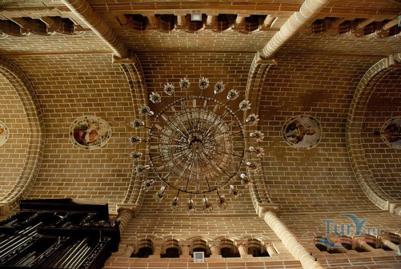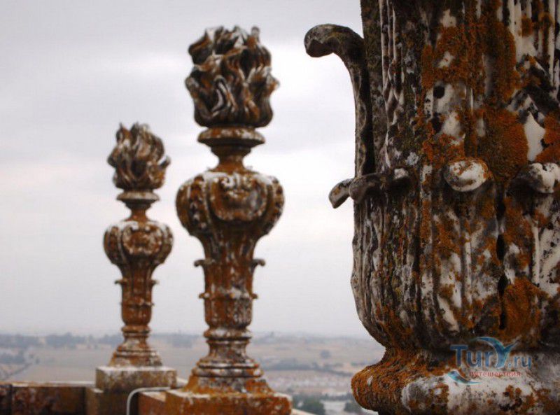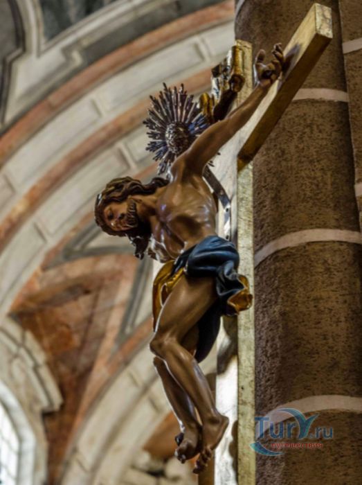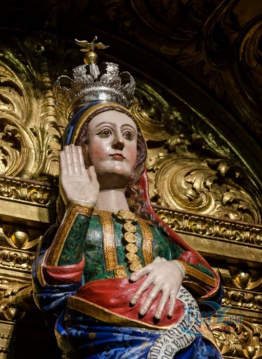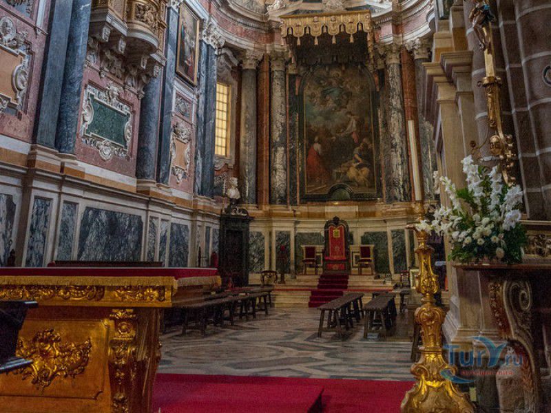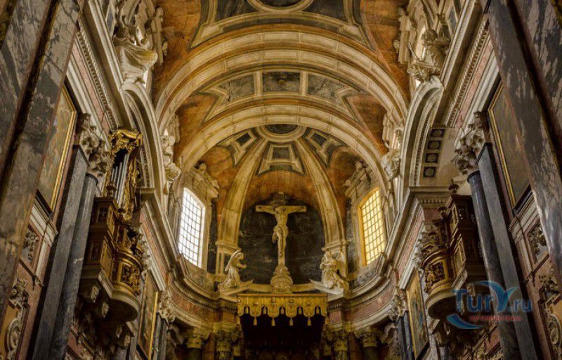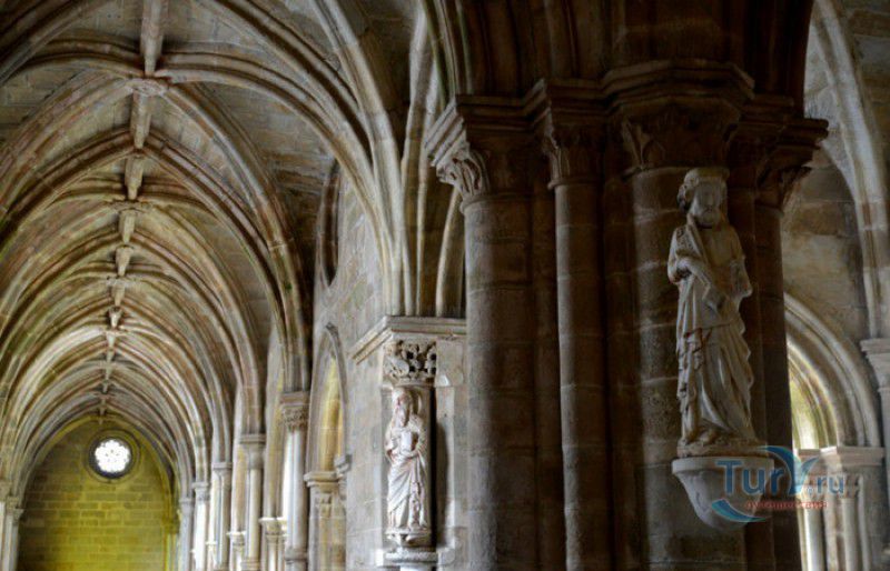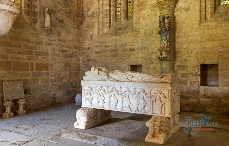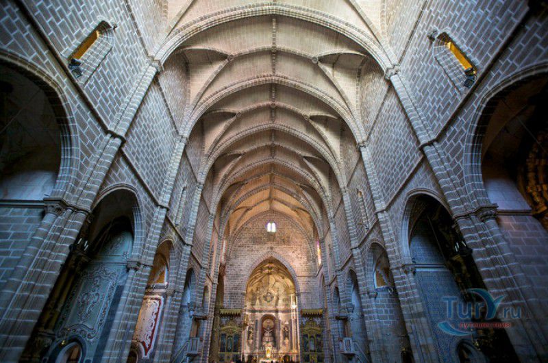 Кафедральный Собор Эворы (полное название - Кафедральная Базилика Успения Божией Матери) является крупнейшим средневековым собором Португалии и одной из главных достопримечательностей города Эвора. Собор расположен в центре города, в составе исторического центра Эворы в 1988 году он был внесен в список Всемирного наследия ЮНЕСКО. Строительство собора было начато в 1186 году и завершено лишь в 1250 году. В его архитектурном стиле прослеживается переход от романского стиля, в котором собор начал строиться, к готическому. Со временем небольшой по размерам храм превратился в величественный собор - в XIV веке был построен готический клуатр (крытая галерея с внутренним двориком), в XVI веке - часовня Божией Матери Милосердия в стиле мануэлино, в XVIII веке - главная часовня в стиле барокко. Собор Эворы построен из гранита, с обеих сторон центрального фасада расположены две массивные асимметричные башни, над притвором находится большое круглое окно, украшенное ажурной решёткой. Все башни собора увенчаны коническими шпилями в готическом стиле, наружные стены украшены зубцами и декоративным орнаментом. Особого внимания заслуживает Фонарная башня собора, её шпиль окружён шестью башенками, каждая из которых является уменьшенной копией самой башни. Центральный вход украшают статуи двенадцати апостолов, считающиеся шедевром португальской готической скульптуры. Интерьер собора состоит из трёх нефов, трансепта, апсиды с тремя приделами, небольшого баптистерия и нескольких часовен. В центральном нефе находится алтарь, созданный немецким архитектором Фридрихом Людвигом, по проекту которого был построен монастырь королевского дворца в Марфе. В центре алтаря, выполненного из розового, зелёного и белого мрамора, расположена статуя беременной Девы Марии. Главный алтарь собора выполнен итальянским мастером Антонио Беллини, автором распятия над алтарем является португальский скульптор Мануэль Диас. Крытая готическая галерея окружает красивый внутренний дворик с колодцем в центре. Стены галереи украшены стрельчатыми арками и круглыми окнами-розетками. По узкой винтовой лестнице можно подняться на открытую террасу на крыше, с которой открывается красивый вид на город и его окрестности. В здании бывшего колледжа, примыкающего к собору, размещается Музей сакрального искусства, который содержит большую коллекцию религиозных предметов, церковного облачения, произведений искусства и ювелирных украшений. Среди реликвий - статуя Девы Марии, которая раскрываясь, превращается в триптих, на котором изображены девять сцен из её жизни, статуя выполнена из слоновой кости и датируется XIII веком. В музее также хранятся скипетр короля-кардинала Энрике Португальского и серебряный реликварий Святого Креста, украшенный позолотой, эмалью и 1426 драгоценными камнями. Существует легенда, что перед отплытием в Индию в 1497 году Васко да Гама освятил в соборе Эворы флаги кораблей своей экспедиции.