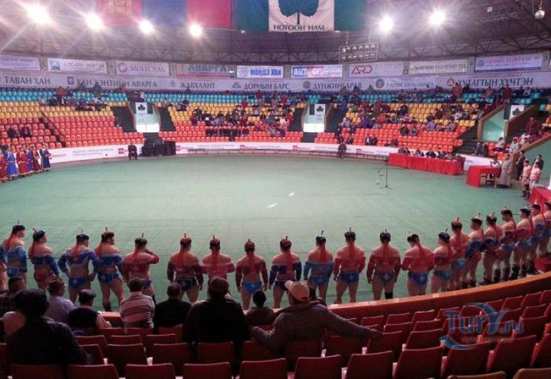 Дворец Монгольской Национальной Борьбы расположен в восточной части Улан-Батора, в районе Баянзурх, рядом с музеем Истории и Реконструкции Улан-Батора. Строительство Дворца для проведения национальных и международных чемпионатов по монгольской национальной борьбе, одному из самых популярных видов спорта в Монголии, велось с 1992 по 1998 год, средства на его строительство были собраны за счёт пожертвований жителей столицы. Здание круглой формы с куполообразной крышей своим внешним видом напоминает гигантскую юрту. Диаметр борцовской арены - 31 метр, зрительный зал способен вместить 2500 человек. На трибунах оборудованы места для комментаторов и прессы, во Дворце есть также зал для подготовки спортсменов к соревнованиям, раздевалки, 12 гостиничных номеров, кафетерий и сауна. Во Дворце проводятся чемпионаты не только по монгольской борьбе, но и соревнования по самбо, дзюдо, сумо, вольной борьбе, а также проходят концерты, развлекательные шоу, театральные постановки.