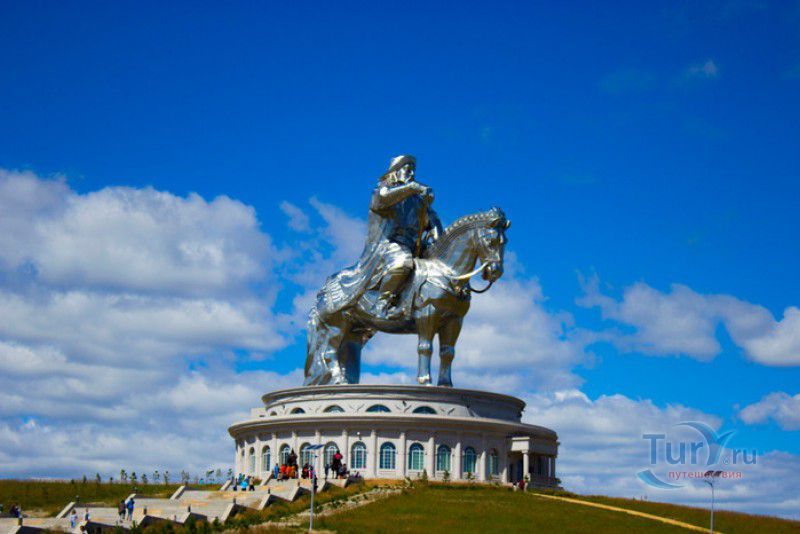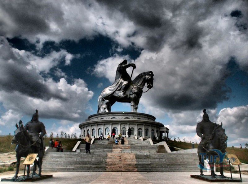 Туристический Комплекс Статуя Чингисхана - гигантский памятник создателю Монгольской империи и самая большая в мире конная статуя, расположен в 54 километрах к юго-востоку от Улан-Батора, в местности Цонжин-Болдог, на берегу реки Туул. Место для строительства монумента Чингисхану было выбрано не случайно - именно здесь, по преданию, в 1177 году юный Темуужин (будущий Чингисхан) нашёл на вершине холма золотой кнут (ташуур) - символ власти и удачи, даровавший хану могущество и непобедимость в бою. Монумент Чингисхану выполнен по проекту скульптора Эрдембилэга и архитектора Энхжаргала, на изготовление конной статуи ушло 250 тонн нержавеющей стали, а стоимость проекта составила более четырёх миллионов американских долларов. Торжественное открытие памятника состоялось в сентябре 2008 года, на церемонии присутствовал президент Монголии. Высота статуи - 40 метров, она установлена на постаменте высотой 10 метров и диаметром 30 метров. Сам постамент представляет из себя двухэтажное здание, окруженное 36 колоннами - по количеству великих ханов, правивших страной после Чингисхана. На тридцатиметровой высоте, в голове лошади, оборудована смотровая площадка, на которую можно подняться на лифте или по лестнице. С площадки открывается панорамный вид на бескрайние степи Монголии. Внутри постамента расположены рестораны, бильярдный зал, сувенирные магазины, художественная галерея, в которой выставлены картины монгольских живописцев, конференц-зал, музей Бронзового века империи гуннов и музей Великого Монгольского государства. Здесь также можно увидеть большую карту, на которой отмечены территории, завоеванные Чингисханом, двухметровый золотой кнут и огромный сапог монгольского воина. Вокруг статуи Чингисхана, на площади 212 гектаров, строится тематический парк Золотой кнут, в нём запланированы 6 тематических зон - лагерь воинов, лагерь ремесленников, стойбище шаманов, юрта хана, стойбище скотоводов и образовательный лагерь. Уже построены центральные ворота, территорию планируют обнести каменной стеной, в парке будут высажены 10000 деревьев, оборудованы кемпинг на 200 юрт, поле для гольфа, театр на открытом воздухе и бассейн.