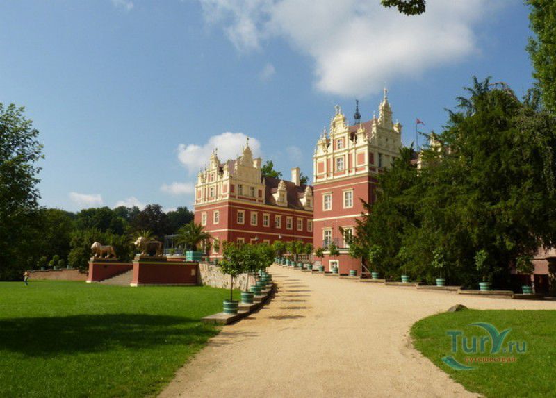 Парк Мускау - самый большой английский ландшафтный парк в Центральной Европе. Парк расположен на границе Германии и Польши, на берегах реки Нейсе, его общая площадь - 830 гектаров, примерно одна треть парка находится на территории Германии, в городе Бад-Мускау. Один из красивейших пейзажных парков мира был заложен в 1815 году немецким князем Германом фон Пюклером-Мускау - путешественником, писателем, "немецким Казановой" и гениальным ландшафтным архитектором. Во время своих многочисленных путешествий князь изучал сады и парки Западной Европы, интересовался новейшими тенденциями садово-паркового искусства. И всё ради своей заветной мечты - создать в своём родовом поместье Мускау парк, красивее которого не было бы в мире. Для реализации этой мечты нужны были деньги, и Герман фон Пюклер женится на дочери прусского канцлера Гарденберга - Люции Гарденберг. Получив за невестой большое приданое, князь приступил к созданию парка. Пюклер скупил близлежащие земельные участки, пригласил для работы над созданием парка известных садоводов Якоба Генриха Редера и Эдуарда Петцольда, а также выдающегося немецкого архитектора Карла Фридриха Шинкеля. Вдохновлённый идеями английских ландшафтных архитекторов князь Герман фон Пюклером-Мускау не просто копировал их идеи, а разработал свой собственный стиль, в который собрал всё лучшее из увиденного им во время странствий. Уже к 1820 году в Мускау были высажены первые 800 000 деревьев (дубов, буков, тополей и платанов) и 42 000 кустарников, изменено русло реки Нейсе и осушены пойменные луга. Целая армия работников сажала деревья, разбивала цветники, прокладывала тропинки и аллеи, создавала луга и живописные озёра. Отдельные парковые ареалы, по-разному спланированные и структурированные, Пюклер соединил между собой посредством зрительных осей, перспектив и прихотливо петляющих дорожек. На правом берегу реки раскинулись Дворцовый, Курортный и Горный парки, на левом - Террасный и Верхний парки, дендрарий и Браунсдорфские поля. В число архитектурных шедевров парка входят Новый замок в стиле неоренессанс, Старый замок в стиле барокко, тропический павильон, кавалерский корпус, купальни, оранжерея, а также Английский мост ‒ старинный пешеходный мостик через реку Лаузицер-Найсе. В центре парка возвышается великолепный Новый замок, вокруг которого создано "Пространство для развлечений" (Vergnügungsplatz) - зона для отдыха и прогулок с цветочными садами, большим розарием и крытой галереей. Северная часть Дворцового парка незаметно переходит в Горный парк, склоны которого засажены лиственными и хвойными деревьями. Здесь были созданы искусственные ущелья, скалы и водопады. От Дворцового парка по аллее, проложенной вдоль берега реки Найсе, можно попасть в Курортный парк. После Второй мировой войны эта часть парка долго находилась в запустении - лечебница, располагавшаяся здесь, была полностью разрушена во время ожесточённых боёв. Позже лечебница была переведена в Кавалерский дом в Дворцовом парке, а Курортный парк словно погрузился в глубокий сон. Жизнь снова вернулась сюда после строительства на территории Курортного парка в 1956 году большой сцены под открытым небом. Необычайно живописны Террасный и Верхний парки, расположенные на левом берегу Нейсе. Террасный парк, в соответствии со своим названием, расположен на 