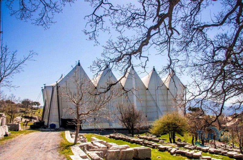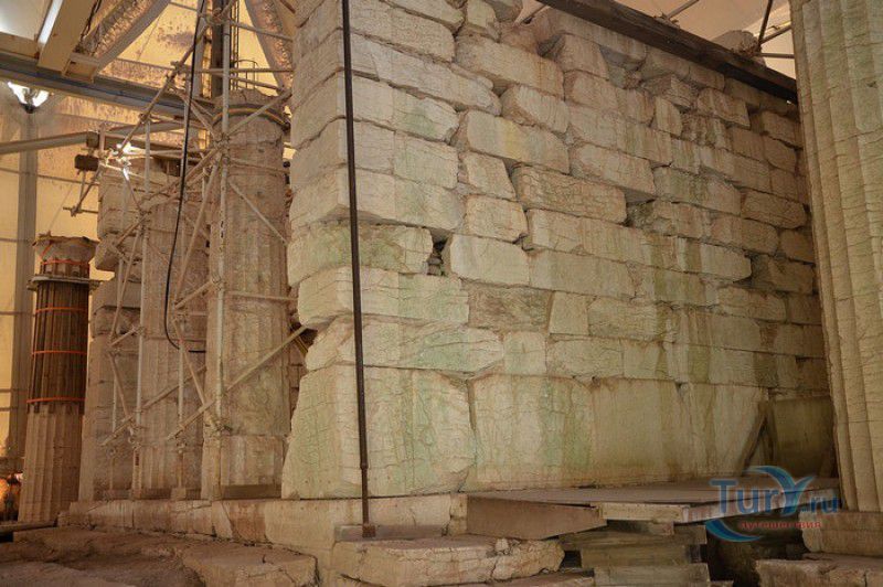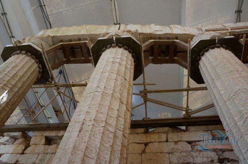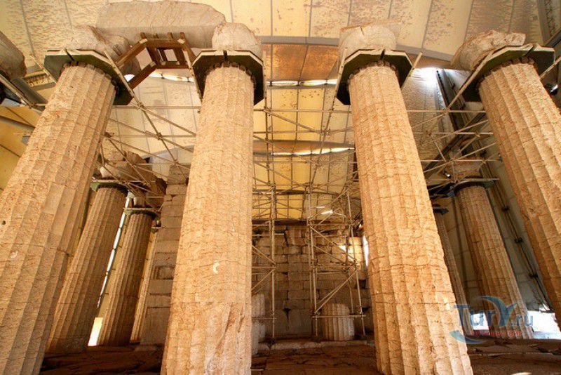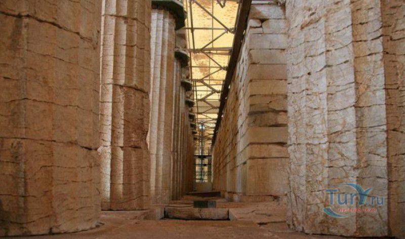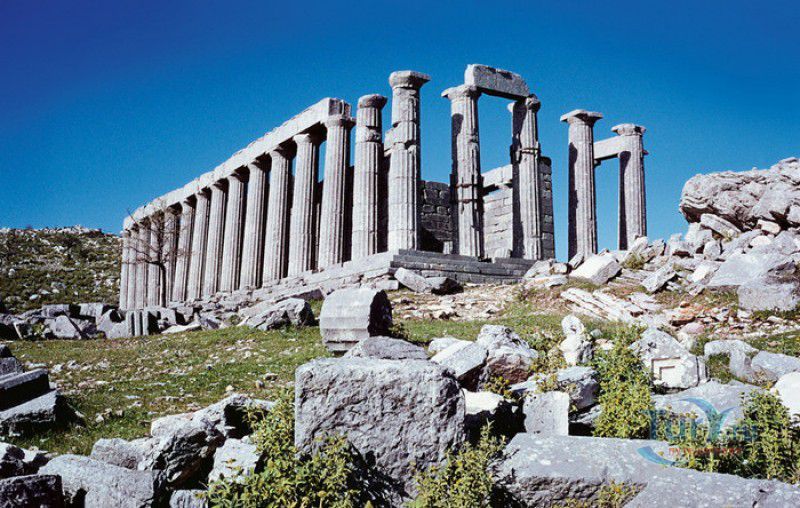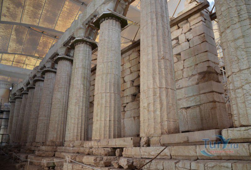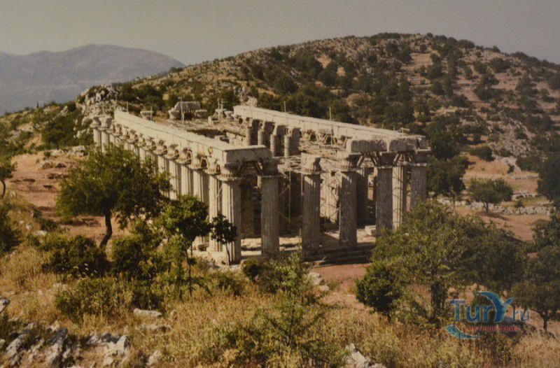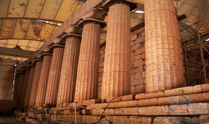 Храм Аполлона Эпикурейского в Бассах - один из самых больших и наиболее хорошо сохранившихся храмов Древней Греции, расположен на полуострове Пелопоннес, в 14 километрах к северо-востоку от города Фигалия, на западном склоне горы Котилион, на высоте 1130 метров над уровнем моря. По одной из легенд, храм был посвящён жителями Фигалии богу-спасителю Аполлону Эпикурейскому в знак благодарности за спасение города от эпидемии чумы, свирепствовавшей во время Пелопоннеской войны. Храм Аполлона Эпикурейского был построен в 420-400 годах до нашей эры древнегреческим архитектором Иктином - создателем знаменитого Парфенона и храма Гефеста в Афинах. Храм построен из местного серого известняка, элементы декора и скульптурный фриз выполнены из мрамора. Здание ориентировано с востока на запад, в плане сооружение имеет форму прямоугольника (периптера), окружённого строгой дорической колоннадой - по 15 колонн вдоль каждой из длинных сторон здания и по 6 колонн вдоль каждой из коротких сторон. Храм традиционно состоит из трёх помещений - пронаоса (передней части), наоса (центральной части) и опистодомоса (задней части). Храм Аполлона Эпикурейского в Бассах - единственный из античных храмов, который гармонично сочетает в себе три классических архитектурных ордера - дорический, ионический и коринфский. Внешние элементы храма созданы в строгом соответствии с дорическим ордером. Скульптурные композиции и архитектурный орнамент интерьера демонстрируют изящество и красоту, свойственные ионическому ордеру, а капитель центральной коринфской колонны храма является самым древним из сохранившихся до наших дней образцов коринфского ордера. Главным украшением храма являлся монументальный фриз, предположительно, выполненный древнегреческим скульптором Пеонием - автором знаменитой статуи Ники в Олимпии. Фриз длиной 31 метр состоял из двадцати трёх мраморных плит, на двенадцати из которых были изображены сцены сражений греков с амазонками, на остальных одиннадцати - битва лапифов с кентаврами. Фриз был обнаружен в 1812 году английскими археологами, а в 1815 году продан в Британский музей, где и хранится с тех пор. Храм Аполлона в Бассах был действующим храмом на протяжении эллинистического и римского периодов, затем, из-за удалённости от главных греческих городов, о храме забыли на долгое время, благодаря чему он так хорошо сохранился до наших дней. Руины античного храма были случайно обнаружены французским архитектором Жоакимом Бошером в 1765 году, первые археологические раскопки на этом месте были проведены в 1812 году группой английских археологов, в 1836 году здесь работала экспедиция русских археологов, в составе которой был и выдающийся русский живописец Карл Брюллов. В 1902 году раскопки были продолжены Археологическим обществом Афин, в 1975 году специально созданным Комитетом по сохранению Храма Аполлона Эпикурейского были инициированы работы по сохранению и восстановлению храма. В 1987 году отреставрированные руины храма, во избежание неблагоприятного воздействия на них атмосферных осадков, были накрыты огромным тентом. В 1986 году Храм Аполлона Эпикурейского в Бассах, первым из исторических и архитектурных памятников Греции, был внесен в список Всемирного наследия ЮНЕСКО.