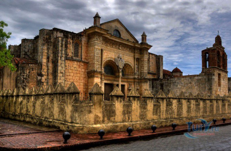 Кафедральный Собор Санто-Доминго имеет несколько названий - Собор Санта-Мария-ла-Менор, Базилика Богоматери Благовещения, но чаще всего его называют Собором Америки. Старейший католический храм в Америке расположен в столице Доминиканской Республики, городе Санто-Доминго, в его исторической части - Колониальной зоне, в составе которой в 1990 году внесен в список Всемирного наследия ЮНЕСКО. Строительство собора в Санто-Доминго было начато в 1512 году и завершено в 1540 году, после окончания работ колокольня собора так и осталась недостроенной. Освящение храма в честь Пресвятой Девы Марии состоялось в 1541 году, а в 1546 году папа Павел III присвоил храму статус Кафедрального собора. Автором проекта Собора Америки является севильский архитектор Алонсо Родригес, в архитектурном стиле здания зодчий гармонично объединил готику, барокко и платереско (архитектурный стиль, называемый испанским Возрождением). В качестве строительного материала был использован золотистый коралловый известняк. Для здания характерны массивные толстые стены и абсолютно отличающиеся друг от друга по стилю фасады - праздничный центральный фасад с порталом, богато украшенным ажурной резьбой и статуями святых, и готический северный фасад, напоминающий неприступную средневековую крепость. В интерьере храма строгие готические своды соседствуют с "ювелирным" платереско, который особенно ярко выражен в отделке великолепного серебряного алтаря. Изначально собор был построен в виде трёхнефной базилики со ступицей и тремя проходами. В Соборе Америки есть сокровищница, в которой хранятся старинные иконы, запрестольные образы, полихромные деревянные статуи XVI века, ювелирные изделия, серебряные чаши и антикварная мебель. Со временем в храме появились 14 часовен - семь в южном проходе и семь - в северном, в них расположены могилы нескольких епископов и вице-королей Новой Испании. С 1540 года по 1877 год в Кафедральном соборе Санто-Доминго, рядом с главным алтарём, был погребён прах Христофора Колумба. Христофор Колумб умер в 1506 году и был похоронен в Севилье, но позже испанский король Карл V решил исполнить предсмертное желание великого мореплавателя и перенести его прах в Вест-Индию. В 1540 году останки Колумба были перевезены на остров Эспаньола (ныне Гаити) и похоронены в Соборе Санто-Доминго. На рубеже XVIII и XIX веков часть Эспаньолы перешла к французам, и прах Колумба был перевезен на Кубу, где и был погребён в Кафедральном соборе Гаваны. В 1898 году останки первооткрывателя Америки снова вернули в Санто-Доминго, а затем - в Севилью. В конце XIX века, во время реставрации Собора Америки, был обнаружен свинцовый гроб, на котором было написано: ""Муж достославный и выдающийся, дон Кристобаль Колон". В гробу оказались кости, по-видимому, Христофора Колумба. Останки похоронили в соборе Санто-Доминго, после чего между Севильей и Санто-Доминго возник спор за право считаться местом, где покоится великий мореплаватель. В 2002-2006 годах прах из севильской могилы изучала группа генетиков и антропологов во главе с профессором судебной медицины Гранадского университета Хосе Антонио Лоренте. Согласно опубликованным данным генетической экспертизы, ДНК останков из могилы в Кафедральном соборе Севильи имеют "абсолютное сходство" с ДНК праха Диего Колумба, родного брата Христофора Колумба, похор