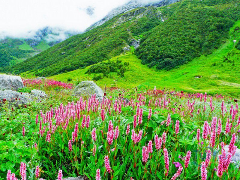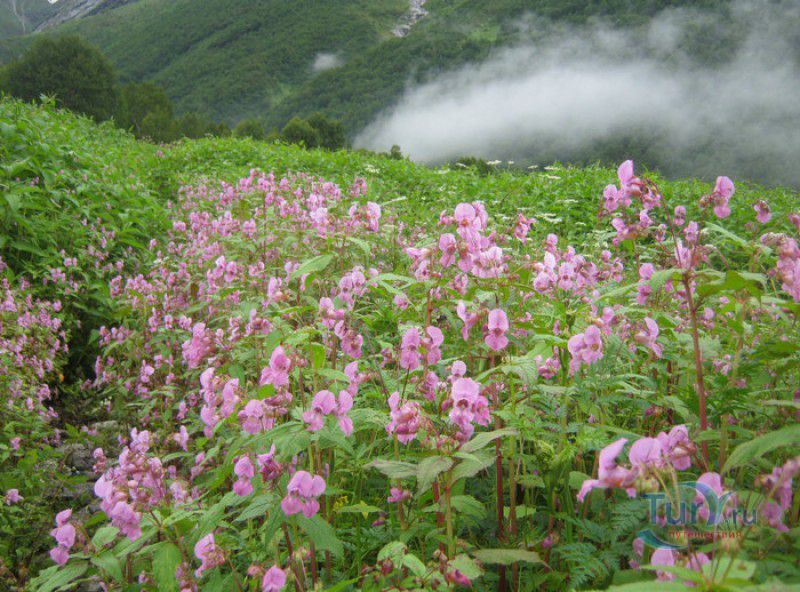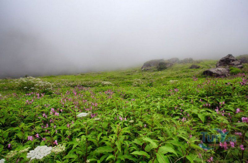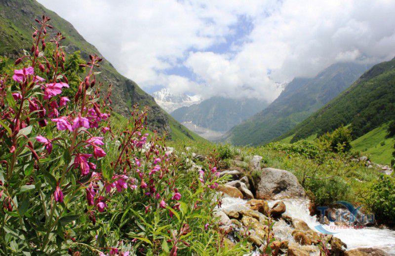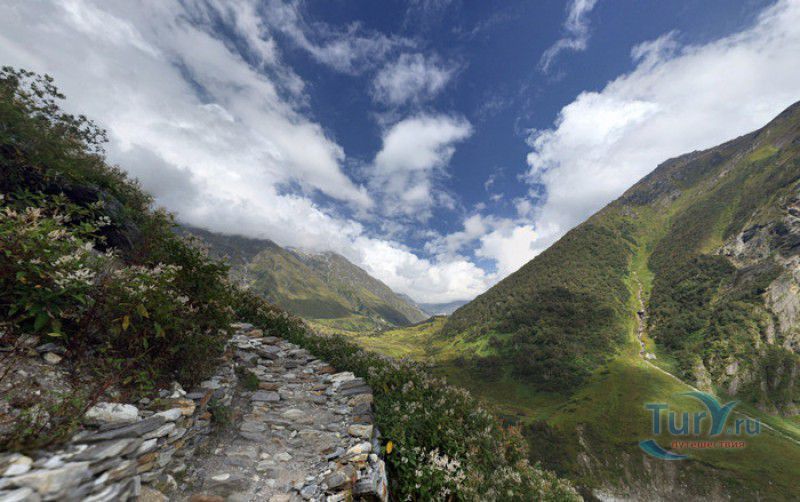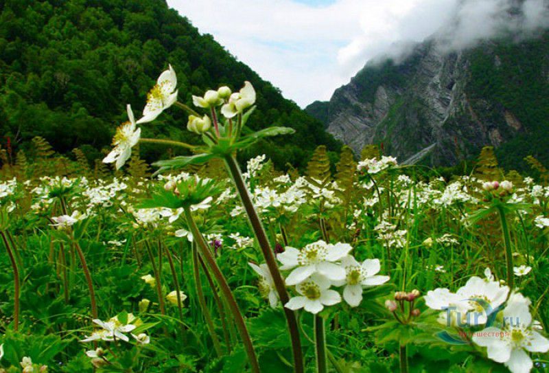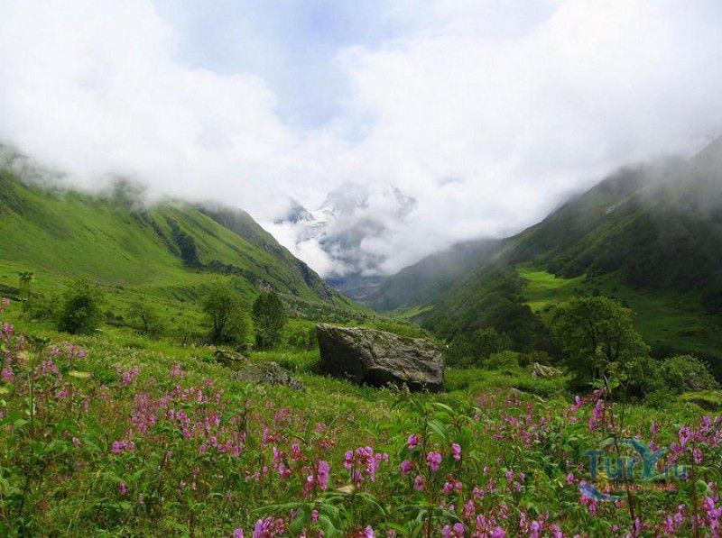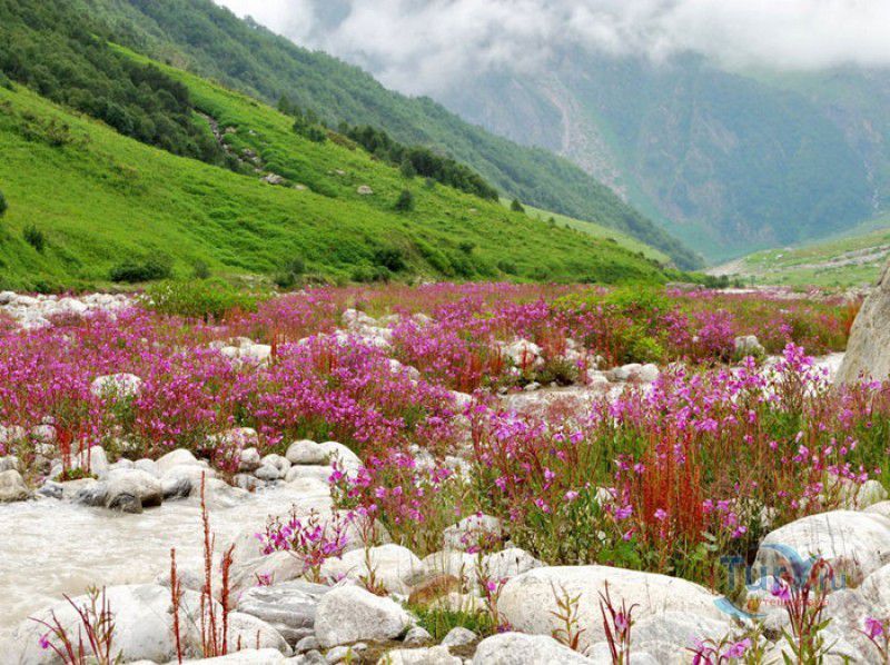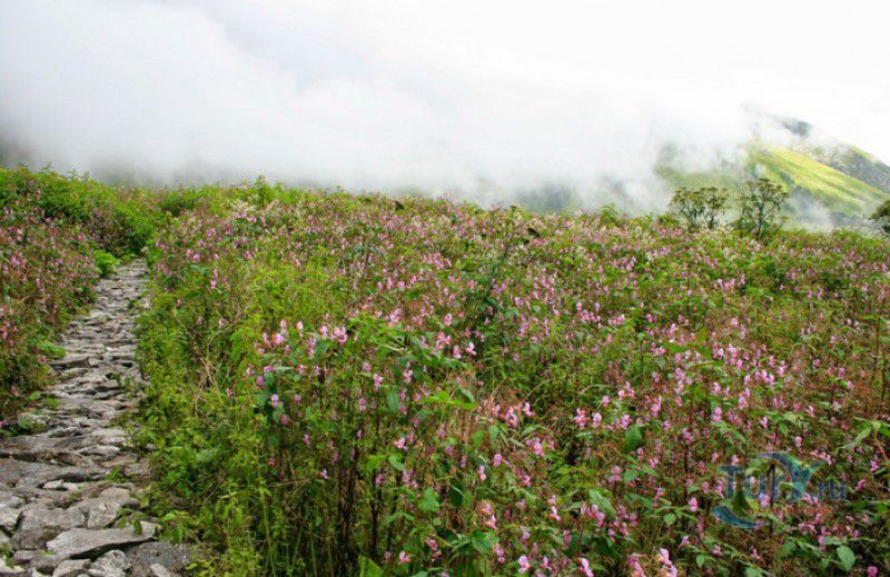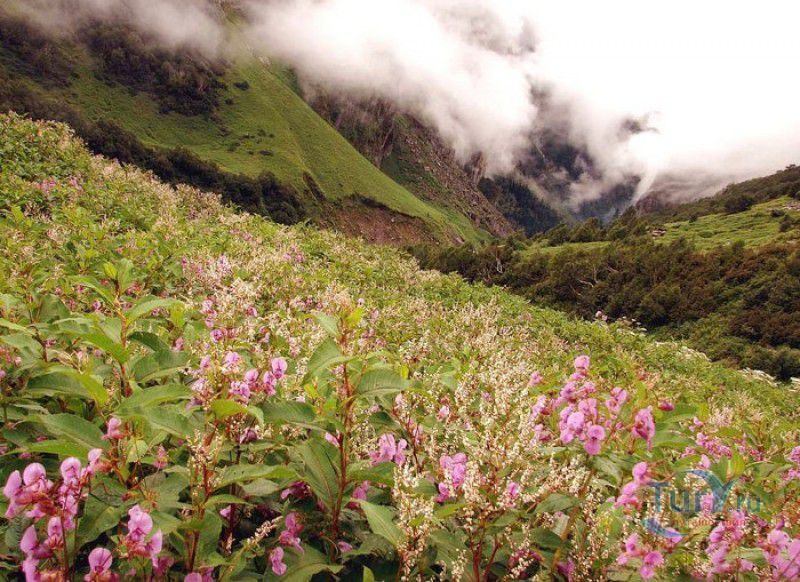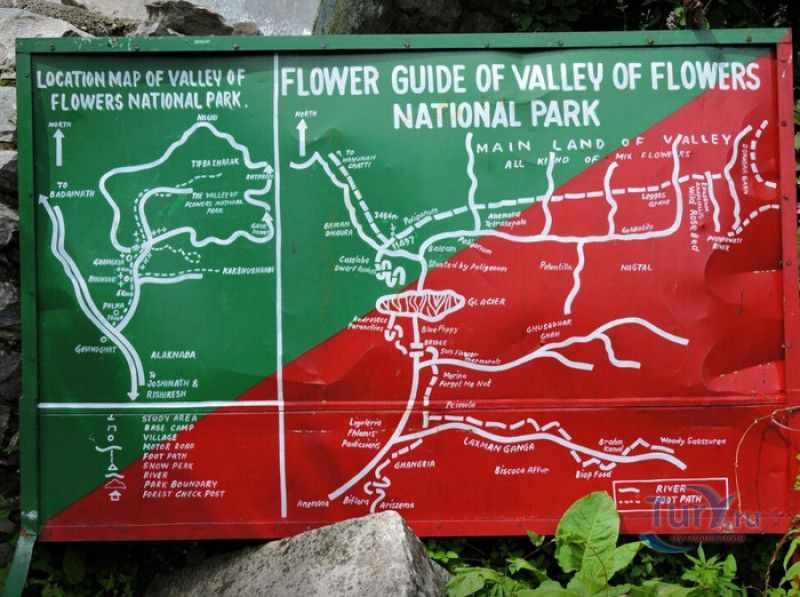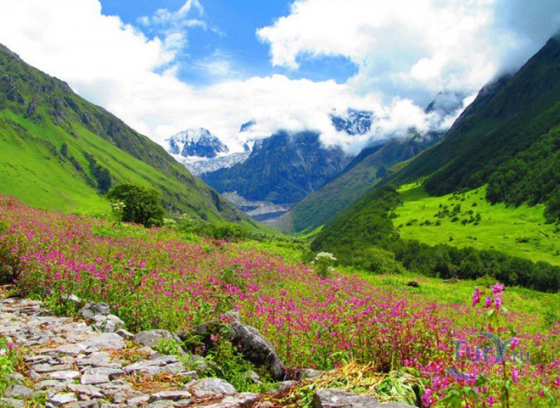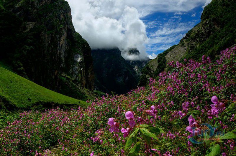 Национальный Парк Долина Цветов расположен на севере Индии, в Западных Гималаях, в штате Уттаракханд, в районе Чамоли. Знаменитая на весь мир высокогорная Долина Цветов была обнаружена в 1931 году группой британских альпинистов во главе с Фрэнком Смайтом во время восхождения на вершину горы Камет. В пути группу настиг сильный циклон, и в поисках места, где можно было бы укрыться от непогоды, альпинисты случайно обнаружили долину "сказочной красоты", в которой "невозможно было сделать ни одного шага, чтобы не наступить на цветок". Поражённый увиденным, Фрэнк Смайт задержался в долине на шесть недель, а возвратившись в Англию, написал книгу "Долина Цветов" (Valley of Flowers). С целью сохранения первозданной красоты, уникальных экосистем и биоразнообразия этой местности, в 1982 году Долине Цветов был присвоен статус Национального парка Индии, в 2004 году она вошла в состав биосферного заповедника Нанда Деви, а в 2005 году была внесена в список Всемирного наследия ЮНЕСКО. Расположенная высоко в горах, на высоте 3658 метров над уровнем моря, в окружении заснеженных горных пиков, скалистых ущелий, горных ручьёв и водопадов, Долина Цветов большую часть года покрыта снегом, но с наступлением весны, она "просыпается" и в июле-августе покрывается огромным цветочным ковром, поражающим буйством красок и разнообразием оттенков. Здешние растения имеют очень короткий период вегетации - не успели одни растения отцвести, как на их месте тут же появляются новые, но уже совсем других цветов и оттенков, именно поэтому Долину Цветов часто называют "живой радугой". На территории парка площадью 87 квадратных километров произрастают более 600 видов субальпийских, альпийских и высокогорных растений, многие из которых являются эндемичными, редкими или находящимися на грани исчезновения видами. В Долине Цветов растут лилии, примулы, календула, ромашки, анемоны, маргаритки, орхидеи, гравилаты, морина длиннолистная, иван-чай, купена, гималайский колокольчик, калужница болотная, борец непальский, тюльпаны, рододендроны, голубой гималайский мак и многие другие. Животный мир Долины Цветов представлен редкими и находящимися под угрозой исчезновения видами - здесь обитают 13 видов млекопитающих (снежный барс, гималайский медведь, гималайская кабарга, желтогрудая куница, гималайская ласка, голубой баран, гималайский тар), 114 видов птиц и множество видов бабочек. Тысячи туристов со всего мира приезжают в Долину Цветов в летние месяцы, чтобы своими глазами увидеть "живой" цветочный ковёр, созданный природой. Для посетителей парка разработан туристический маршрут, пройдя по которому можно в полной мере насладиться красотой одного из живописнейших мест на Земле. Посетители Долины Цветов не могут оставаться на ночь, разбивать лагерь и передвигаться по парку на транспортном средстве, покинуть территорию парка необходимо до наступления темноты. Ближайшее к Долине Цветов жильё и кемпинги находятся в деревне Гангария расположенной в 4-х километрах от парка. Здесь же находится и пропускной пункт Департамента лесного хозяйства, в котором перед посещением парка необходимо получить разрешение на посещение парка и оплатить вступительный взнос. От деревни Гангария начинается пешеходный маршрут по Долине Цветов.