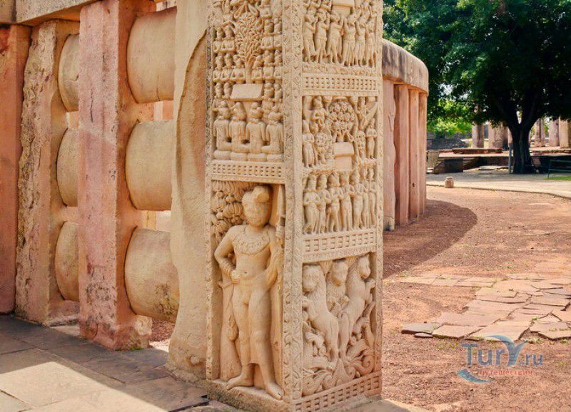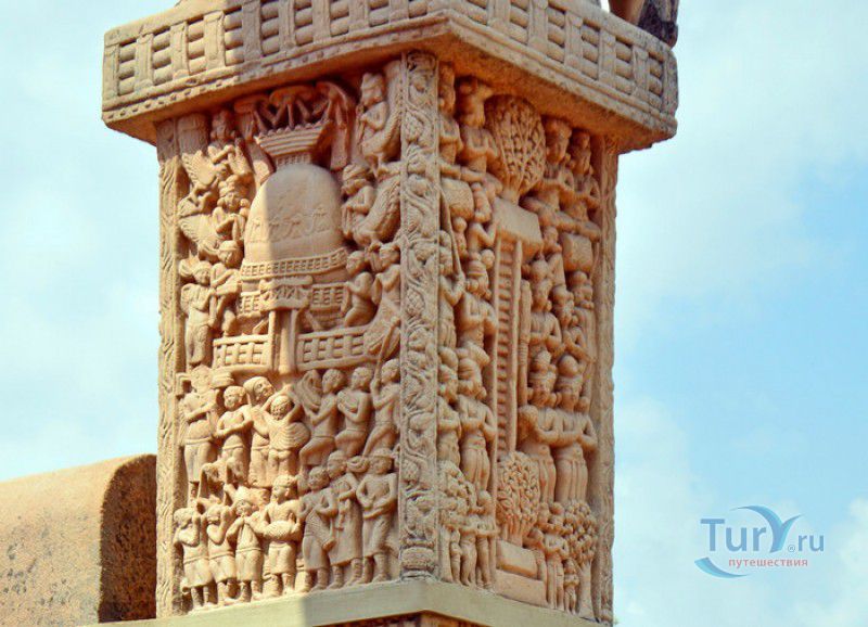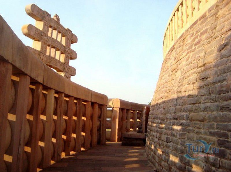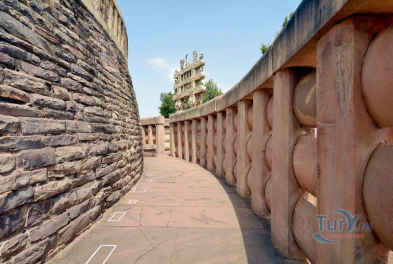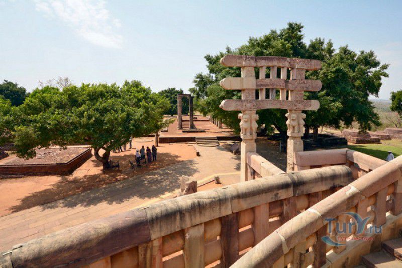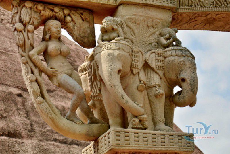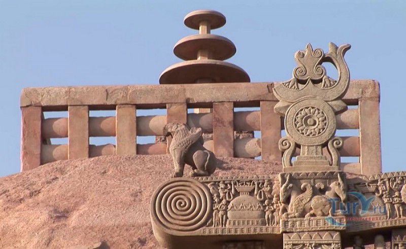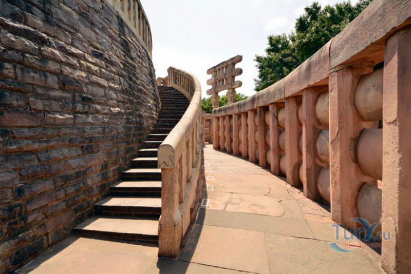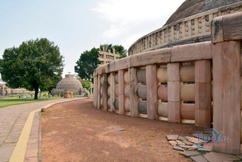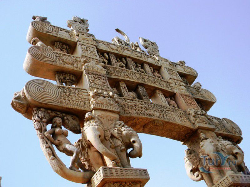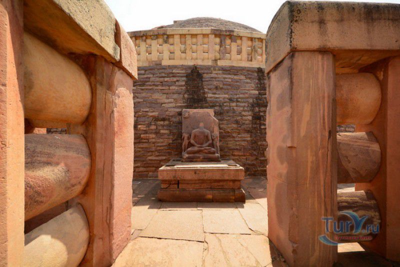 Великая Ступа в Санчи расположена в индийском штате Мадхья-Прадеш, в 45 километрах к северо-востоку от города Бхопал, в деревне Санчи, в которой до наших дней сохранился комплекс памятников ранней индийской буддистской архитектуры. Главной достопримечательностью Санчи является Великая ступа, которая считается старейшим каменным сооружением в Индии. Ступа была возведена в III веке до нашей эры по приказу императора Ашоки, при котором буддизм в Индии был признан государством религией. Ступа имеет полусферическую форму и символизирует священную гору Меру (в космологии буддизма - центр всех материальных и духовных вселенных). Высота Великой ступы - 16,5 метров, диаметр основания - 36,6 метров, она установлена на высоком цоколе и окружена большой террасой, служившей местом для проведения религиозных церемоний. С южной стороны на террасу можно подняться по каменной лестнице. Внутреннее помещение в Великой Ступе отсутствует, согласно преданию, в каменном "теле" ступы запечатаны мощи самого Будды. В середине II века до нашей эры Великая ступа была увеличена, полусферу увенчала дарохранительница с каменным шпилем и нанизанными на него тремя зонтиками, символизирующими ступени восхождения к вершине неба. В I веке до нашей эры, во время правления династии Сатаваханов, вокруг ступы была возведена каменная ограда с четырьмя парадными воротами (торанами), ориентированными по сторонам света. Каждые из ворот представляют собой две массивные квадратные колонны, перекрытые тремя каменными балками с вырезанными с обеих концов спиралями (по подобию священных буддийских свитков-сутр). Капители колонн выполнены в виде фигур четырёх слонов, львов или карликов-якш, поддерживающих поперечные балки. Вся поверхность ворот покрыта ажурной каменной резьбой, письменами и рельефами, промежутки между балками и верхняя часть ворот украшены скульптурами. Через ворота в святилище входили торжественные процессии для совершения священного обряда. Санчи продолжал оставаться крупным буддистским религиозным центром вплоть до XII века, вокруг Великой ступы были построены храмы, монастыри и несколько ступ меньших размеров. После утверждения в Центральной Индии ислама, буддистские святыни, в том числе и Великая ступа в Санчи, постепенно приходили в упадок и разрушались. Заброшенная на протяжении столетий древнейшая в Индии ступа была обнаружена в 1818 году англичанами. В Санчи сразу же устремились толпы чёрных археологов и кладоискателей - то, что не удалось сделать времени, за короткое время сделали люди - буддистские памятники в Санчи были разграблены и сильно повреждены. Только в 1881 году здесь были начаты реставрационные работы, в 1912-1919 годах проведены полномасштабные восстановительные работы под руководством известного английского археолога сэра Джона Маршалла. В 1989 году Великая ступа, в составе памятников раннебуддисткой архитектуры в Санчи, была внесена в список Всемирного наследия ЮНЕСКО.