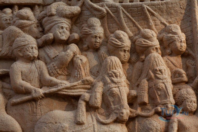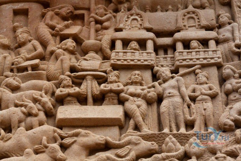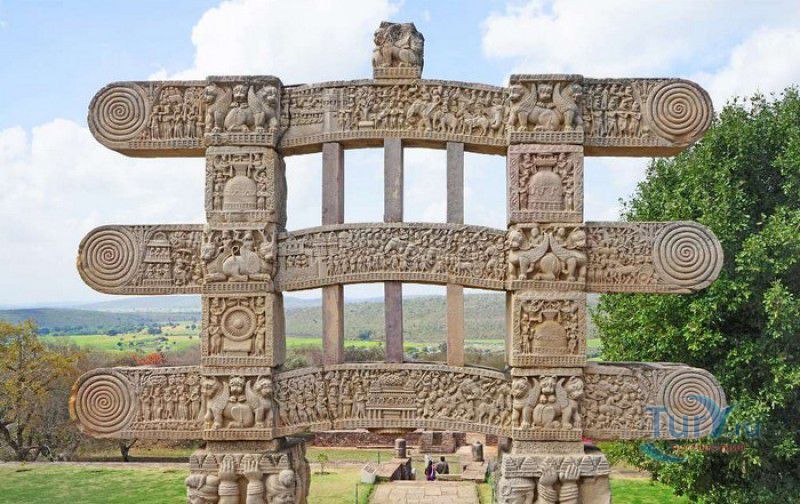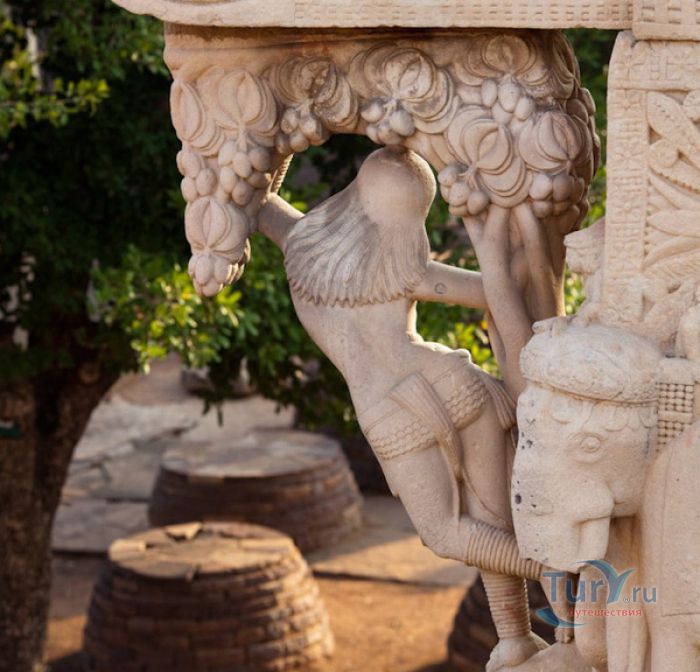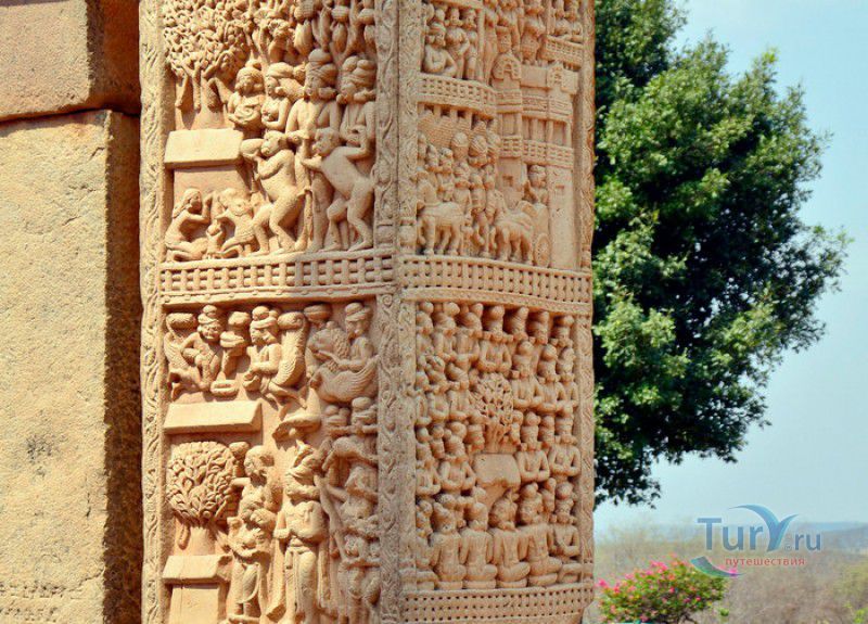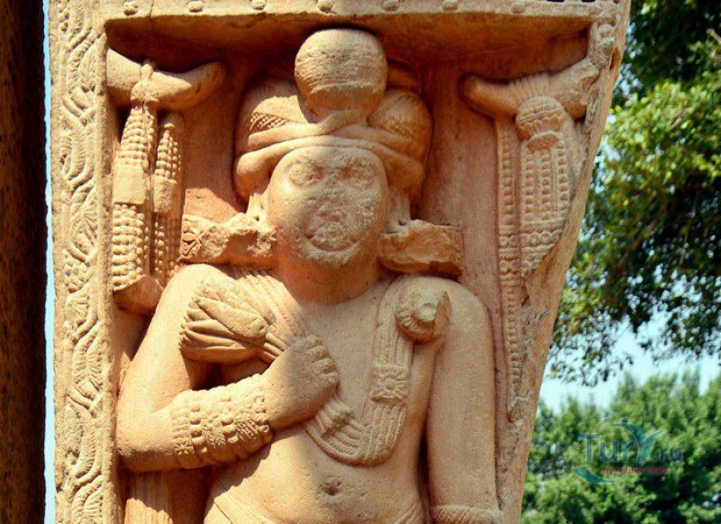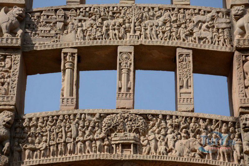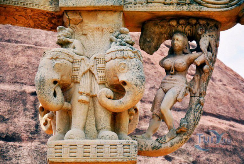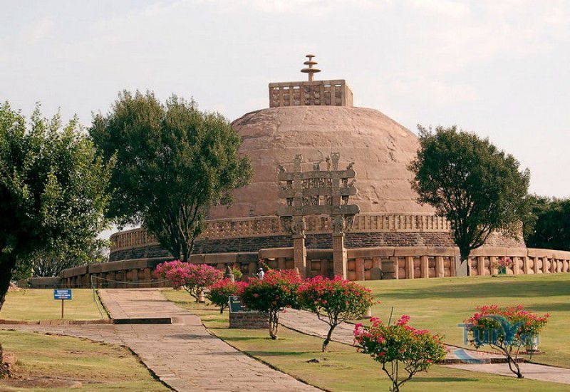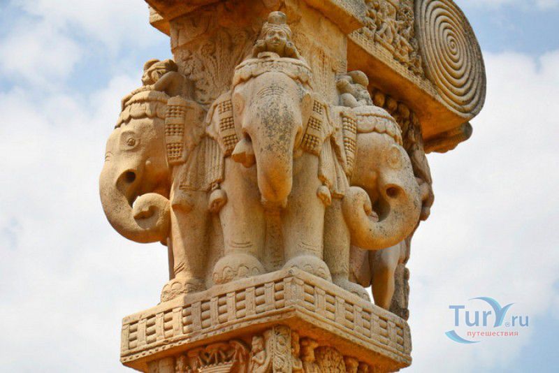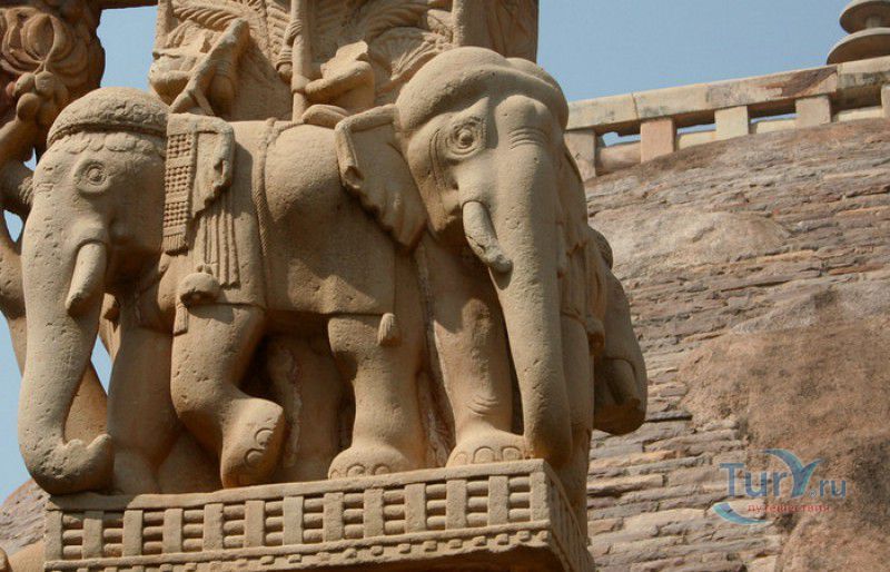 Великая Ступа в Санчи расположена в индийском штате Мадхья-Прадеш, в 45 километрах к северо-востоку от города Бхопал, в деревне Санчи, в которой до наших дней сохранился комплекс памятников ранней индийской буддистской архитектуры. Главной достопримечательностью Санчи является Великая ступа, которая считается старейшим каменным сооружением в Индии. Ступа была возведена в III веке до нашей эры по приказу императора Ашоки, при котором буддизм в Индии был признан государством религией. Ступа имеет полусферическую форму и символизирует священную гору Меру (в космологии буддизма - центр всех материальных и духовных вселенных). Высота Великой ступы - 16,5 метров, диаметр основания - 36,6 метров, она установлена на высоком цоколе и окружена большой террасой, служившей местом для проведения религиозных церемоний. С южной стороны на террасу можно подняться по каменной лестнице. Внутреннее помещение в Великой Ступе отсутствует, согласно преданию, в каменном "теле" ступы запечатаны мощи самого Будды. В середине II века до нашей эры Великая ступа была увеличена, полусферу увенчала дарохранительница с каменным шпилем и нанизанными на него тремя зонтиками, символизирующими ступени восхождения к вершине неба. В I веке до нашей эры, во время правления династии Сатаваханов, вокруг ступы была возведена каменная ограда с четырьмя парадными воротами (торанами), ориентированными по сторонам света. Каждые из ворот представляют собой две массивные квадратные колонны, перекрытые тремя каменными балками с вырезанными с обеих концов спиралями (по подобию священных буддийских свитков-сутр). Капители колонн выполнены в виде фигур четырёх слонов, львов или карликов-якш, поддерживающих поперечные балки. Вся поверхность ворот покрыта ажурной каменной резьбой, письменами и рельефами, промежутки между балками и верхняя часть ворот украшены скульптурами. Через ворота в святилище входили торжественные процессии для совершения священного обряда. Санчи продолжал оставаться крупным буддистским религиозным центром вплоть до XII века, вокруг Великой ступы были построены храмы, монастыри и несколько ступ меньших размеров. После утверждения в Центральной Индии ислама, буддистские святыни, в том числе и Великая ступа в Санчи, постепенно приходили в упадок и разрушались. Заброшенная на протяжении столетий древнейшая в Индии ступа была обнаружена в 1818 году англичанами. В Санчи сразу же устремились толпы чёрных археологов и кладоискателей - то, что не удалось сделать времени, за короткое время сделали люди - буддистские памятники в Санчи были разграблены и сильно повреждены. Только в 1881 году здесь были начаты реставрационные работы, в 1912-1919 годах проведены полномасштабные восстановительные работы под руководством известного английского археолога сэра Джона Маршалла. В 1989 году Великая ступа, в составе памятников раннебуддисткой архитектуры в Санчи, была внесена в список Всемирного наследия ЮНЕСКО.