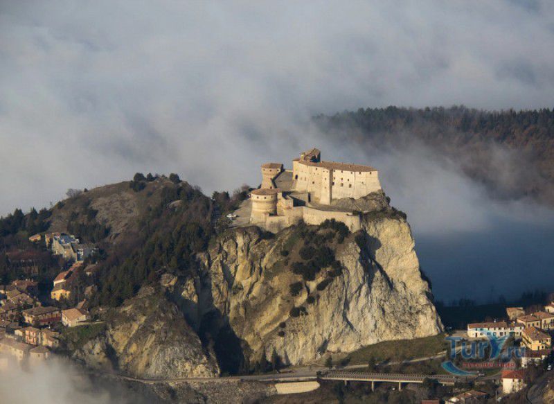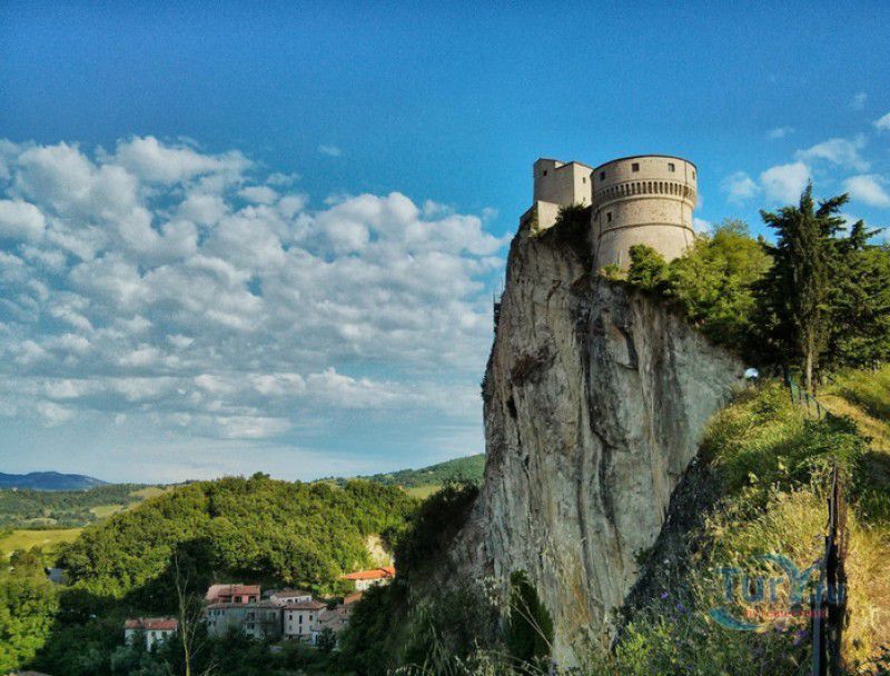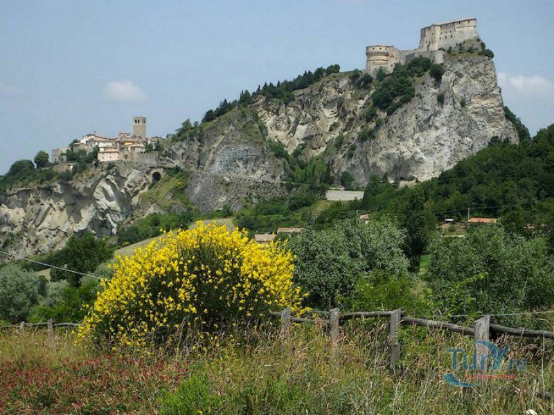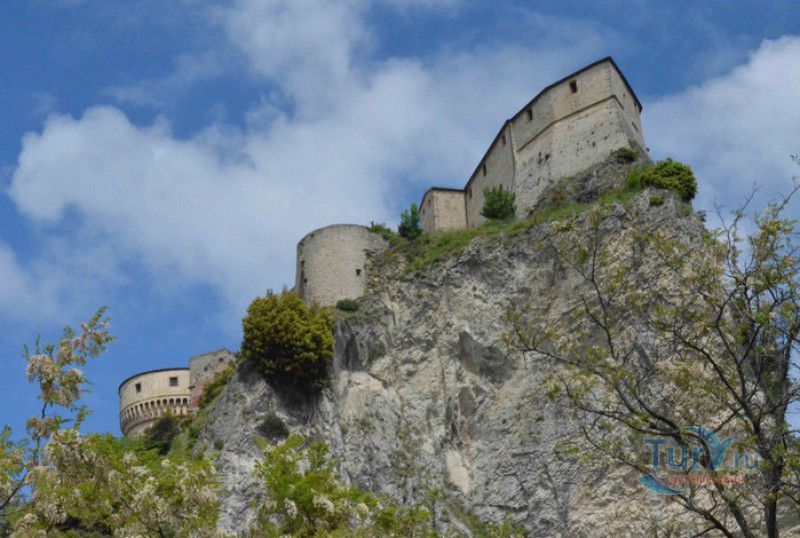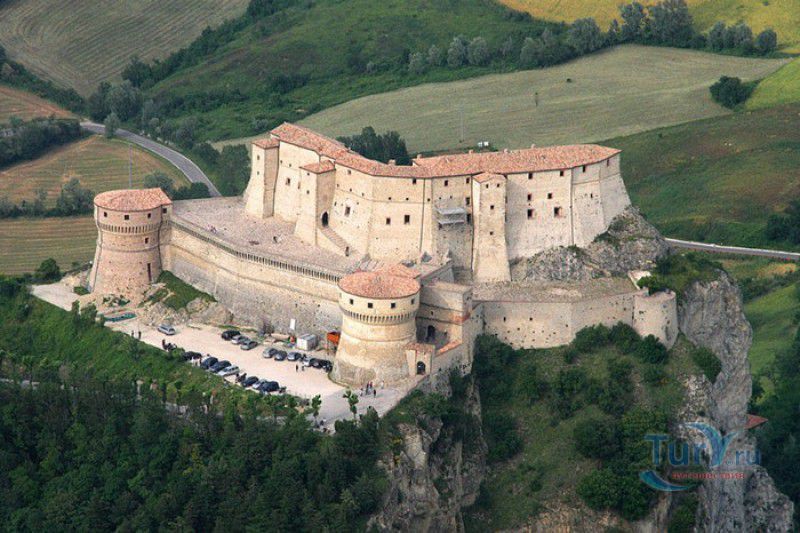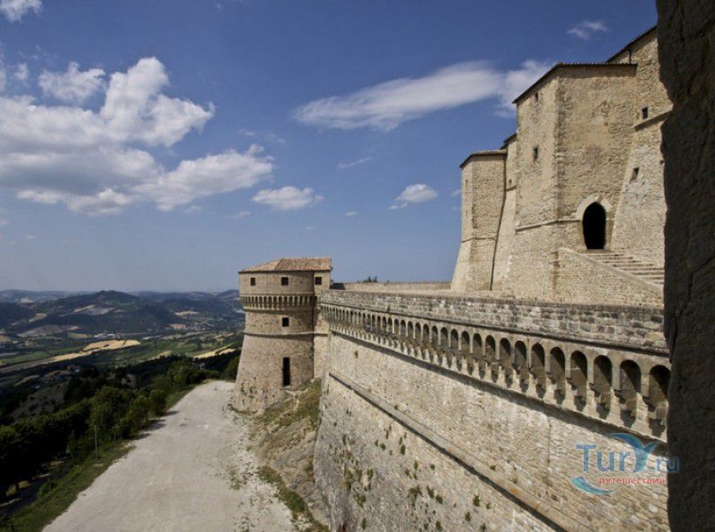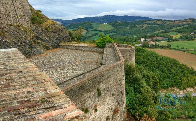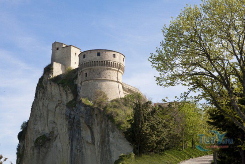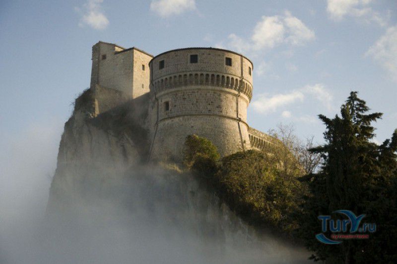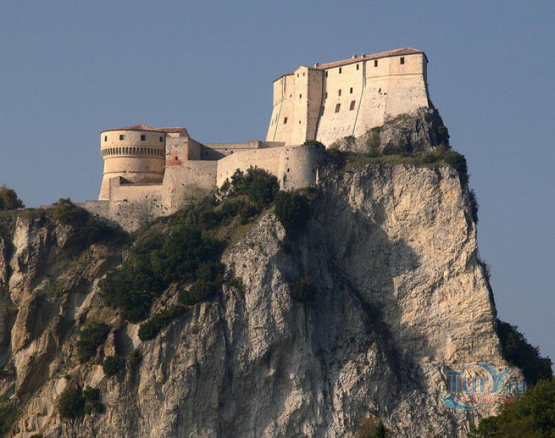 Крепость Сан-Лео расположена в Италии, в области Эмилия-Романья, в городке Сан-Лео, в 35 километрах к юго-западу от города Римини. Средневековая крепость расположена на вершине отвесной известняковой скалы, возвышающейся над долиной реки Марекья. Первые фортификационные сооружения здесь были построены ещё древними римлянам, на вершине горы также располагался античный храм, посвящённый Юпитеру. При римлянах поселение носило название Монтефельтро (от латинского Mons Feretrius), с приходом христианства город был переименован в честь Святого Льва - Сан-Лео. В Средние века крепость переходила из рук в руки, поочерёдно ею владели византийцы, готы, лангобарды и франки. В 961-963 годах, во время правления короля Беренгара II, город Сан-Лео на некоторое время стал столицей Италии, а крепость Сан-Лео была последним оплотом Беренгара II, укрывавшегося за её стенами от войск Оттона I Великого - будущего короля Италии. Со второй половины XI века по середину XV века городом и крепостью Сан-Лео владели графы Монтекопиоло, изменившие впоследствии своё родовое имя на Монтефельтро (по названию данной местности). В 1441 году, при Федерико да Монтефельтро, старый форт был перестроен в неприступную крепость по проекту архитектора Франческо ди Джорджио Мартини - вокруг квадратной башни-донжона были возведены круглые сторожевые башни, соединённые мощной оборонительной стеной, по всему периметру установлены артиллерийские батареи, способные вести перекрёстный огонь, а на подступах к замку оборудованы форпосты. В 1502 году Чезаре Борджиа удалось захватить крепость Сан-Лео, но уже в 1503 году замком снова стали владеть графы Монтефельтро. В 1516 году крепость Сан-Лео снова была захвачена, теперь уже флорентийскими войсками под предводительством Антонио Риказоли, а в 1631 году герцогство Урбино, на территории которого располагался город Сан-Лео, перешло под прямое правление Ватикана. С этого момента крепость Сан-Лео утратила своё военное значение и была превращена в тюрьму. Среди особо опасных врагов Ватикана, содержавшихся в казематах крепости, был и Джузеппе Бальзамо - знаменитый граф Алессандро Калиостро. Он был заточён в тюрьму в 1791 году, провёл в застенках крепости четыре года, где и скончался 26 августа 1795 года. Тюремщикам было предписано проявлять особую бдительность в отношении "великого мага, заклинателя духов, авантюриста и алхимика" - всё время своего заключения граф провёл в сырой камере-колодце с единственным небольшим отверстием в потолке. Где находится могила графа Калиостро и от чего он умер (по одной из версий, он был отравлен своими тюремщиками) до сих пор неизвестно. В качестве тюрьмы крепость Сан-Лео использовалась вплоть до 1906 года, в настоящее время в ней располагается музей, в залах которого представлено старинное и времён Второй мировой войны оружие, есть также выставка, посвящённая истории масонства и алхимии. Посетители имеют возможность прогуляться по казематам крепости, заглянуть в пыточную камеру с набором "инструментов" палачей и посетить камеру графа Калиостро, в которой почитатели великого авантюриста, верящие, что граф до сих пор жив, отставляют цветы и письма, адресованные знаменитому магу.