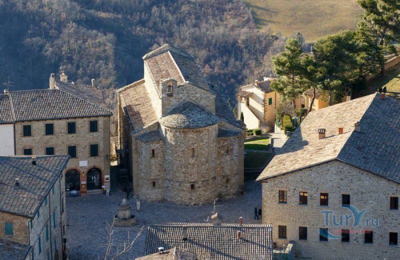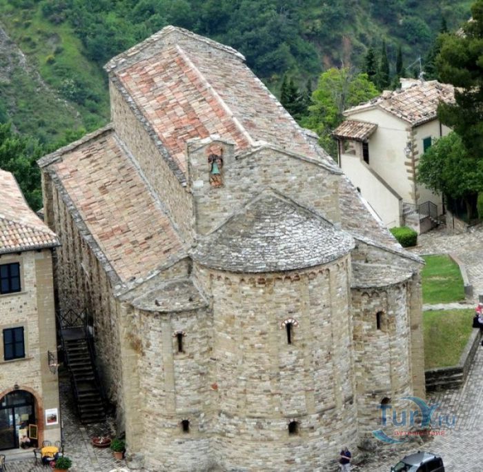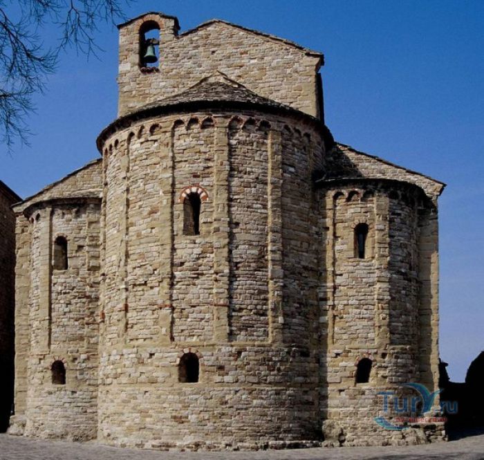 Приходская Церковь Вознесения Девы Марии - самая старая христианская церковь в городе Сан-Лео и во всём регионе Монтефельтро. Она расположена в историческом центре города, в нескольких шагах от Кафедрального собора Сан-Лео. Первая небольшая церковь была возведена на этом месте в III-IV веках, она представляла собой небольшую апсиду с двумя криптами, высеченными в скале. В IX веке, в эпоху Каролингов, церковь была значительно расширена, а в XI столетии перестроена в романском стиле. Приходская церковь Сан-Лео выполнена из тесаного камня из песчаника и известняка, здание имеет глухой центральный фасад с контрофорсами, вход в храм расположен со стороны бокового фасада. Здание церкви Вознесения Девы Марии представляет собой трёхнефную базилику с криптами и пресвитерием, возвышающимся над проходами. В пресвитерии установлен киворий, датируемый 882 годом - он был подарен церкви герцогом Орсо, о чём свидетельствует надпись: "В честь Господа, Бога нашего Иисуса Христа, и Святой Божией Матери, Пресявятой Девы Марии, я, герцог Орсо, грешник, заказал это произведение искусства. Я прошу всех вас, кто читает это, молиться за меня!". Внутреннее пространство церкви разделено массивными арками, опирающимися на чередующиеся квадратные колонны и столбы, украшенные коринфскими капителями. Эти столбы были найдены на развалинах античного храма, построенного в Монтефельтро ещё древними римлянами. Внутренние стены церкви были оштукатурены и богато украшены фресками, которые, к сожалению, до наших дней не сохранились. На протяжении столетий здание приходской церкви Сан-Лео несколько раз перестраивалось, в 1930-х годах были проведены реставрационные работы, в результате которых приходская церковь Вознесения Девы Марии в Сан-Лео приобрела тот вид, который она имела в XI веке.