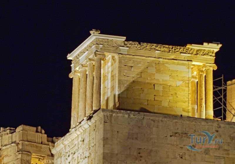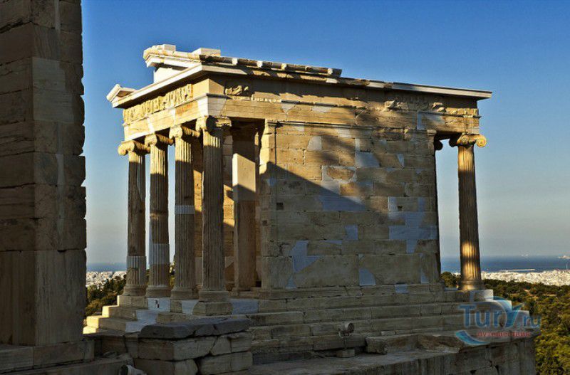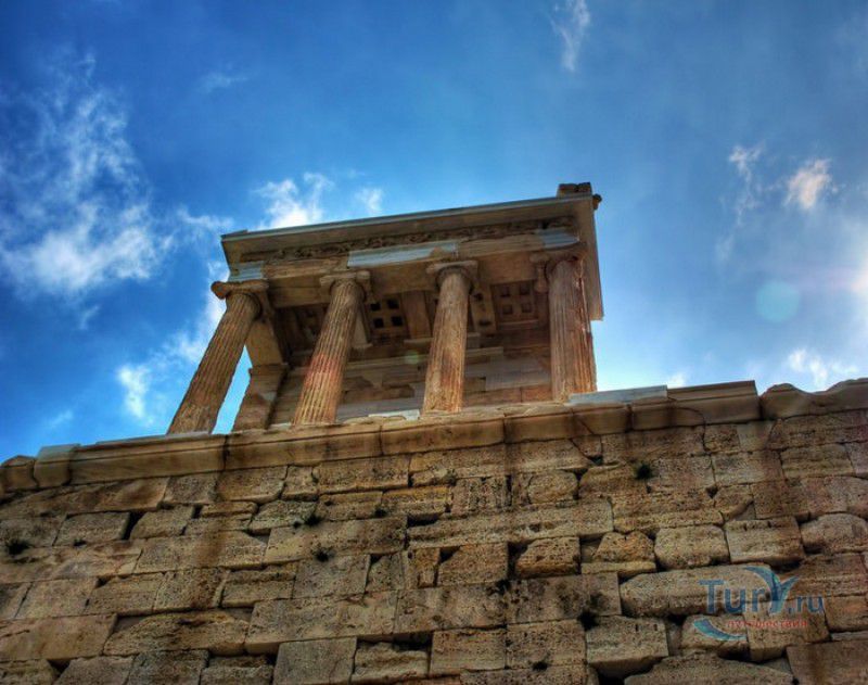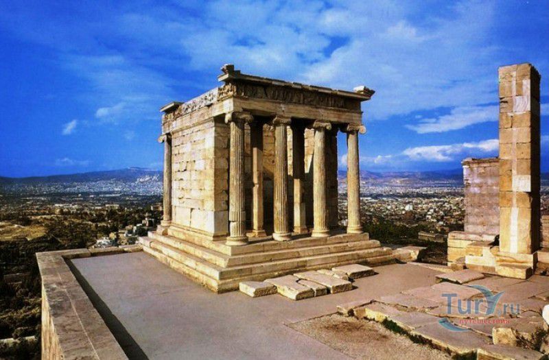 Храм Ники Аптерос расположен в юго-западной части Афинского Акрополя, справа от Пропилей - парадного входа в Акрополь. Храм Ники Аптерос - один из первых храмов на территории Акрополя, он был возведен на месте древнего святилища, построенного на отвесном плато скалистого холма ещё в микенскую эпоху. В VI веке до нашей эры на месте святилища возвели храм, посвящённый богине Афине, но в 480 году до нашей эры, во время вторжения в Элладу войск персидского царя Ксеркса, он был полностью разрушен. На его руинах в 426-421 годах до нашей эры, по проекту древнегреческого архитектора Калликрата, был построен новый храм в ионическом стиле. Сооружение представляет собой амфипростиль (здание с двумя фасадами), один фасад храма обращён к входу в Акрополь, второй "смотрит" на Парфенон. Каждый фасад украшен портиками с четырьмя колоннами ионического ордера. Само здание стоит на трёхступенчатом основании - стилобате. Фризы храма были украшены скульптурными рельефами с изображением олимпийских богов (Афины, Зевса, Посейдона) и сцен сражений между греками и персами. Уцелевшие фрагменты фриза можно увидеть в Музее Акрополя и Британском музее, на самом храме сейчас установлены их копии. Восточнее храма располагался алтарь, а вся храмовая площадка была окружена мраморным парапетом, на плитах которого были размещены барельефы с изображениями богини Ники, в том числе и знаменитый рельеф, на котором Ника изображена застёгивающей свои сандалии. Внутри храма была установлена статуя Афины, в одной руке богиня держала шлем, в другой - плод граната (символ победоносного мира). Столь необычное изображение Афины-Победительницы (обычно она была представлена в доспехах, со шлемом на голове, с копьём и знаменитой эгидой - щитом из козьей шкуры, на внешней стороне которого была размещена голова Горгоны Медузы) ввели в заблуждение древнегреческого писателя и географа Павсания, посетившего Афины во II веке и описавшем их в своём труде "Описание Эллады". Павсаний принял статую Афины за статую богини Ники - вестницы победы, крылатой спутницы Афины. Чтобы объяснить, почему Ника изображена без крыльев, Павсаний придумал красивую легенду о том, что афиняне специально просили скульптора изобразить Нику бескрылой, чтобы Победа никогда не смогла покинуть их город. С лёгкой руки Павсания за храмом закрепилось название храм Ники Аптерос (Ники Бескрылой), хотя на самом деле храм был посвящён Афине-Победительнице, покровительнице города Афины. Храм Ники Аптерос простоял более двух тысячелетий, в V веке в нём была размещена христианская церковь, а в 1686 году, во время оккупации Греции Османской империей, турки демонтировали храм, используя камни, из которых он был сложен, в качестве строительного материала для оборонительных сооружений, возводимых ими вокруг Акрополя. Храм Ники Аптерос был восстановлен в 1835 году, однако, работы были выполнены некачественно, и спустя 100 лет возникла угроза обрушения здания. Храм был разобран и на укреплённом фундаменте отстроен заново, при его восстановлении были использованы каменные блоки и фрагменты колонн, обнаруженные за прошедшее после первой реконструкции столетие. Последняя реставрация храма была проведена в начале XXI столетия. В 1987 году, в составе Акрополя, храм Ники Аптерос внесен в список Всемирного наследия ЮНЕСКО.