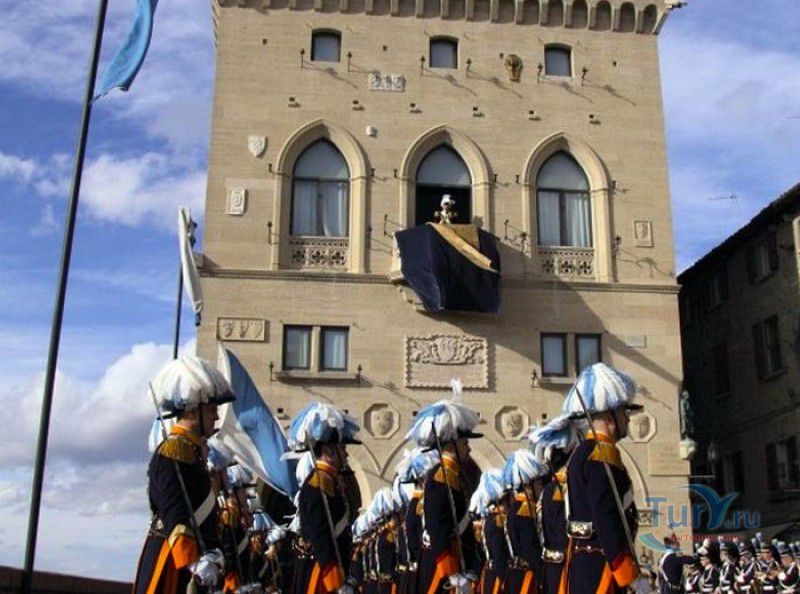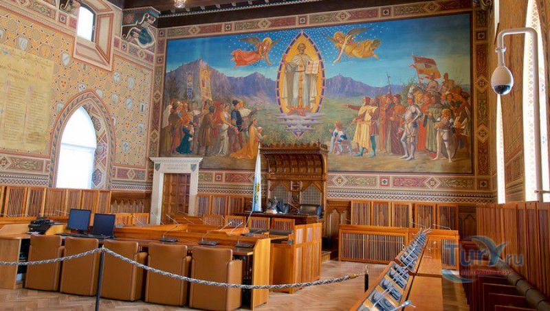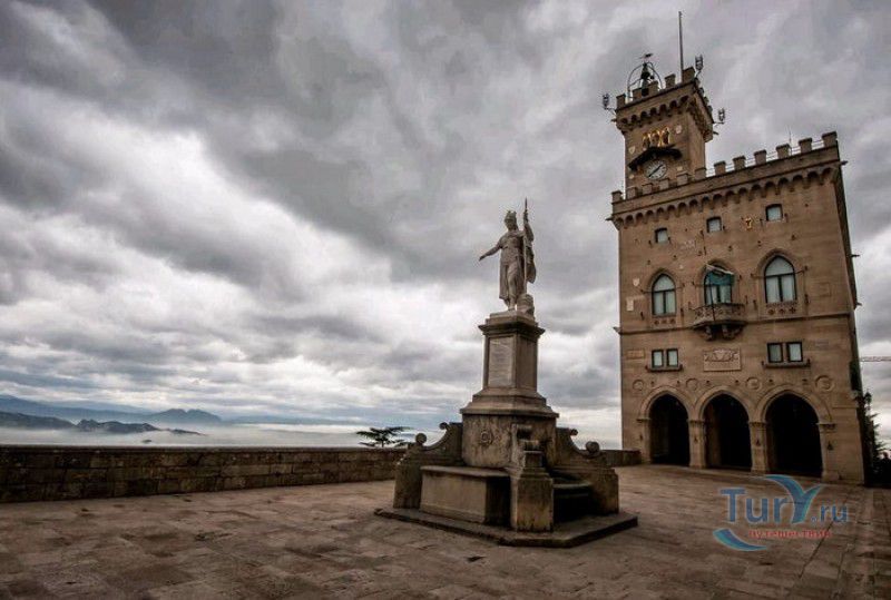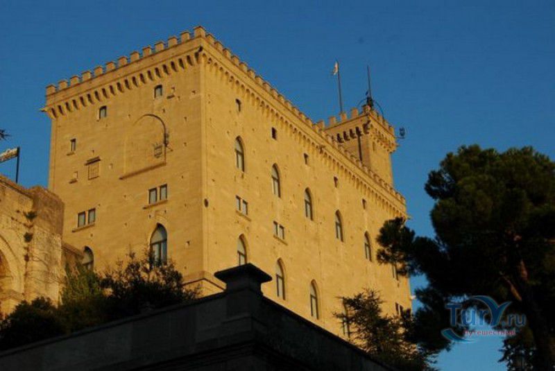 Палаццо Публико (Правительственный Дворец) расположен в историческом центре города Сан-Марино, на площади Свободы. Палаццо Публико занимают законодательные и административные органы Республики Сан-Марино - главы государства (капитаны-регенты), Большой генеральный совет, Совет Двенадцати и Государственный конгресс. Правительственный дворец стоит на месте бывшего Дома Великих Коммунн (Domus Comunis Magna), построенного в 1380-1392 годах и снесенного в конце XIX столетия из-за угрозы его обрушения. Нынешнее здание дворца в стиле средневековых итальянских палаццо было построено в 1884-1894 годах по проекту архитектора Франческо Аззурри - президента Академии Святого Луки в Риме. Для строительства дворца использовали камень, добываемый в пещерах горы Титано, работы выполнялись местными каменщиками под руководством мастера Джузеппе Реффи. Внешне Палаццо Публико является уменьшенной копией флорентийского палаццо Веккьо. Главный фасад здания поддерживают три готические арки, над которыми, на уровне мезонина, расположен многоугольный балкон, с которого капитаны-регенты (коллегиальные главы государства Сан-Марино) принимают парады, с этого же балкона объявляют имена вновь избранных глав государства (в Сан-Марино их двое и избираются они сроком на полгода). Верхняя часть дворца украшена прямоугольными (гвельфскими) зубцами, над крышей возвышается часовая башня-колокольня, оформленная такими же зубцами. На фасаде здания размещены гербы республики Сан-Марино и её четырёх муниципалитетов (Серравалле, Фиорентино, Монтеджардино и Фаэтано), геральдические символы знатных семейств Сан-Марино, над часами башни размещён мозаичный триптих, на котором изображены Святая Агата, Святой Марино и Святой Лео. Первым внутренним помещением Палаццо Публико является просторный атриум с парадной белокаменной лестницей, ведущей на верхние этажи и на балкон мезонина. Стены вестибюля украшены гербами и бюстами знаменитых уроженцев Сан-Марино, оказавших заметное влияние на историю страны. Особого внимания заслуживает великолепный полихромный деревянный потолок атриума, украшенный декоративным бордюром. Главным помещением Правительственного дворца является Зал Большого генерального совета. Одну из стен зала украшает картина, на которой изображено явление Святого Марино народу Сан-Марино. Картина была написана в 1894 году Эмилио Ретроси. В зале установлены трон капитанов-регентов, скамьи для шестидесяти членов Большого совета и трибуна для зрителей. В Зале заседаний Совета Двенадцати, оформленном в стиле XVI века, можно увидеть картину кисти Бартоломео Дженнари, на которой изображён Святой Марино, благословляющий город и его жителей. Стены небольшого зала, в котором два раз в год, во время выборов капитанов-регентов, подсчитывают голоса членов Совета, украшают картины с изображениями Святого Иоанна Крестителя и Святого Марино, написанные Джованни Ланфранко в первой половине XVII века. Спустя 100 лет после того, как Франческо Аззурри закончил строительство Палаццо Публико, стал вопрос о проведении полной реконструкция здания. Работы были выполнены в 1996 году под руководством всемирно известного архитектора Гае Ауленти. В 2008 году Палаццо Публико, в составе исторического центра города Сан-Марино, был внесен в список Всемирного наследия ЮНЕСКО.