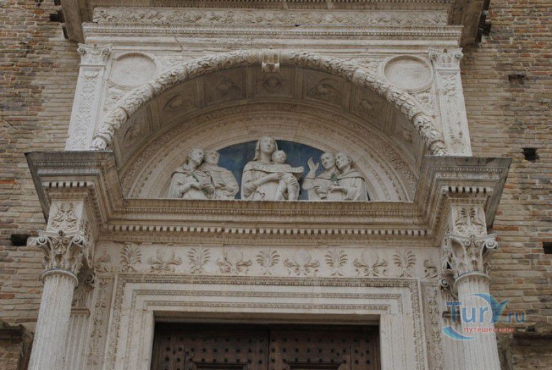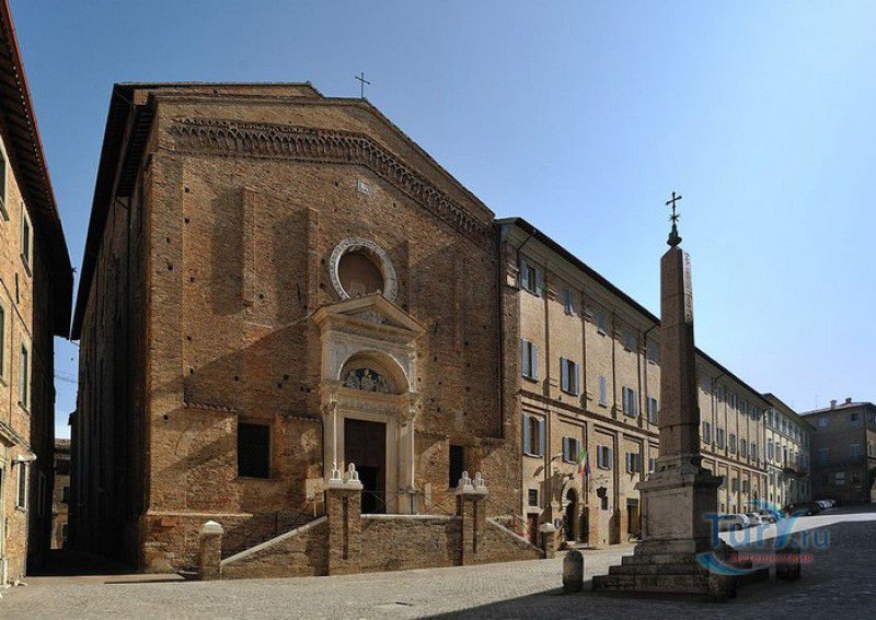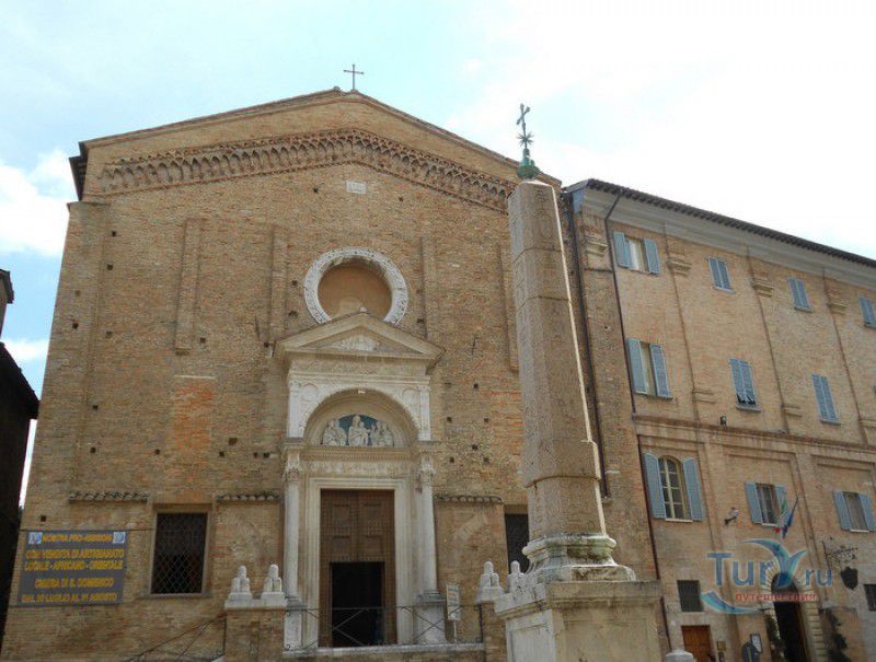 Церковь Сан-Доменико расположена в центре города Урбино, рядом с Палаццо Дукале (Дворцом герцогов Урбино). Церковь в готическом стиле была возведена орденом Доминиканцев в 1362 году и освящена в честь Святого Доминика в 1365 году. Здание, построенное из красного обожжённого кирпича, имело строгие формы и было лишено каких-либо декоративных украшений. Единственной архитектурной деталью, служившей в качестве украшения, была двойная лестница, ведущая к центральному входу церкви. В первой половине XV века центральный портал храма украсили великолепным портиром в стиле ренессанс из травертина (известкового туфа), автором которого является флорентийский скульптор и архитектор Мазо ди Бартоломео. Над входом размещена скульптурная композиция из глазурованной терракоты, на которой изображена Мадонна с младенцем в окружении святых Доминика, Фомы Аквинского, Альберта Великого и Петра Веронского. Автором работы является итальянский скульптор Лука делла Роббиа, в настоящее время в церкви Святого Доминика установлена копия, оригинальный люнет хранится в Палаццо Дукале. В XVIII веке, после реконструкции храма, здание было украшено декоративным фризом, а отверстие купола - декоративным растительным орнаментом. В это же время был полностью обновлён интерьер церкви - к сожалению, большая часть настенных росписей, украшавших апсиду, была безвозвратно утеряна. До наших дней сохранились лишь картина Джованни Конка с изображениями Мадонны с младенцем, святых Доминика, Екатерины Сиенской и Розы Лимской (главный алтарь) и два полотна кисти Франческо Ванни с изображениями ангелов. В настоящее время церковь не действует, посетить её можно только во время культурно-выставочных мероприятий, регулярно в ней проводящихся. В 1998 году церковь Сан-Доменико в составе исторического центра города Урбино была внесена в список Всемирного наследия ЮНЕСКО.