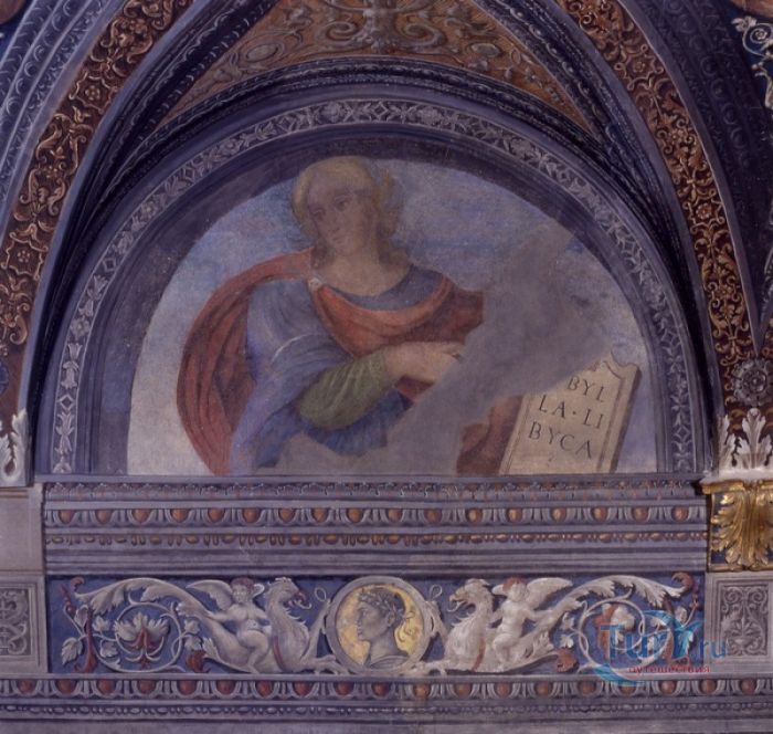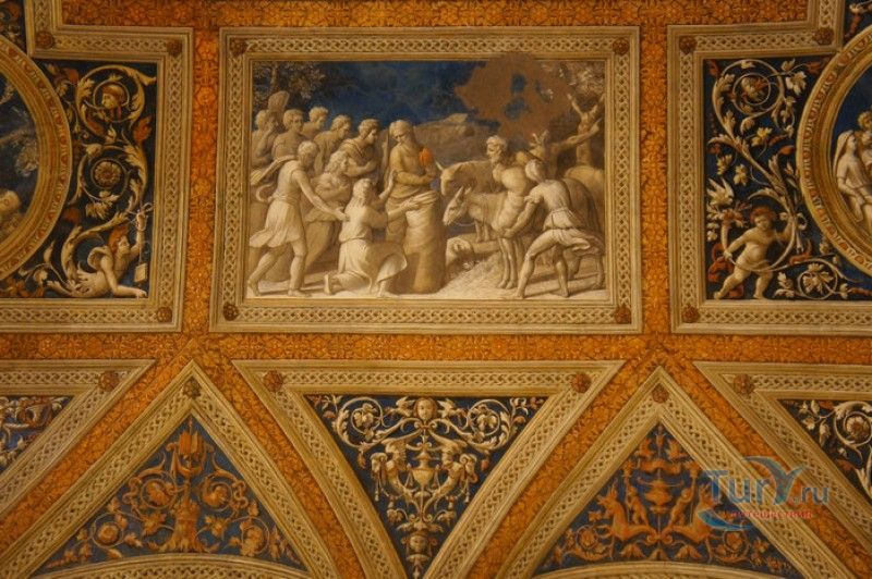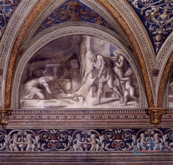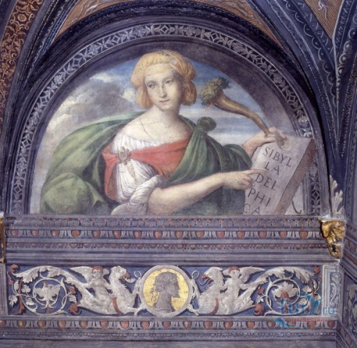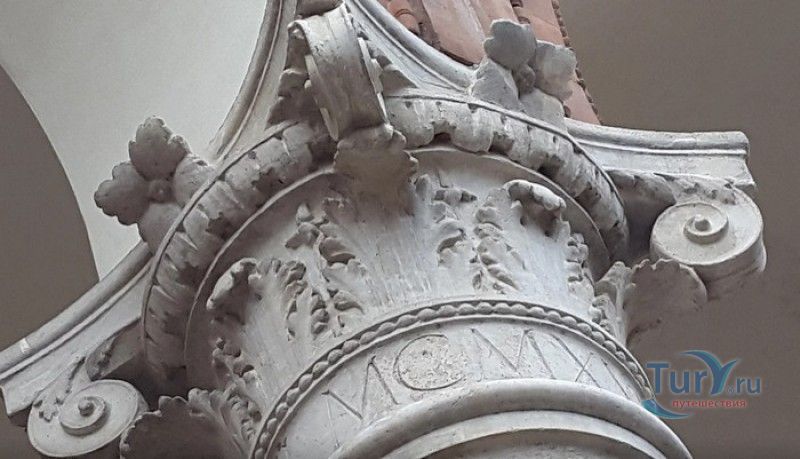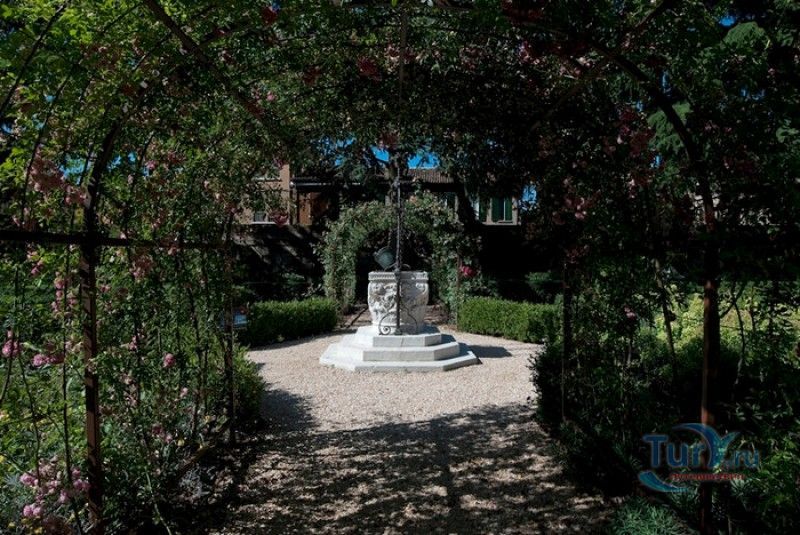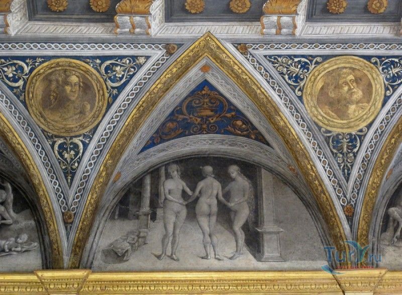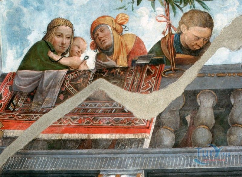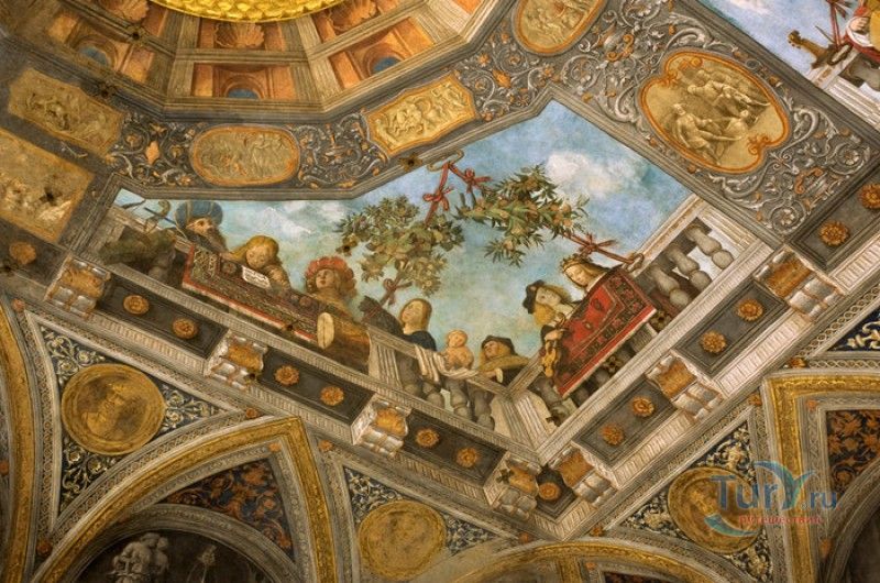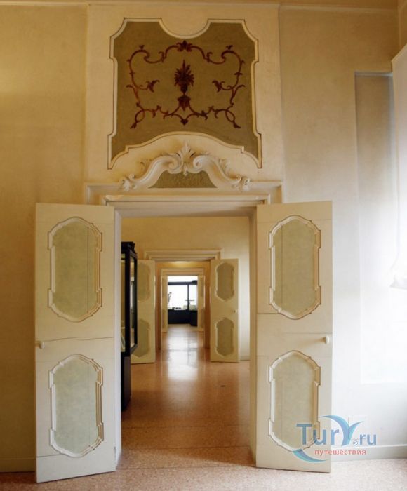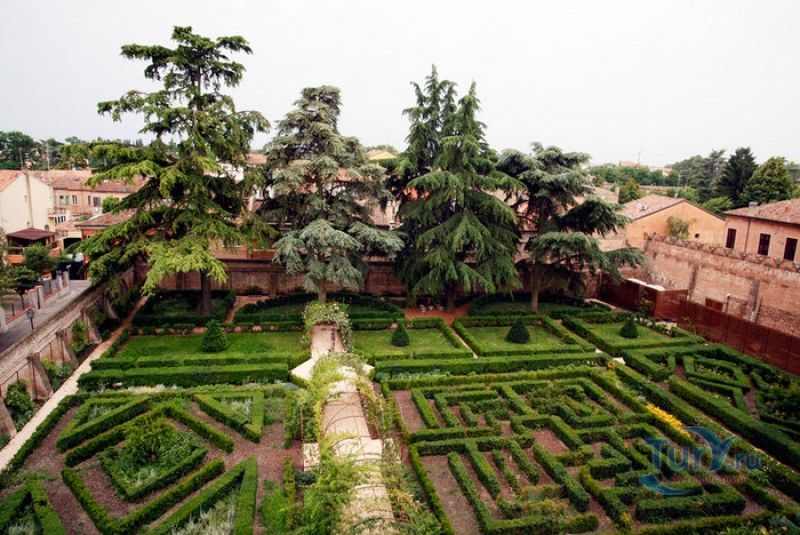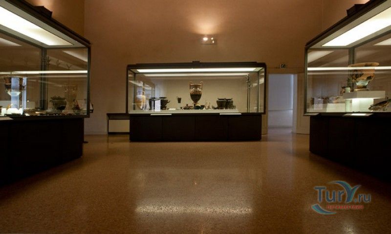 Дворец Костабили (Национальный Археологический Музей Феррары) расположен в историческом центре города Феррара, в составе которого внесен в список Всемирного наследия ЮНЕСКО. Дворец в стиле Ренессанс был построен для Антонио Костабили - официального посла и секретаря герцога Миланского Людовико Мария Сфорца (Людовико иль Моро), представлявшего его интересы при дворе Эрколе I д'Эсте. Часто дворец называют Палаццо Людовико или Моро, так как некоторые исторические источники утверждали, что дворец был построен для самого Людовико Сфорца, женатого на Беатриче д'Эсте, и рассчитывавшего, в случае изгнания из Милана, найти приют у родственников своей супруги - правителей Феррары. Строительство дворца было поручено выдающемуся архитектору эпохи Возрождения Бьяджо Россетти, построившему не одно здание в Ферраре. Работы велись в 1495-1504 годах, на строительстве работали 1500 каменщиков, штукатуров и других мастеров, однако, грандиозный замысел архитектора так и остался незавершённым. Дворец Костабили состоит из нескольких зданий, соединённых между собой. Кирпичный фасад палаццо, выходящий на улицу, практически лишён каких-либо декоративных украшений, зато парадный внутренний двор представляет собой шедевр ренессансной архитектуры. По периметру двора проходит двойная галерея, полностью завершённая только с двух сторон. Нижний ярус представляет собой открытую аркаду, опирающуюся на мраморные колонны с коринфскими капителями. Аркада верхнего яруса галереи, опирающаяся на тонкие мраморные колонки, изначально вся состояла из попарно чередующихся открытых и закрытых пролётов-окон. Во время реставрации 1930-х годов все окна были открыты и застеклены, поэтому сейчас, чтобы дать представление о прежнем облике палаццо, бывшие "слепые" окна занавешены красными шторами. Во дворе палаццо был разбит сад в стиле Ренессанс, полностью воссозданный в первоначальном виде в 2009-2010 годах. От великолепного убранства внутренних помещений до наших дней сохранилась монументальная мраморная лестница, ведущая с первого на второй этаж, работы скульптора-каменщика Габриэле Фризони, выполнявшего заказы Бьяджо Россетти по оформлению многочисленных герцогских дворцов в Ферраре. Из залов дворца особого внимания заслуживает Зал Сокровищ, который использовался в качестве музыкального салона или библиотеки, а также для хранения собрания произведений искусства. Потолок и верхнюю часть стен зала украшает огромная фреска, выполненная в 1503-1506 годах Бенвенуто Тизи (Гарофало) - выдающимся представителем феррарской школы живописи эпохи Возрождения. Роспись выполнена по подобию знаменитой комнаты Камера Пикта (Брачный чертог) в Палаццо Дукале в Мантуе, расписанной фресками Андреа Мантеньи. Потолочный плафон представлен в виде открытого балкона с балюстрадой, на которой "вывешены" яркие восточные ковры. На балконе изображены городские жители и придворные, многие - с музыкальными инструментами. Над головой у них - беседка, увитая ветвями фруктовых деревьев и украшенная фризом с медальонами, на которых изображены сцены из мифов древнего Рима. Под потолочным плафоном располагаются люнеты, на которых изображены сцены из мифов об Эросе и Антеросе. После того, как в конце XVI века скончался последний прямой наследник рода Костабили, дворец сменил множество владельцев. 