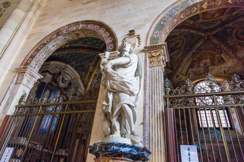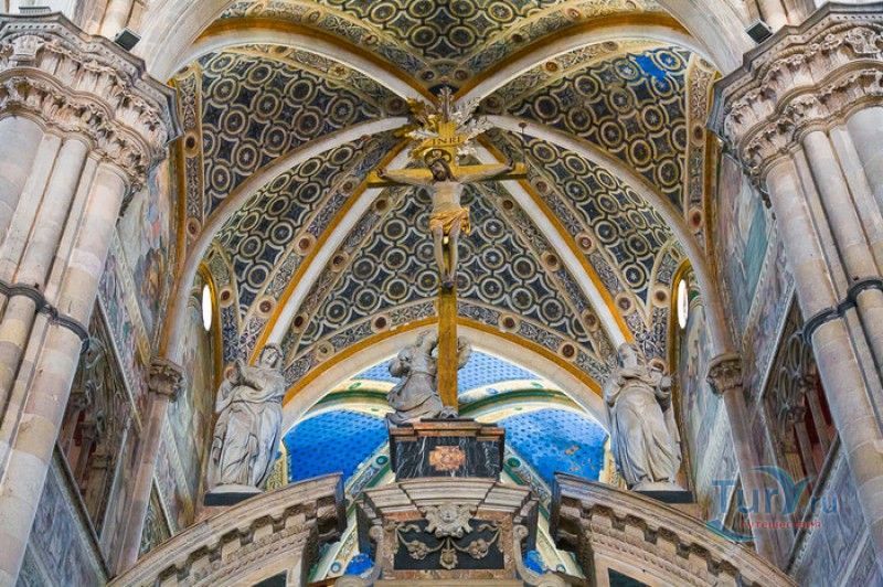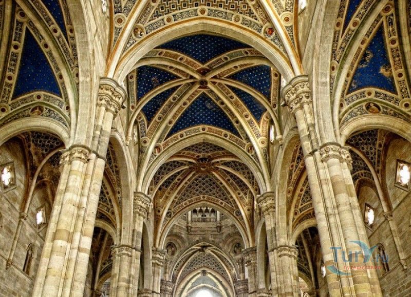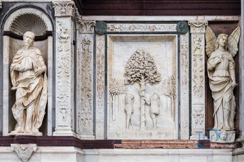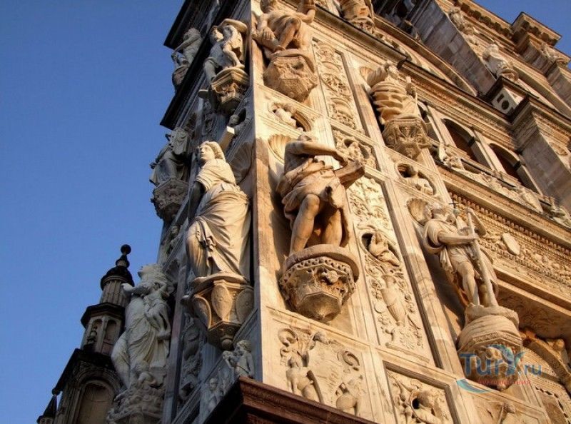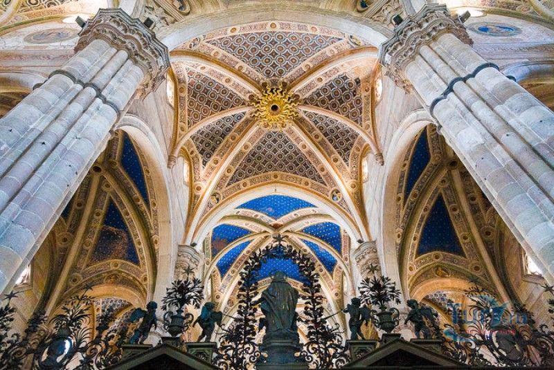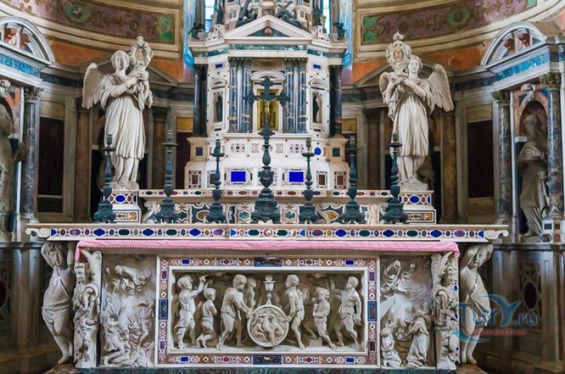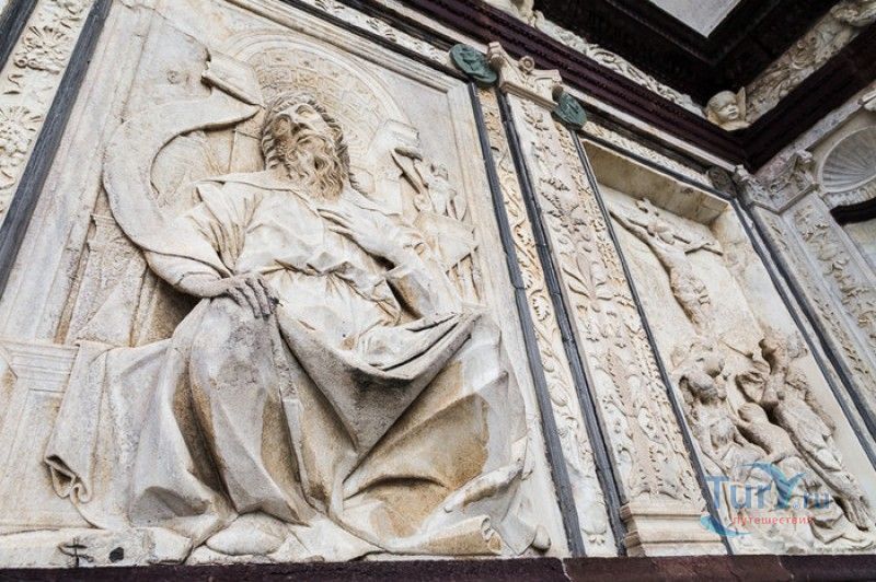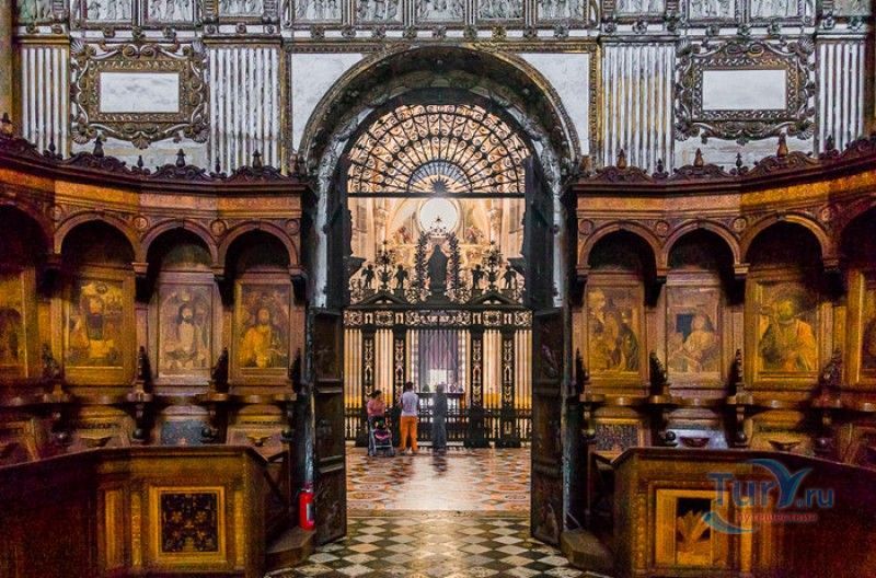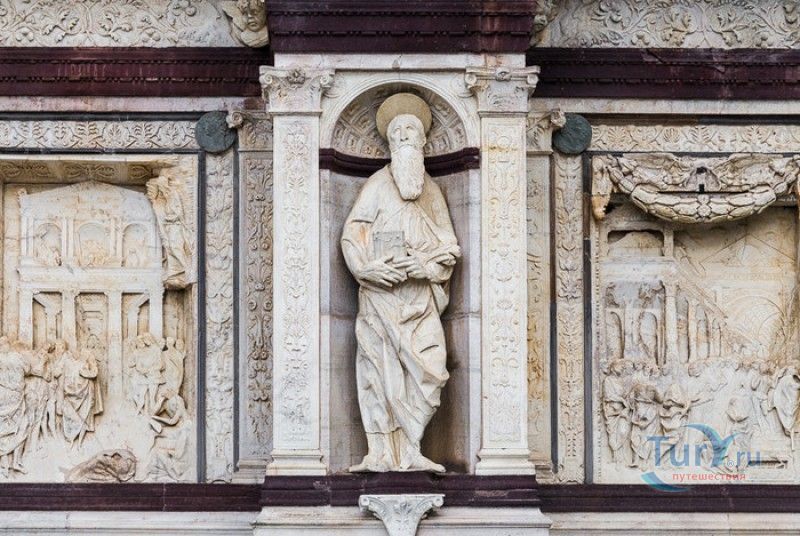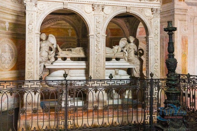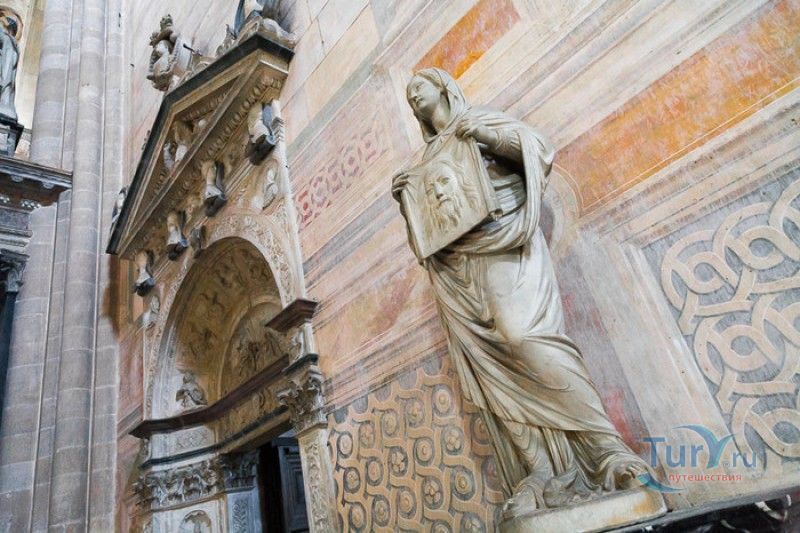 Картезианский Монастырь Павийская Чертоза расположен на территории коммуны Чертоза-ди-Павия, в 8 километрах к северу от города Павия и в 30 километрах от Милана. Монастырский комплекс был основан в 1396 году по указу Джана Галеаццо Висконти, первого герцога Миланского, во исполнения обета, данного его женой Екатериной Висконти. Под строительство монастыря были отведены обширные охотничьи угодья близ города Павия, принадлежавшие семейству Висконти. Первый камень в основание обители был заложен 27 августа 1396 года, первым архитектором, который руководил строительством, был Марко Солари. Первоначально обитель для ордена Картезианцев возводилась в готическом стиле, завершали её строительство уже в стиле Ренессанс архитекторы Джованни и Гвинифорте Солари. Свой окончательный вид Павийская Чертоза приобрела под руководством архитектора Джованни Антонио Амадео. Церковь монастыря, освящённая 3 мая 1497 года в честь Санта-Мария-делле-Грацие, по замыслу герцога, должна была стать усыпальницей для членов семьи Висконти, а затем - и Сфорца (после смерти последнего герцога Висконти в 1447 году, титул герцога Миланского получил Франческо Сфорца). Монастырский комплекс состоит из церкви Санта-Мария-делле-Грацие, двух клуатров (большого и малого), Герцогского дворца, монашеских келий и хозяйственных построек. В архитектурном плане Павийская Чертоза является шедевром ломбардийского зодчества XV века, в котором гармонично объединены готический и ренессансный архитектурные стили. Несомненно, красивейшим зданием ансамбля является церковь Санта-Мария-делле-Грацие. Трёхнефный храм с апсидой, трансептом и боковыми часовнями в плане имеет форму латинского креста, крестообразный готический свод, расписанный под звёздное небо и украшенный геометрическим орнаментом, поддерживают мощные каменные колонны с капителями. Настоящим произведением искусства является мраморный фасад церкви, украшенный скульптурами, небольшими шпилями с контрофорсами, гербами, медальонами и барельефами с изображениями древнеримских императоров, философов и учёных, христианских пророков и апостолов. Над оформлением фасада работали лучшие мастера того времени - Амадео, Ломбардо, Бриоско, Пиольтелло, Алесси, делла Порто. Великолепный мраморный портал со сдвоенными колоннами, украшенными резными барельефами, был выполнен Бенедетто Бриоско по проекту Джованни Антонио Амадео. Оформление интерьера ничуть не уступает экстерьеру пышностью и богатством убранства. В церкви сохранились фрески, написанные Амброджо Бергоньоне, а также картины его кисти - "Святой Амвросий", "Святой Сир" и "Распятие". Кроме того, в храме можно увидеть скульптуры и полотна работы Перуджино, Черано, Луини, Мораццоне, Гверчино, Франческо Каиро и цикл фресок кисти Даниеле Креспи. Резные деревянные хоры, огромная бронзовая люстра и витражи на окнах храма были выполнены в XV веке лучшими мастерами Ломбардии. В старой ризнице находится резной триптих из слоновой кости, состоящий из 62 панелей с изображениями Иисуса Христа, Девы Марии и волхвов, изготовленный в 1400-1409 годах специально для Павийской Чертозы. В церкви Санта-Мария-делле-Грацие установлены мраморные гробницы Джана Галеаццо Висконти (в правой части трансепта) и Лодовико Сфорца (Лодовико иль Моро) и его жены Беатриче д'Эсте (в левой части трансепт