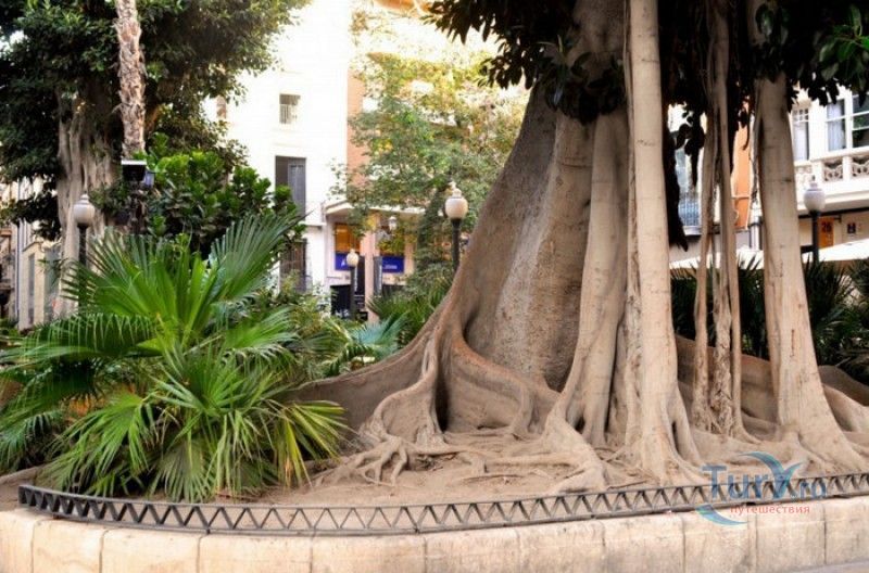 Площадь Портал-де-Эльче - небольшая площадь, расположенная в центре города Аликанте, рядом с морским портом. Площадь была построена на месте древних крепостных ворот Пуэрта-де-Эльче, построенных в Аликанте ещё в Средние века во время арабского владычества. Долгое время площадь носила нелицеприятное название площадь Виселиц (Plaza de las Horcas), так как именно на ней вплоть до 1811 года устанавливались виселицы для проведения публичных казней. В 1869 году площадь была переименована в Портал-де-Эльче, поскольку от неё начиналась дорога, ведущая из Аликанте в соседний город Эльче. В этом же году, в ознаменование победы Сентябрьской революции 1868 года и свержения монархии, на площади были посажены так называемые "деревья свободы" - четыре крупнолистных фикуса, которые и сейчас растут на площади. Один из этих фикусов сегодня имеет высоту 6 метров, а ширина его ствола у основания - 1,3 метра. В 1881 году на площади был установлен фонтан и проведено освещение. После того, как к фонтану был подведен водопровод, подающий воду из родников, расположенных в окрестностях Аликанте, он стал основным источником питьевой воды для жителей города. По четырём сторонам площади в конце XIX века были установлены газетные киоски, где горожане могли купить ежедневную газету. После реставрации, проведенной в 1970 году, точная копия одного из этих киосков была установлена в центре площади. Одно время в нём размещался туристический информационный пункт, в наши дни киоск преобразован в кафе-бар под названием Сохо, в котором можно заказать прохладительный коктейль или кофе со льдом. Сейчас Портал-де-Эльче - это любимое место отдыха жителей и гостей города, здесь, в тени деревьев, можно отдохнуть после прогулки по городу или встретиться с друзьями.